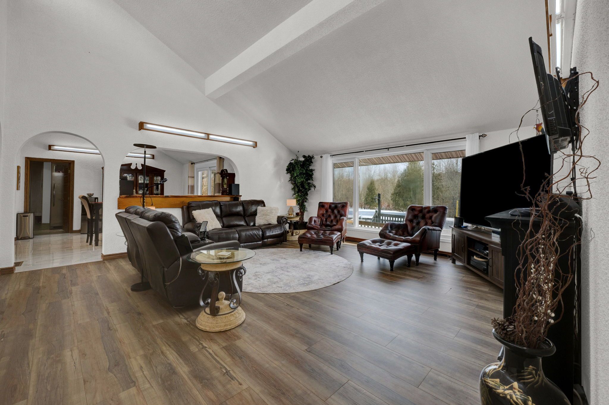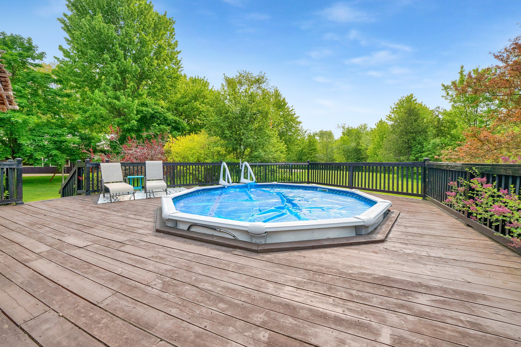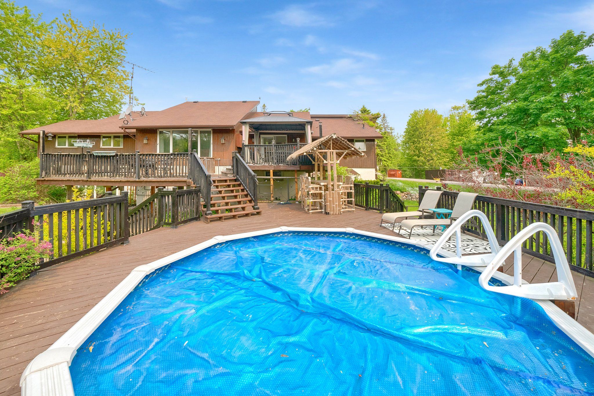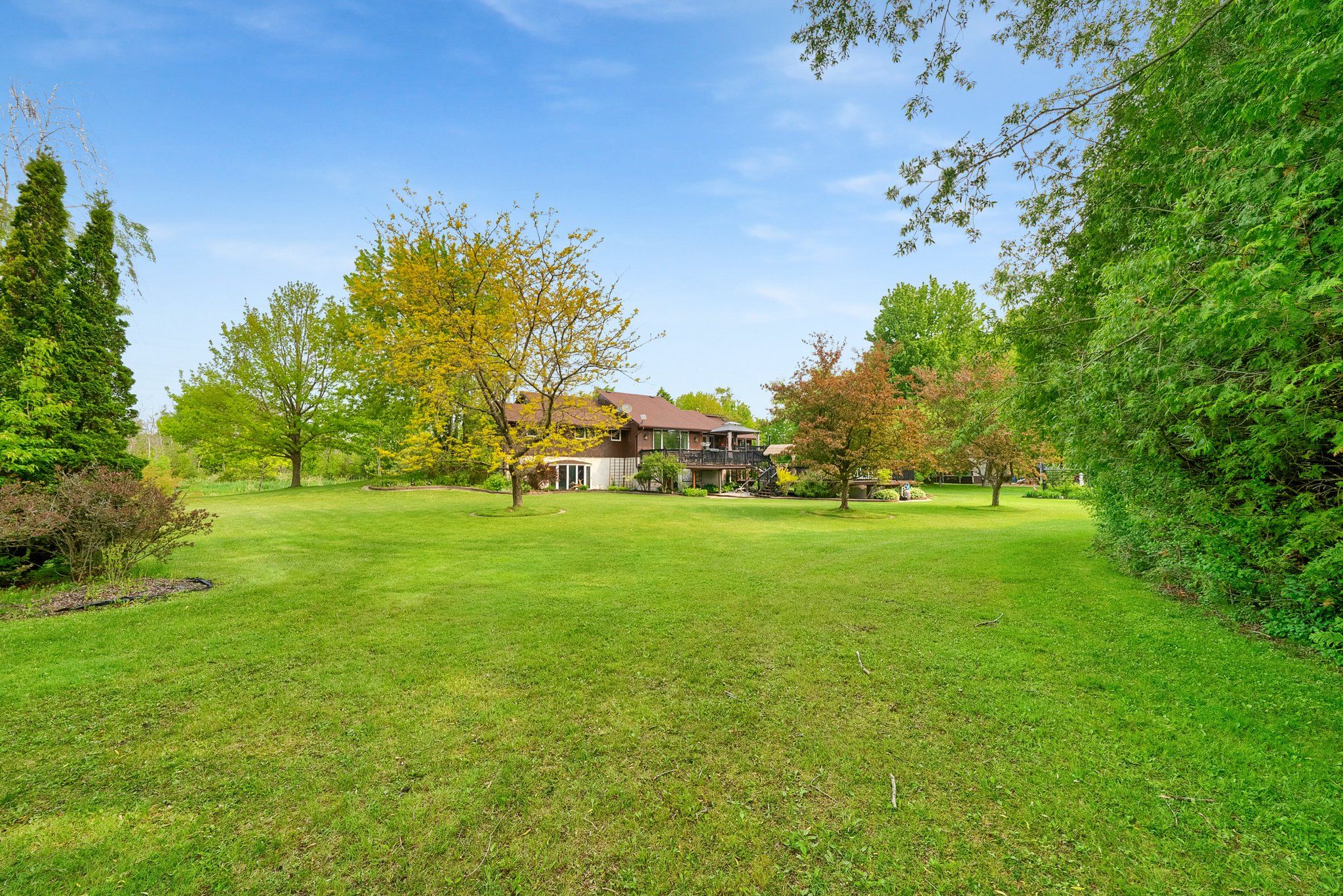 Please watch virtual tour! Private 22-acre estate with architecturally striking viceroy home and commercial-caliber shop. Perfect quiet country location yet only minutes to 401 and 407. Set well back from the road at the end of a long private drive, this stunning viceroy bungalow offers approximately 3,500 sq ft of bright, vaulted living space. A spectacular 2-acre spring-fed pond, complete with its own island, creates a truly idyllic setting. The spacious primary suite features a private ensuite and walkout to a deck overlooking the water. Vaulted ceilings, skylights, and expansive windows flood the home with natural light. Strikingly impressive heated porcelain floors run through the foyer, hallway, kitchen, and dining areas. The kitchen is equipped with high-end appliances including a jenn-air downdraft cooktop. Main floor laundry adds convenience. Step out to a huge multi-level deck with tiki bar and integrated heated pool, designed for entertaining and summer relaxation. The bright walkout lower level offers additional living space, workshop area, and excellent in-law suite potential. Geo-thermal heating and cooling provide efficient year-round comfort. Strong drilled well with uv system. High and dry construction with no sump pump required. Massive 40' x 50' heated shop featuring 15' ceilings, vehicle hoist, 1,000 sq ft mezzanine, two 10' overhead doors, and wood/propane furnace. Serviced with 100-amp electrical. Seller currently operates a 3-phase equipment setup. Attached 12' x 40' greenhouse. A rare opportunity combining private rural luxury with serious contractor or trades capability, all just 5 minutes to hwy 401 and under an hour to downtown toronto. Fibe high speed internet, work from paradise.