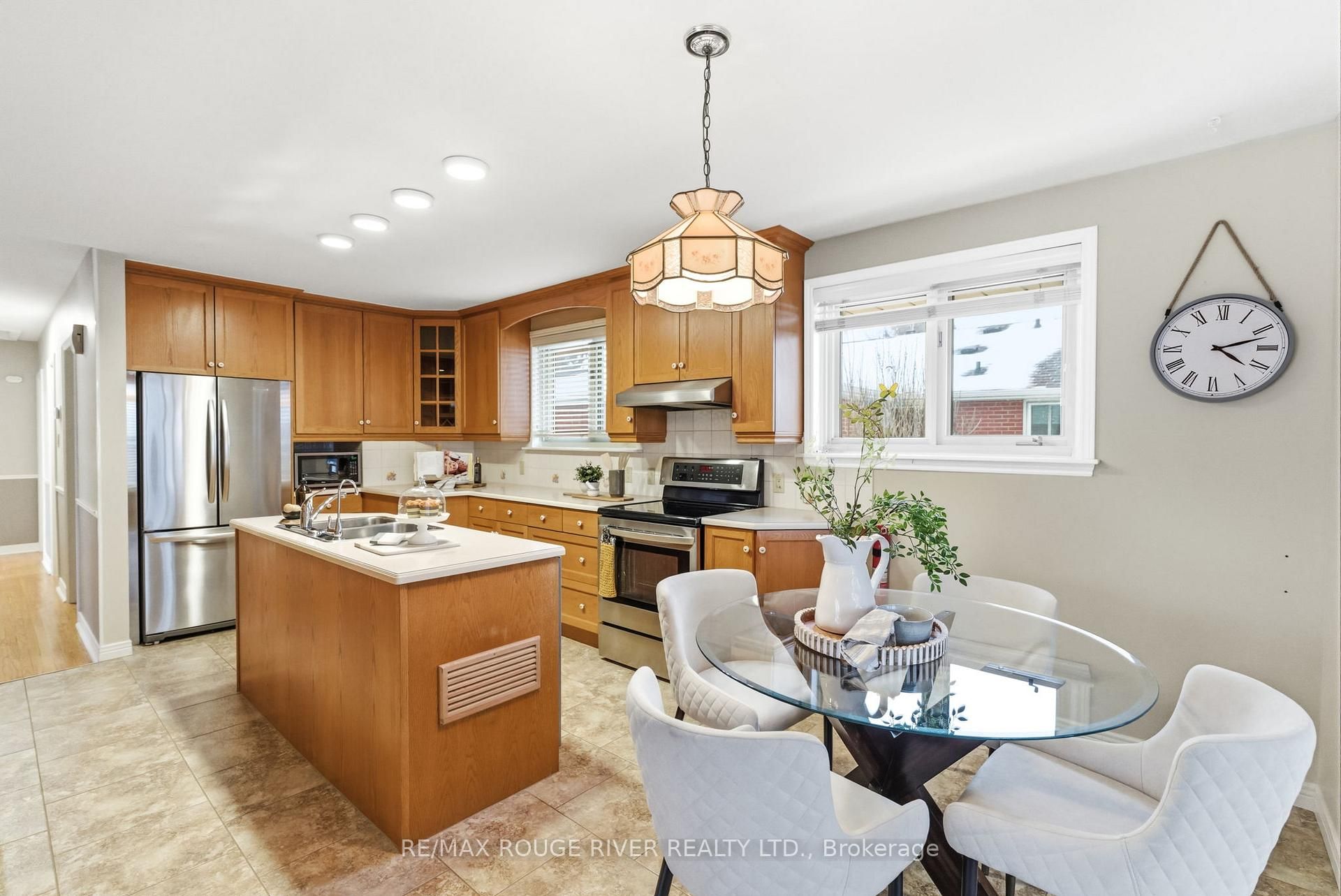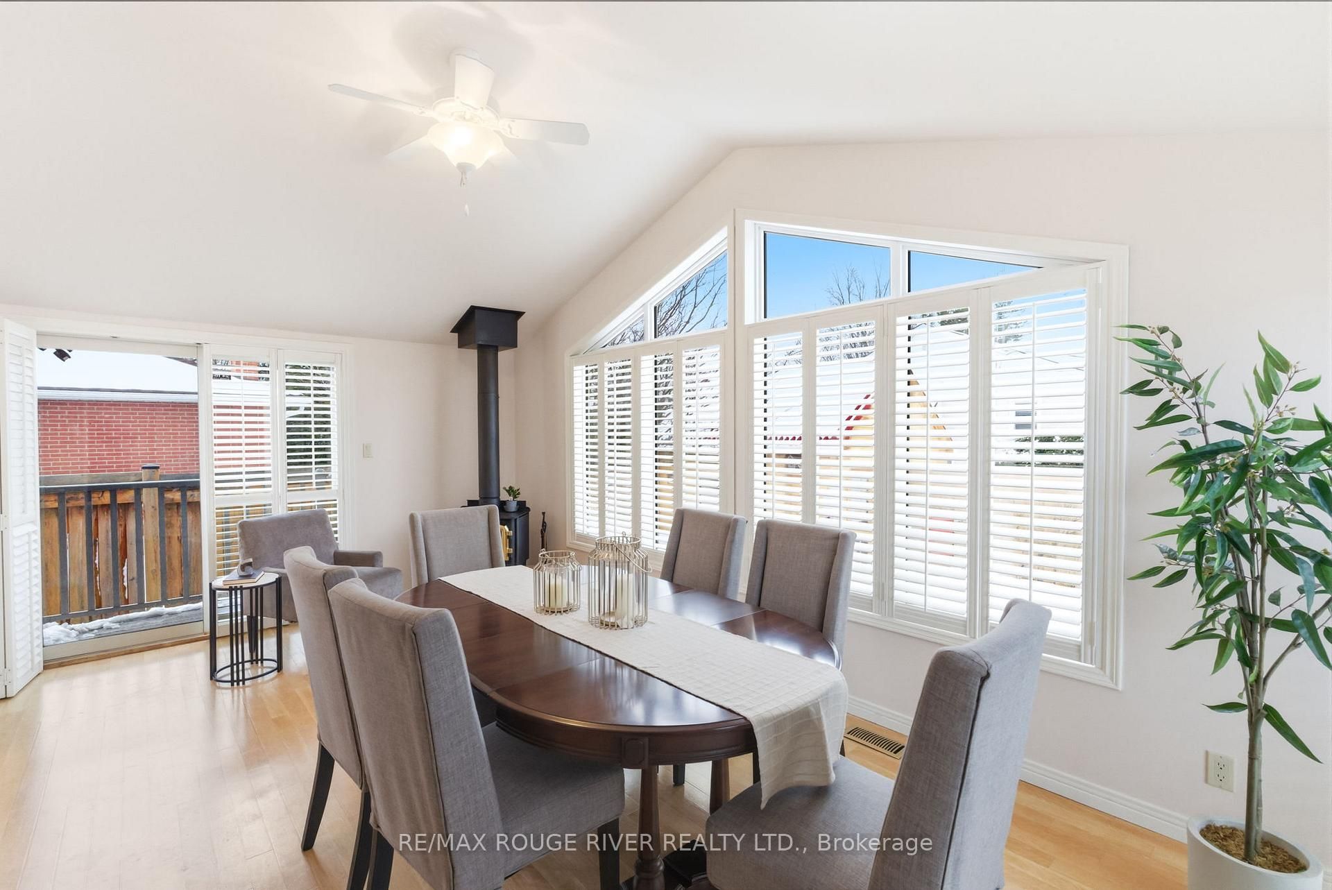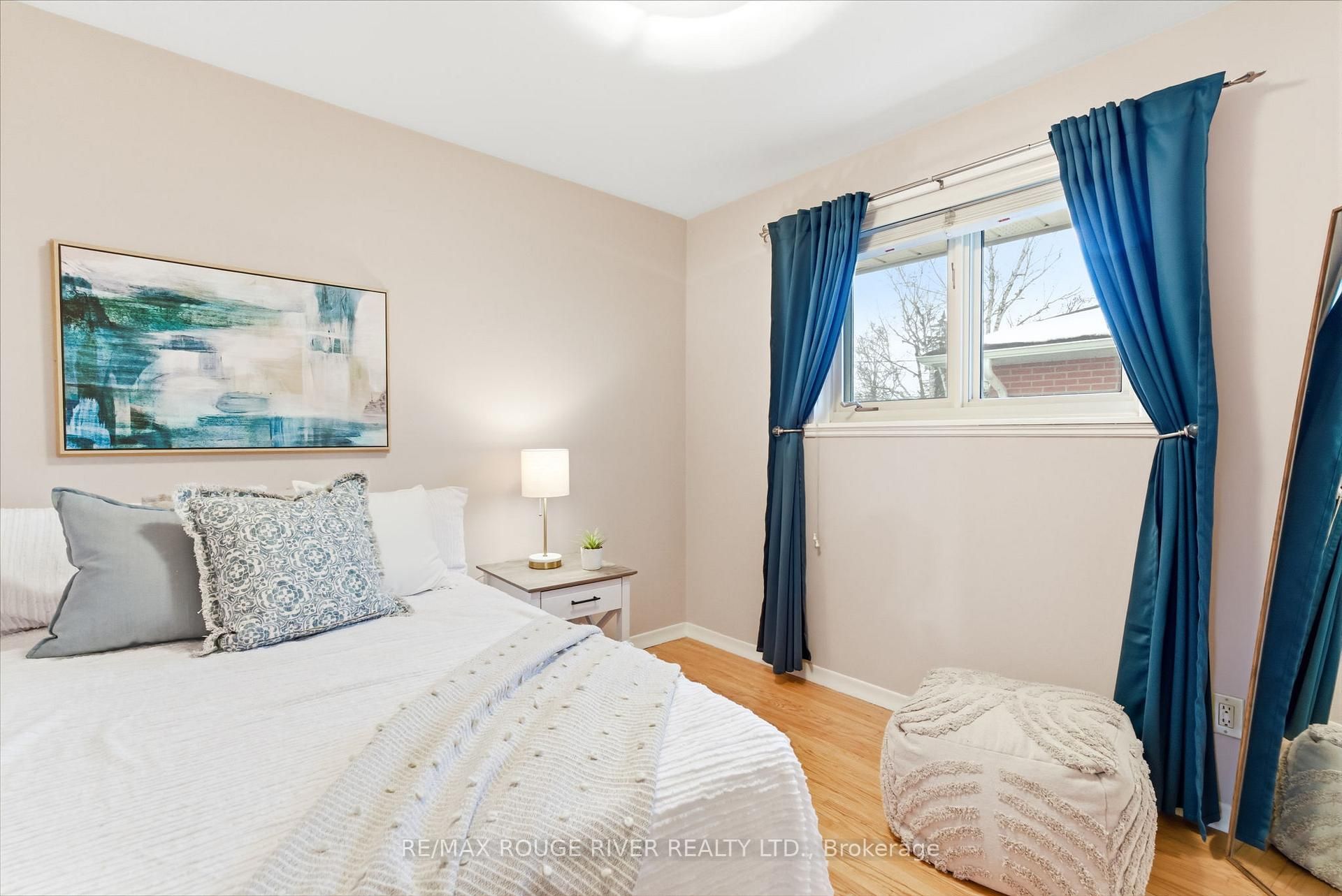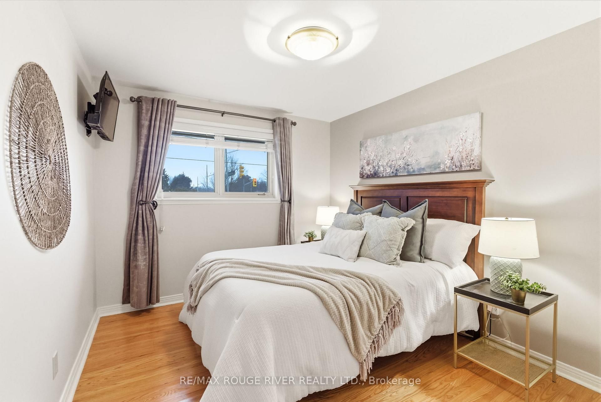 Situated on a desirable corner lot, this beautifully maintained home offers exceptional space, functionality, and thoughtful upgrades throughout. The main level welcomes you with a bright and inviting living room featuring rich hardwood floors, elegant crown moulding and california shutters, all overlooking the front yard. The spacious eat-in kitchen is designed for both everyday living and entertaining, complete with a centre island, stainless steel appliances and timeless oak wood cabinetry. A separate sunroom/dining room showcases vaulted ceilings, california shutters and a walkout on each side of the room to the yard, creating a seamless indoor-outdoor flow. The main floor also features three well-appointed bedrooms, all with hardwood flooring, closets, and large windows that provide plenty of natural light. The finished lower level, with its own separate entrance, offers incredible flexibility for extended family or potential income opportunities. This level includes an additional bedroom with closet space, a full bathroom, a private office, a versatile den/storage area, and a separate laundry room for added convenience. Additional highlights include 200-amp electrical service, security cameras positioned on all corners of the home and excellent exterior features. The backyard is enhanced with beautiful flower beds, a wired bunkie with 220-volt service, and a separate storage shed. Two separate driveways provide ample parking. This corner-lot property blends comfort, practicality, and versatility, an ideal place to call home.