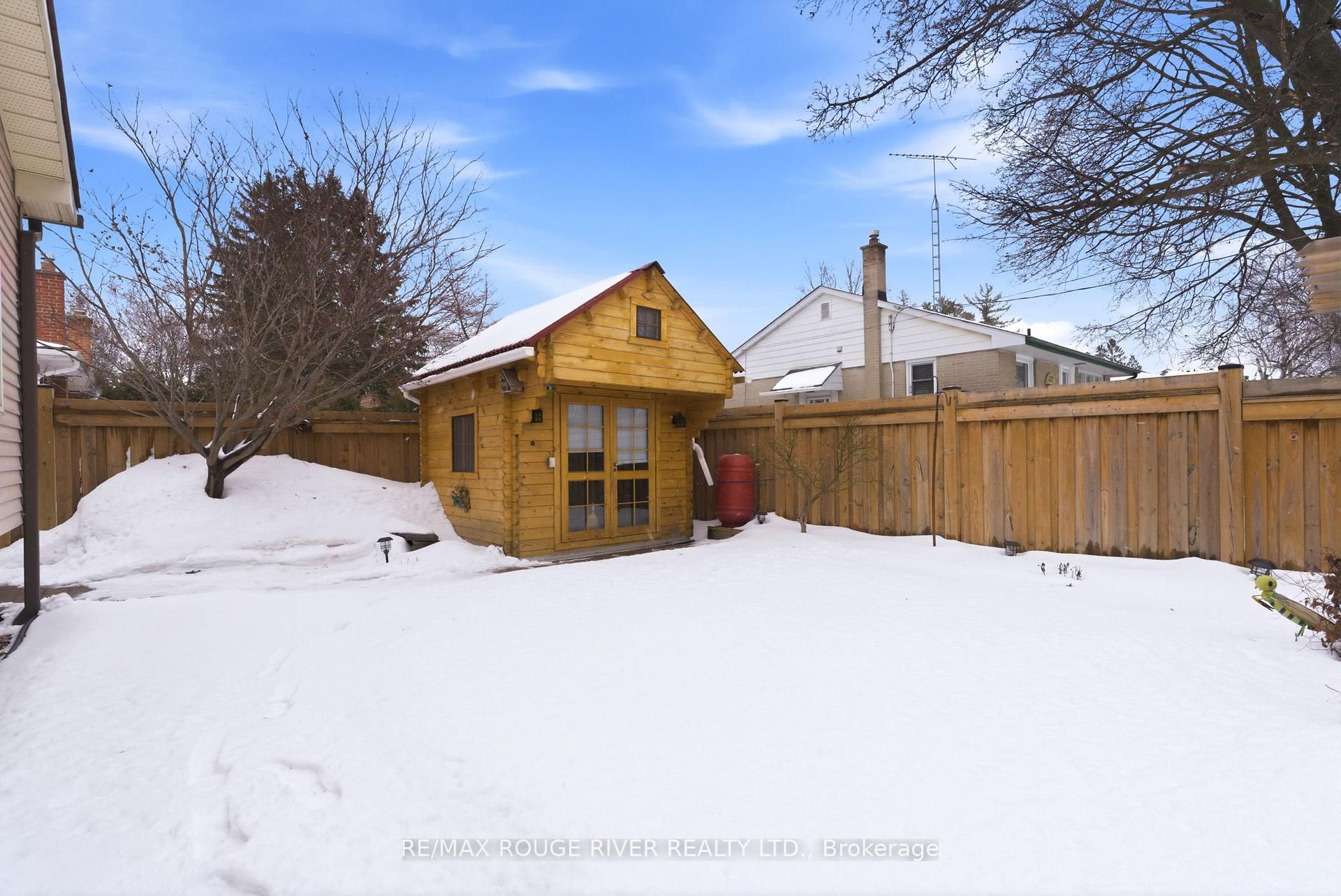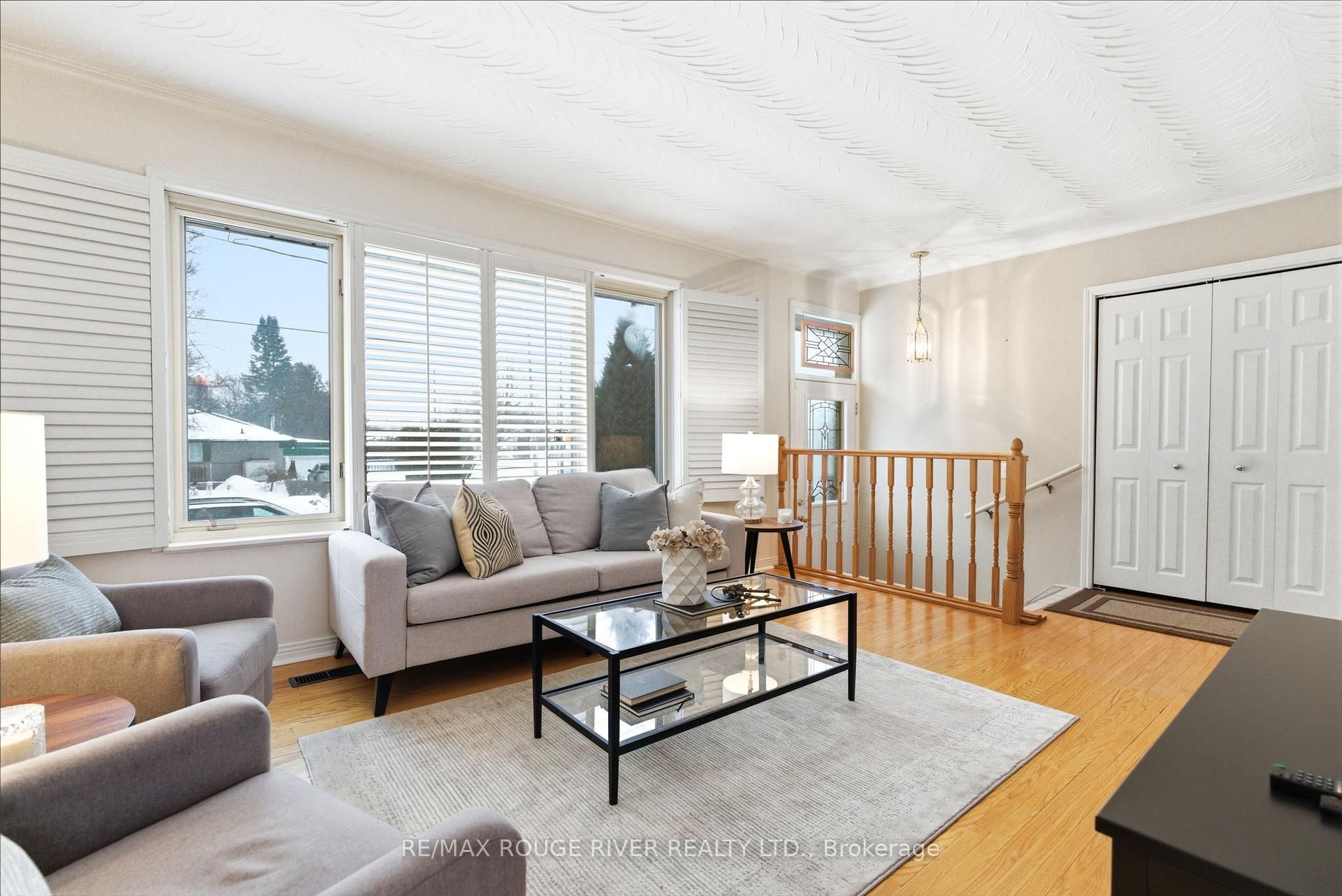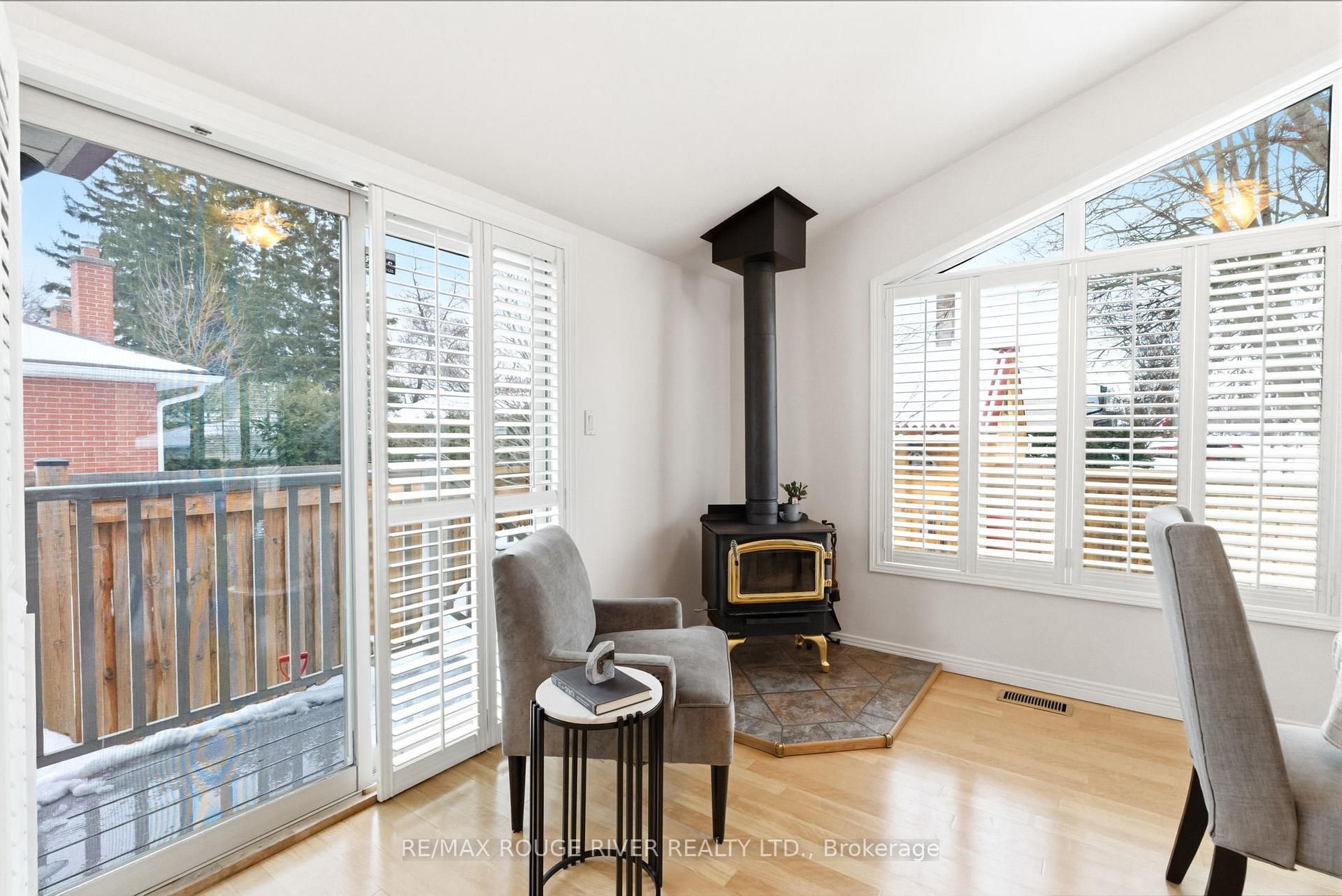 Situated on a desirable corner lot, this beautifully maintained home offers exceptional space, functionality, and thoughtful upgrades throughout. The main level welcomes you with a bright and inviting living room featuring rich hardwood floors, elegant crown moulding and california shutters, all overlooking the front yard. The spacious eat-in kitchen is designed for both everyday living and entertaining, complete with a centre island, stainless steel appliances and timeless oak wood cabinetry. A separate sunroom/dining room showcases vaulted ceilings, california shutters and a walkout on each side of the room to the yard, creating a seamless indoor-outdoor flow. The main floor also features three well-appointed bedrooms, all with hardwood flooring, closets, and large windows that provide plenty of natural light. The finished lower level, with its own separate entrance, offers incredible flexibility for extended family or potential income opportunities. This level includes an additional bedroom with closet space, a full bathroom, a private office, a versatile den/storage area, and a separate laundry room for added convenience. Additional highlights include 200-amp electrical service, security cameras positioned on all corners of the home and excellent exterior features. The backyard is enhanced with beautiful flower beds, a wired bunkie with 220-volt service, and a separate storage shed. Two separate driveways provide ample parking. This corner-lot property blends comfort, practicality, and versatility, an ideal place to call home.