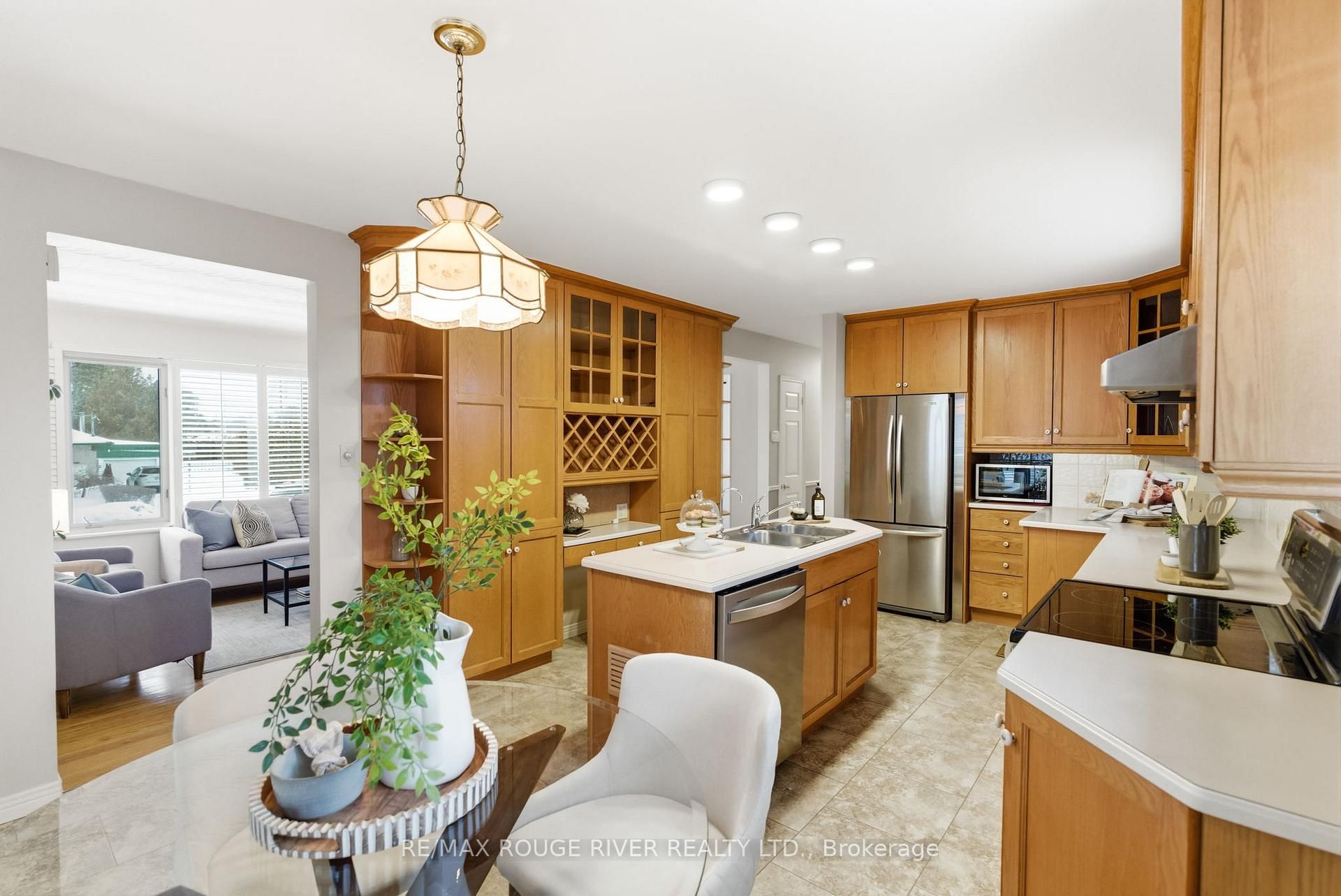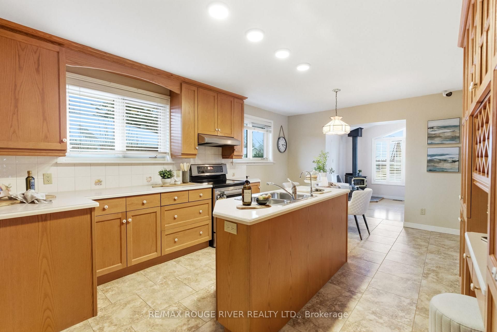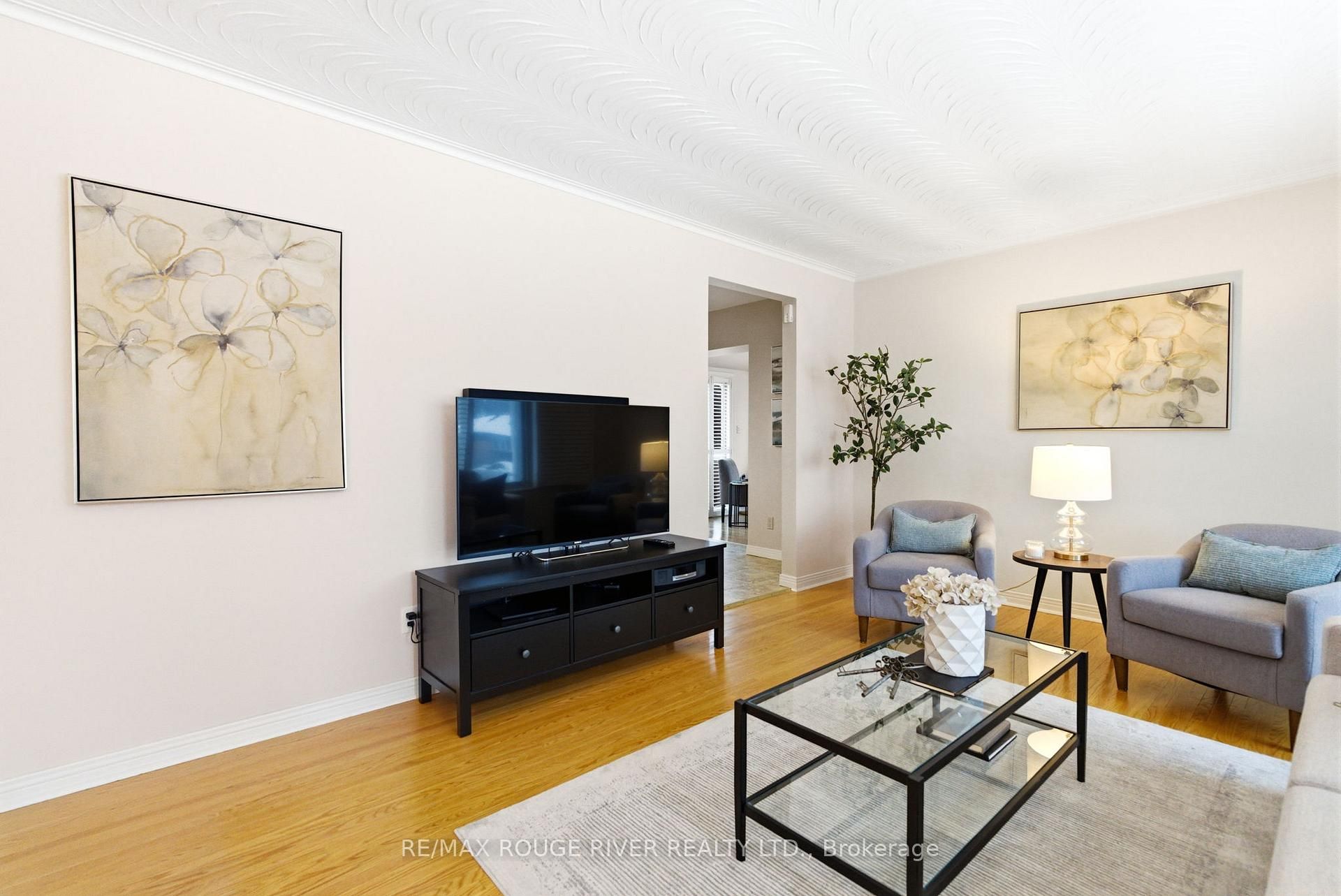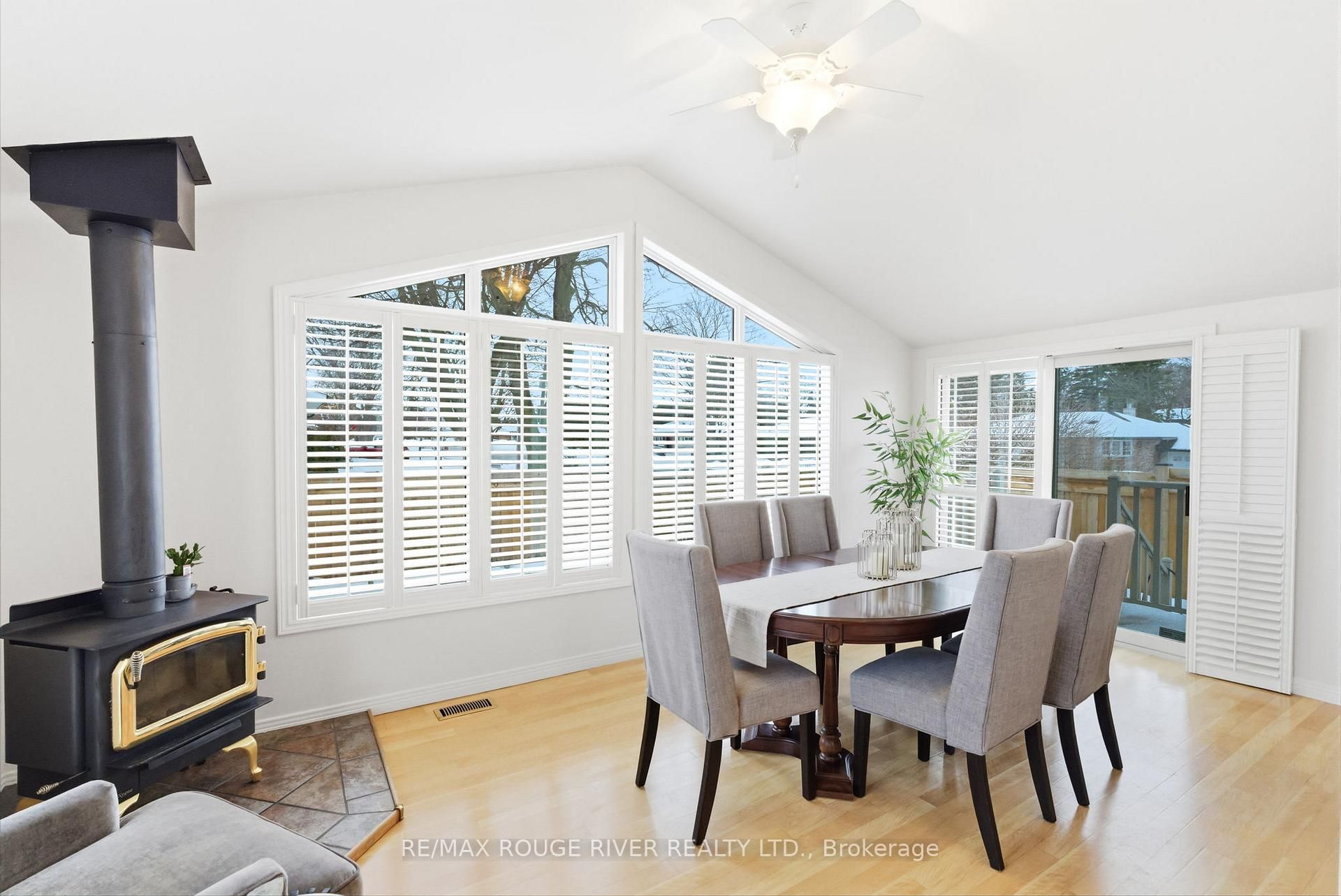 Situated on a desirable corner lot, this beautifully maintained home offers exceptional space, functionality, and thoughtful upgrades throughout. The main level welcomes you with a bright and inviting living room featuring rich hardwood floors, elegant crown moulding and california shutters, all overlooking the front yard. The spacious eat-in kitchen is designed for both everyday living and entertaining, complete with a centre island, stainless steel appliances and timeless oak wood cabinetry. A separate sunroom/dining room showcases vaulted ceilings, california shutters and a walkout on each side of the room to the yard, creating a seamless indoor-outdoor flow. The main floor also features three well-appointed bedrooms, all with hardwood flooring, closets, and large windows that provide plenty of natural light. The finished lower level, with its own separate entrance, offers incredible flexibility for extended family or potential income opportunities. This level includes an additional bedroom with closet space, a full bathroom, a private office, a versatile den/storage area, and a separate laundry room for added convenience. Additional highlights include 200-amp electrical service, security cameras positioned on all corners of the home and excellent exterior features. The backyard is enhanced with beautiful flower beds, a wired bunkie with 220-volt service, and a separate storage shed. Two separate driveways provide ample parking. This corner-lot property blends comfort, practicality, and versatility, an ideal place to call home.