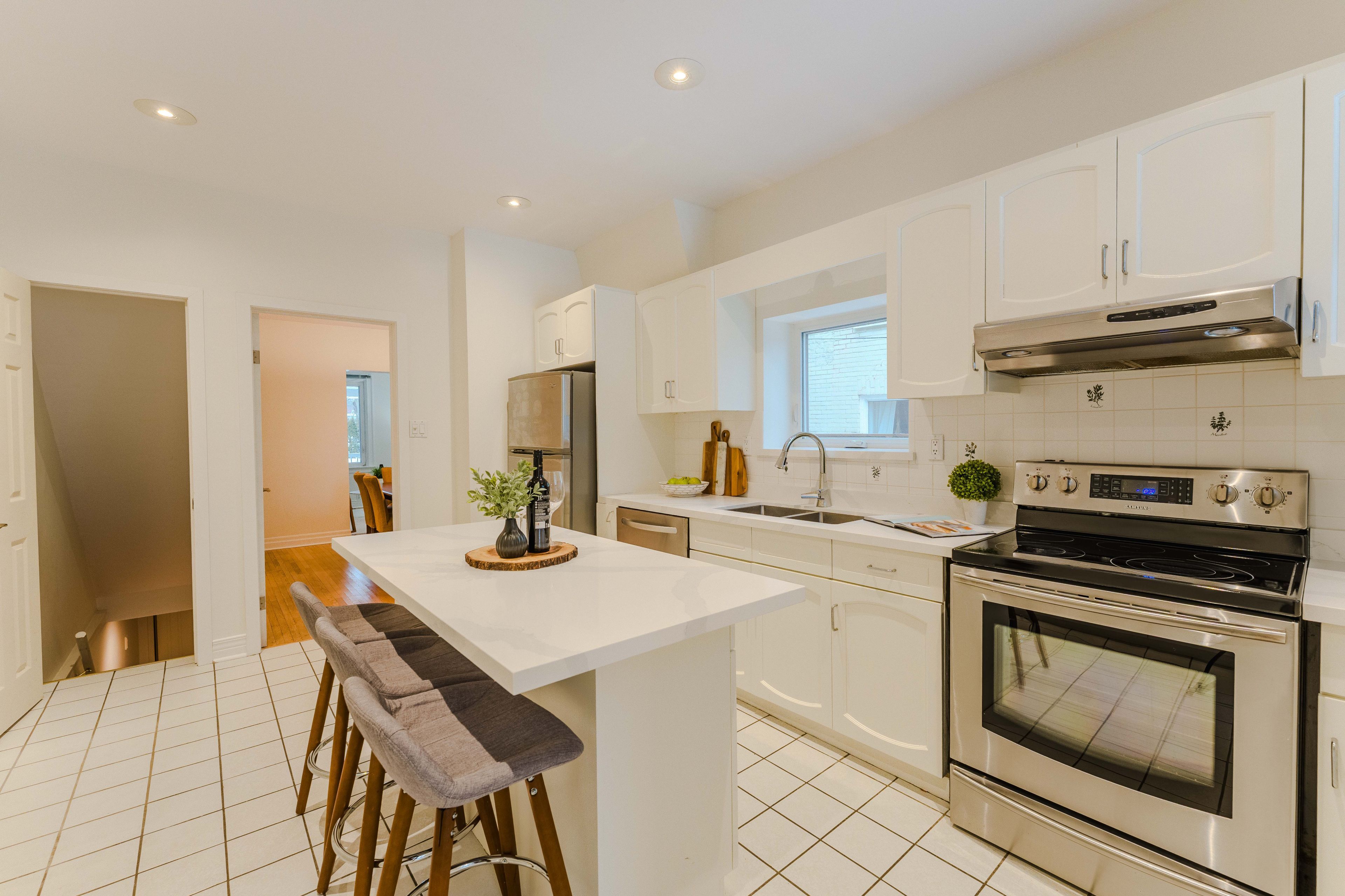 Welcome to 419 indian grove! This classic 2-storey semi-detached home is ideally situated in the heart of the junction. Offering 3 bedrooms & 2 bathrooms, this well-maintained residence blends traditional character with thoughtful functionality. The main floor welcomes you with a covered front porch & defined principal rooms. The bright living room features a large window & hardwood floors, flowing seamlessly into the formal dining room. The spacious kitchen is equipped with stainless steel appliances, ample cabinetry, tile flooring & a large centre island with seating. Upstairs the primary bedroom offers generous proportions, hardwood flooring, and a large window that draws in natural light. The two additional bedrooms each feature large windows and adaptable layouts suited to family, guests, or a dedicated workspace. A recently updated four-piece bathroom completes the second level. The finished lower level extends the living space with a recreation room featuring pot lights & high ceiling height, alongside a 3-piece bathroom, laundry area & additional storage-ideal for media, workspace, or play. The backyard is complete with a beautifully landscaped garden, providing a quiet outdoor setting with space to relax or gather in a private, natural setting. A detached garage with space for two cars & laneway parking is the cherry on top. This property enjoys close proximity to local shops, parks, schools & transit. A solid opportunity in one of toronto's vibrant west-end neighbourhoods.