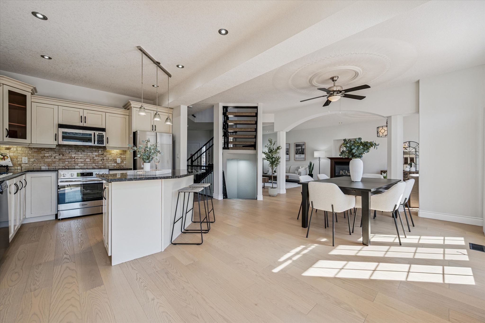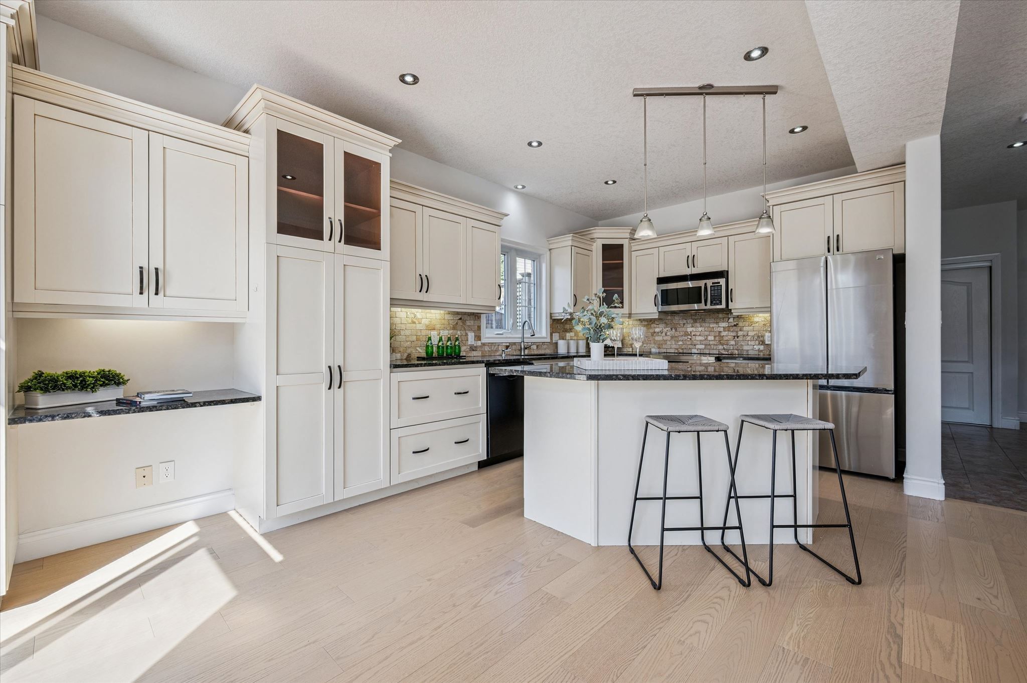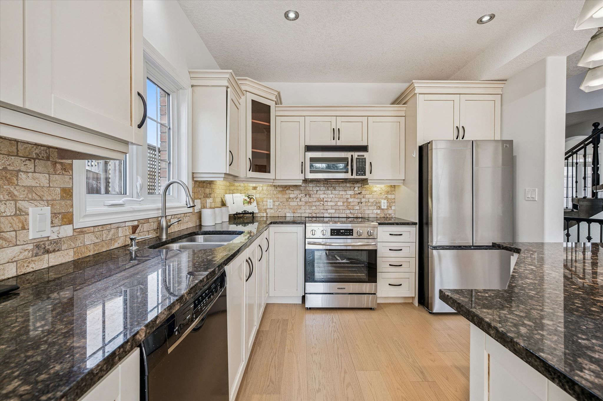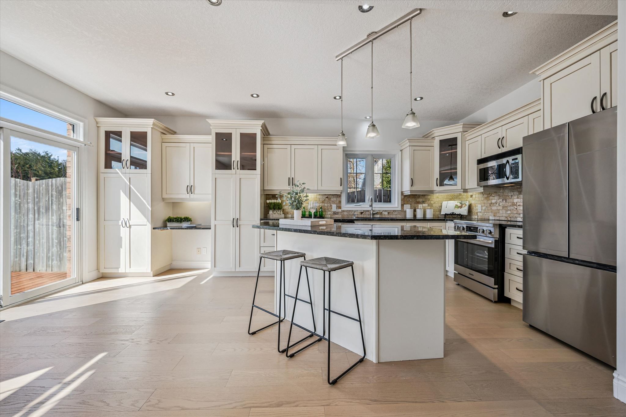 • Chef-inspired kitchen with granite countertops and breakfast bar.