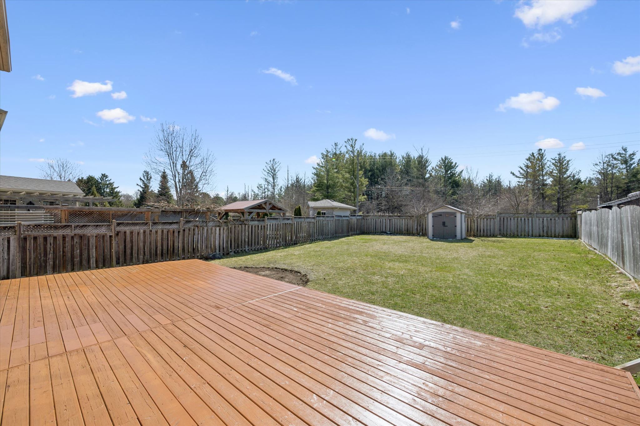 • Spacious fully fenced backyard with a large deck for gatherings.