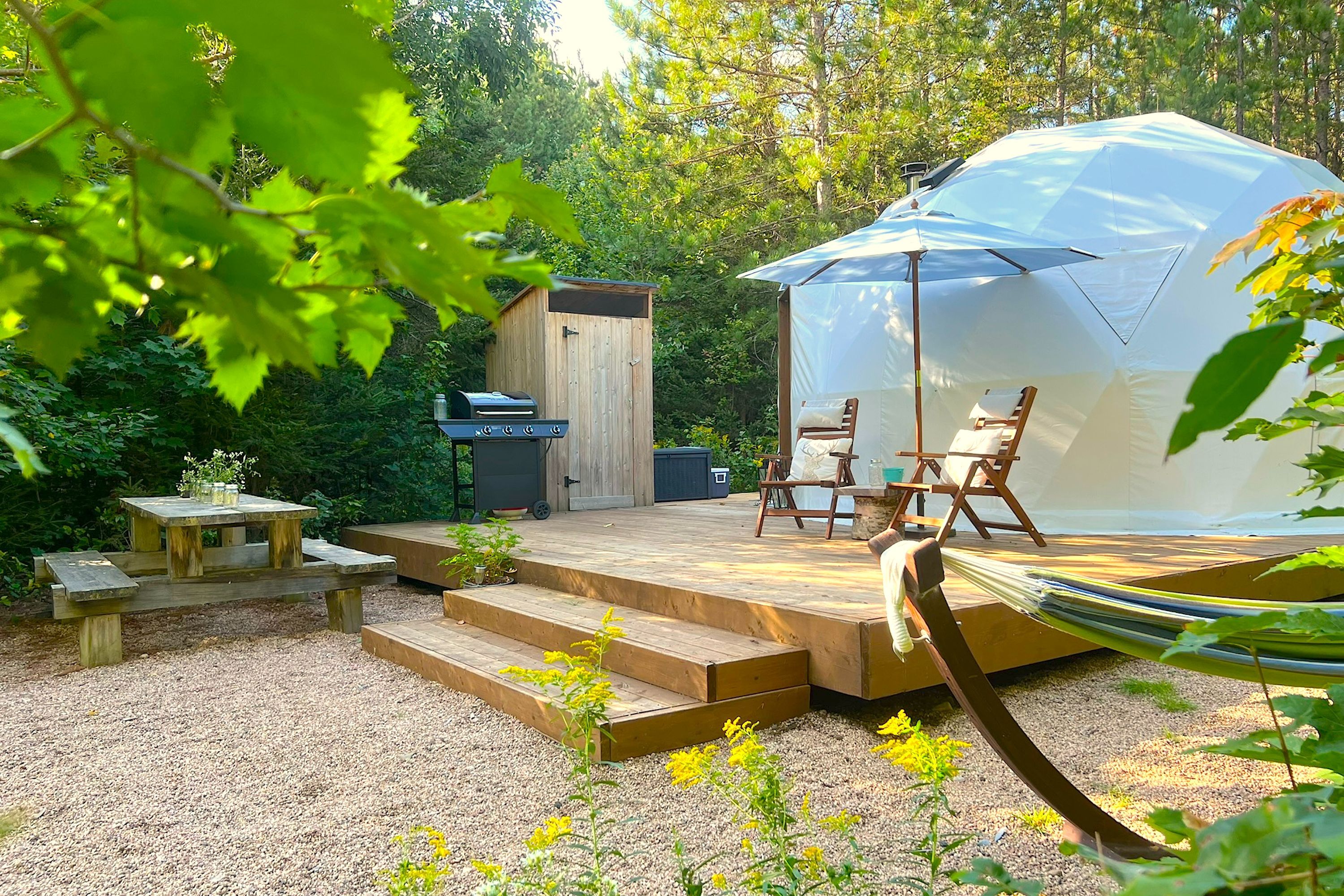 • Semi off-grid cabin and geodome for extra income potential.