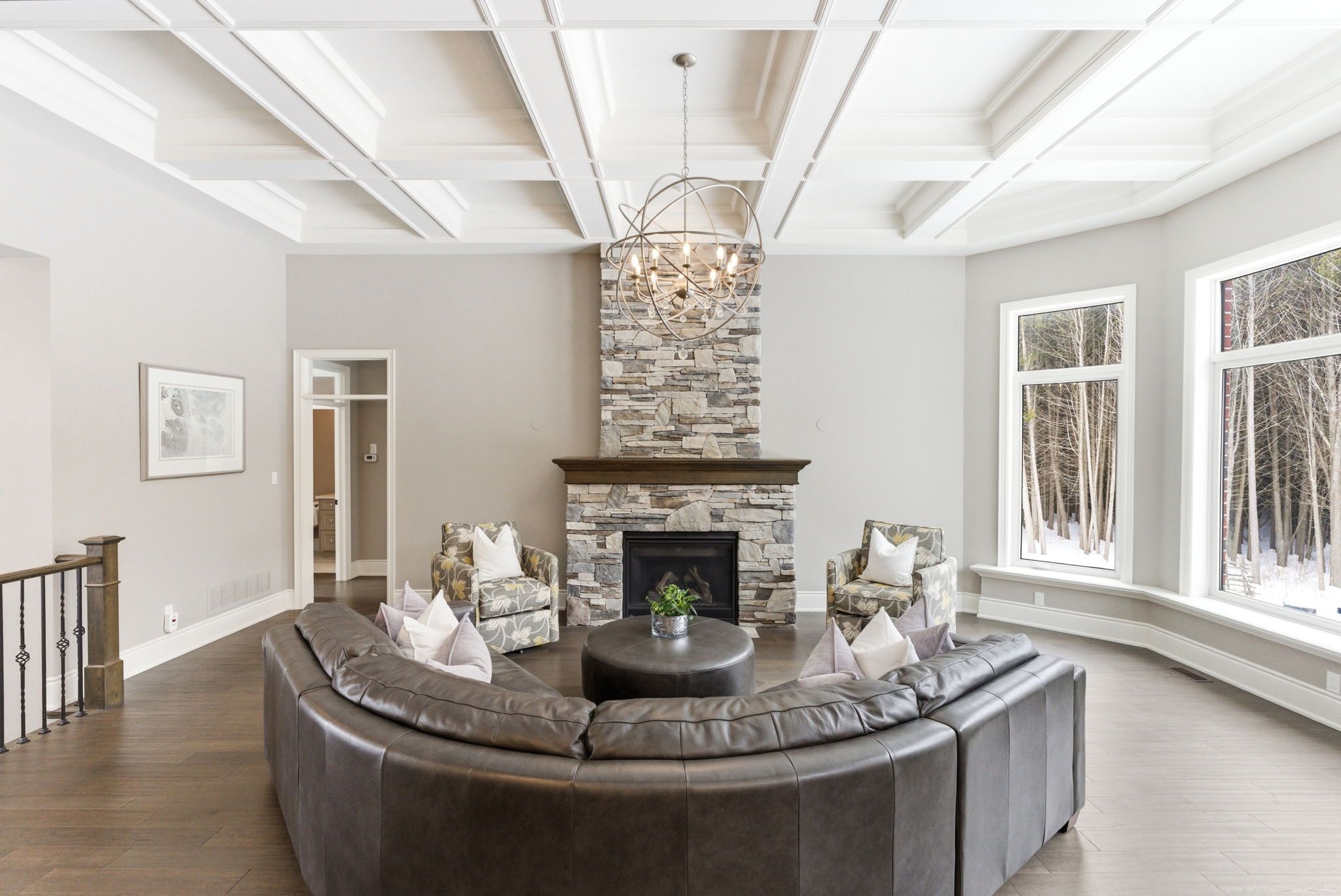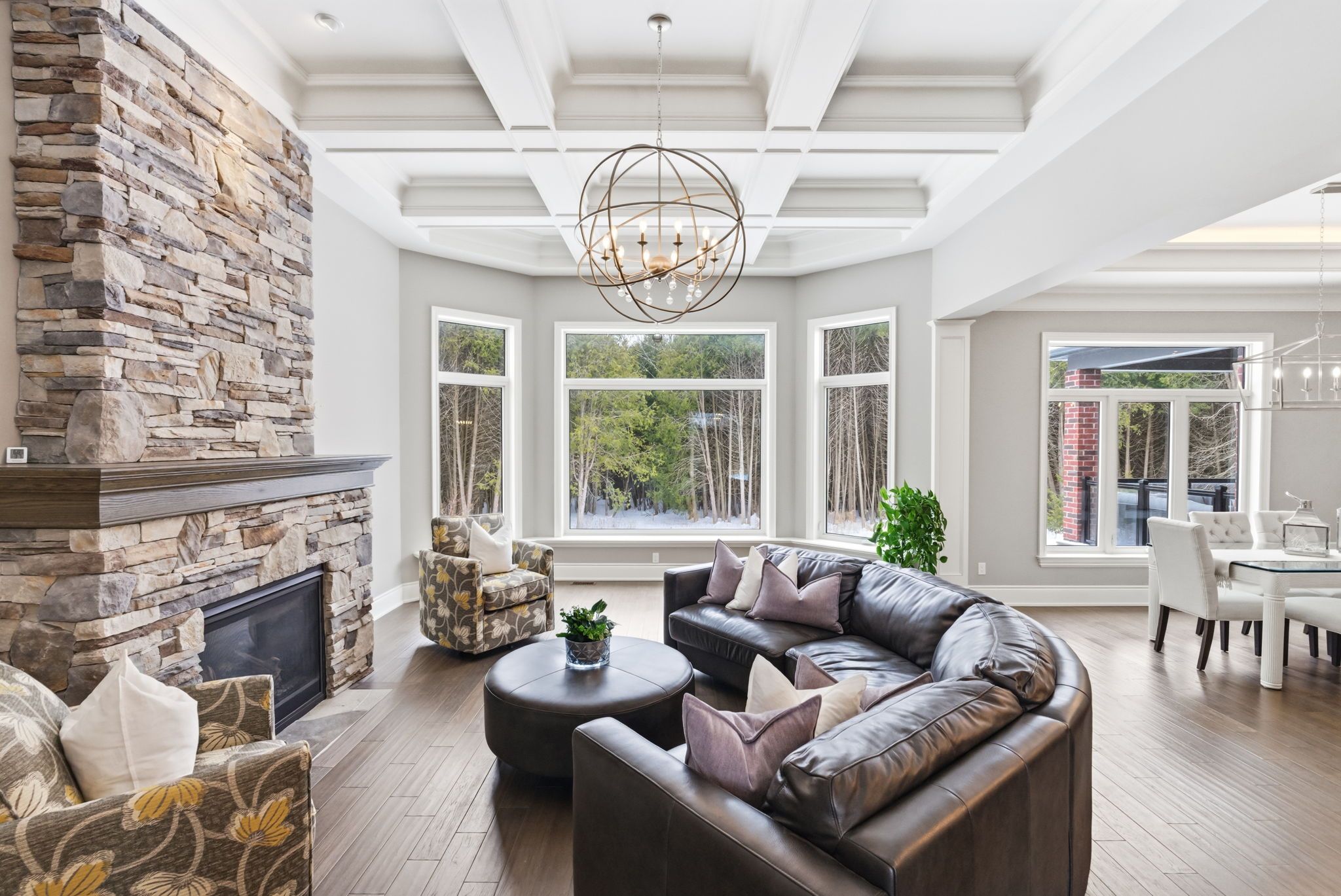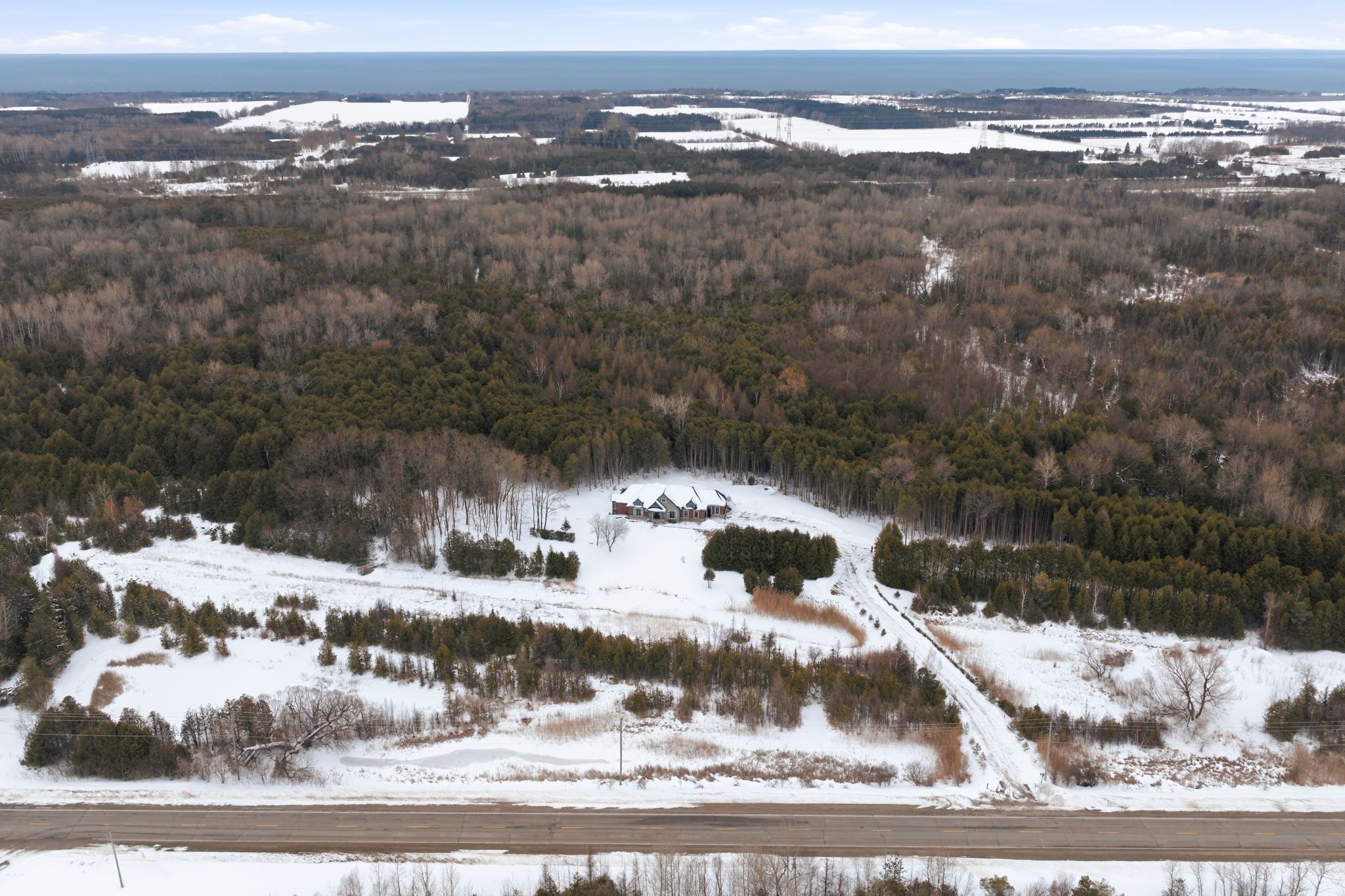 Welcome to this one-of-a-kind, custom-built andelwood homes bungalow, nestled on 80+ private acres w/pond surrounded by mature trees & the peace and calm of nature in newcastle. This remarkable estate offers refined luxury just minutes from city amenities & convenient access to hwy 401, 115/35, 407, and 418. Southern exposure & expansive windows offer spectacular, secluded views of forest, which views are also enjoyed from covered loggia. Designed with impeccable craftsmanship, the home features custom millwork, soaring ceilings, plaster crown mouldings, both interior & exterior transom windows that enhance natural light. Illuminated closets, multiple ceiling treatments, large mudroom w/ bench, laundry room w/custom dog shower adds both elegance & everyday function. The open-concept main floor is ideal for entertaining & family living. Stunning great room showcases a dramatic waffle ceiling & striking dry-stacked fireplace creating a warm yet sophisticated focal point. This dream kitchen is a true showpiece with custom cabinetry, cambria countertops & backsplash, wolf & subzero appliances, & a custom walk-in pantry. The primary suite has a spa-inspired ensuite with heated floors, heated towel rack, stand-alone tub, serene forest views, frameless glass shower w/ porcelain tile, separate rain shower head, bench & shampoo niche spacious additional bedrooms provide ample room for family and guests. The fully finished lower level includes a separate entrance & rough-in for a bar or second kitchen, offering in-law or multi-generational living potential. Car enthusiasts & hobbyists will appreciate the three oversized garages plus a dedicated atv garage, providing exceptional space for vehicles, storage, & recreational equipment. Step outside to explore private trails, open green space, and endless outdoor possibilities all within your own property lines. A rare offering that seamlessly combines modern luxury with rural tranquility.