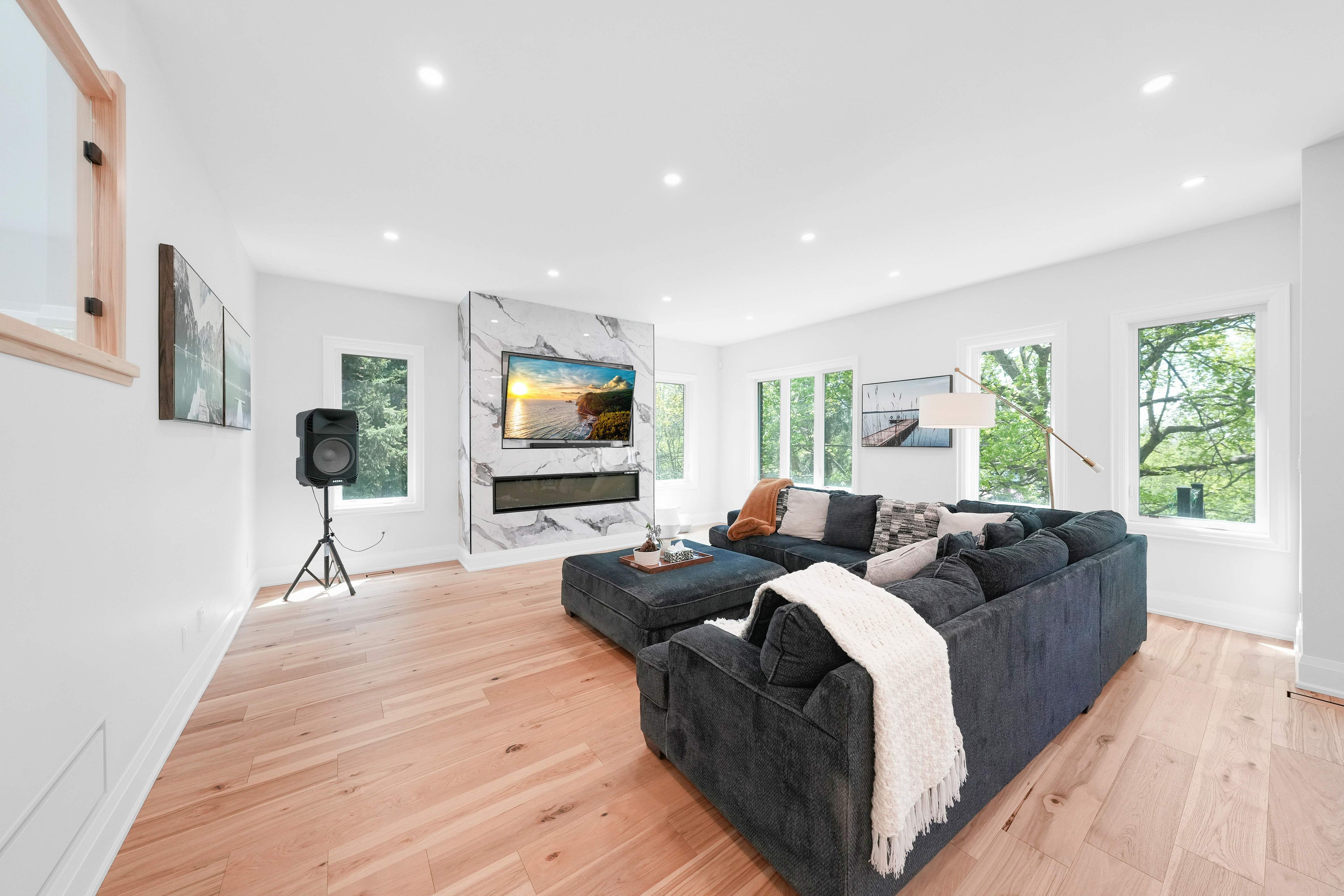 • High-end finishes include 7.5 wide hickory hardwood and quartz counters.