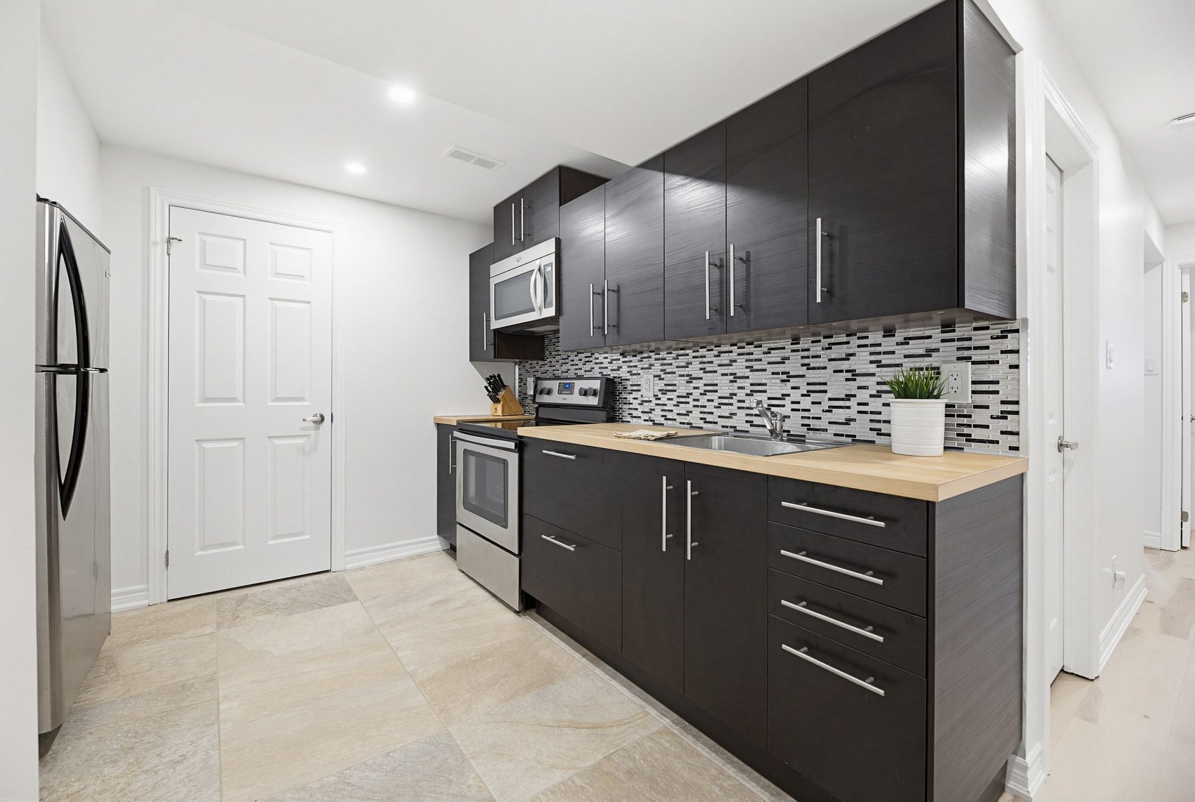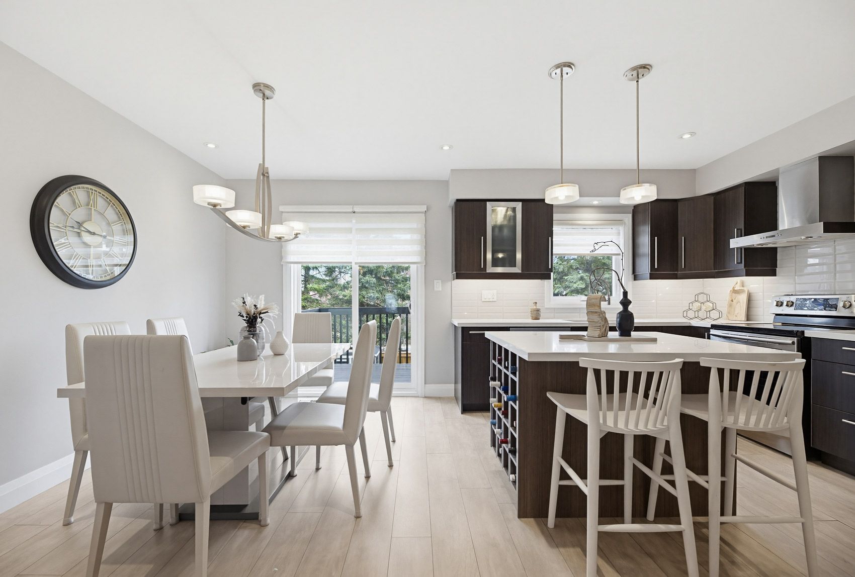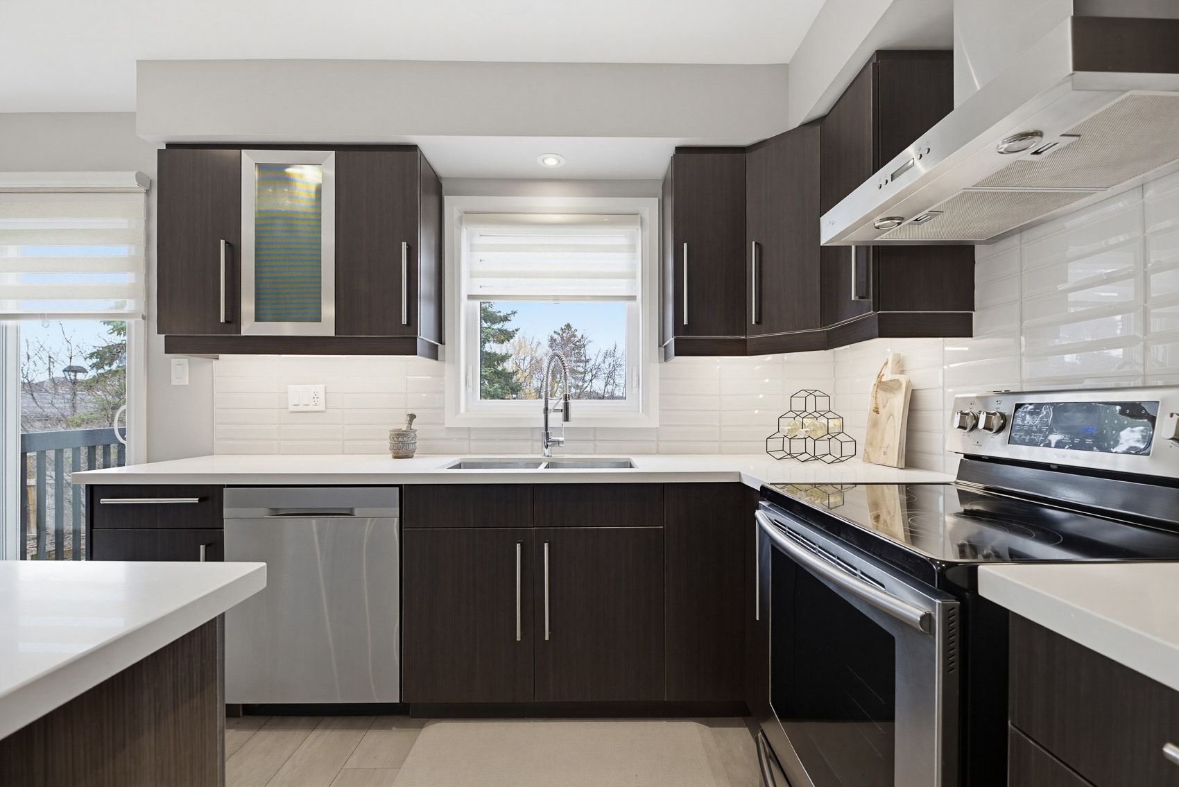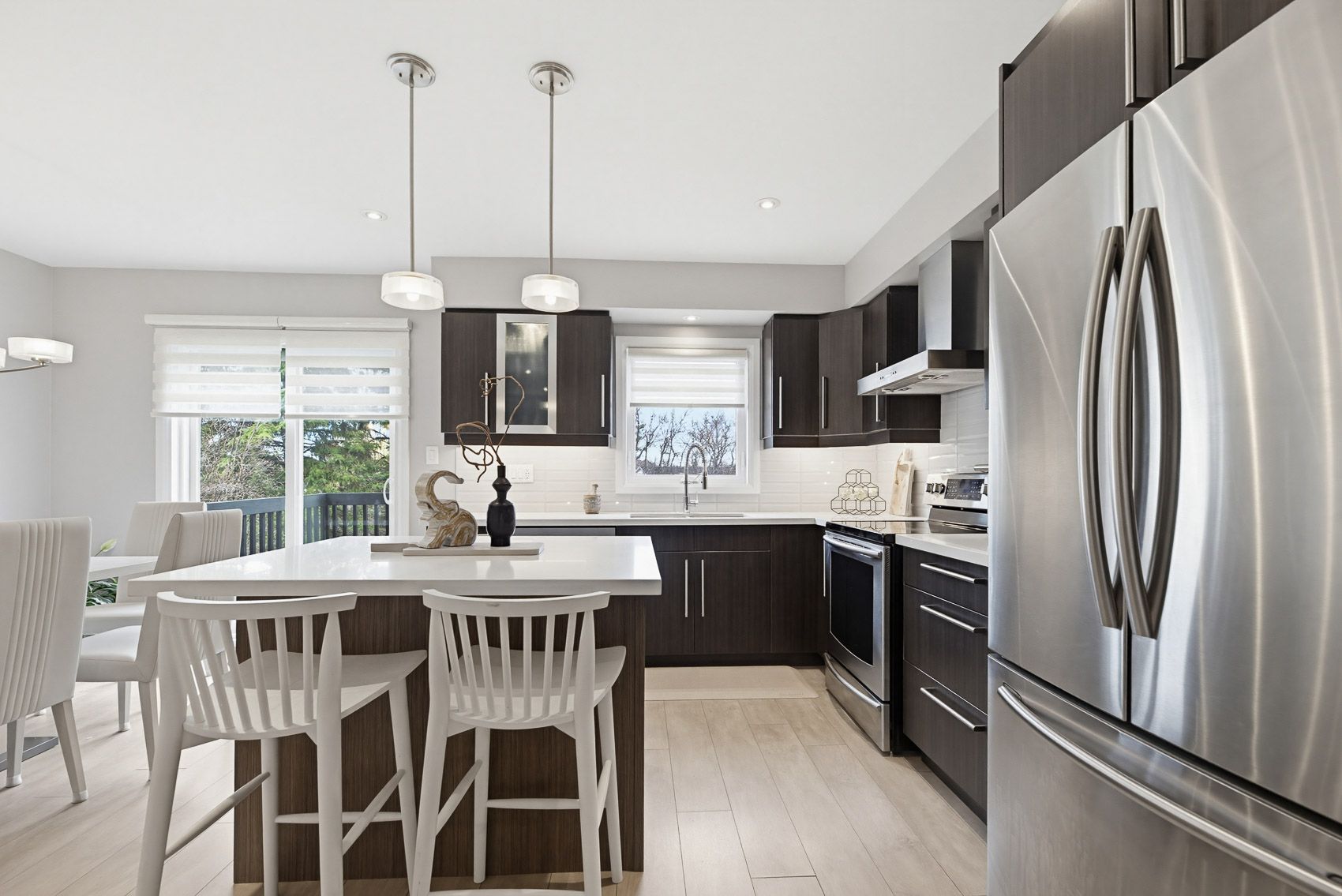 • Eat-in kitchen with quartz countertops and walk-out to BBQ deck.