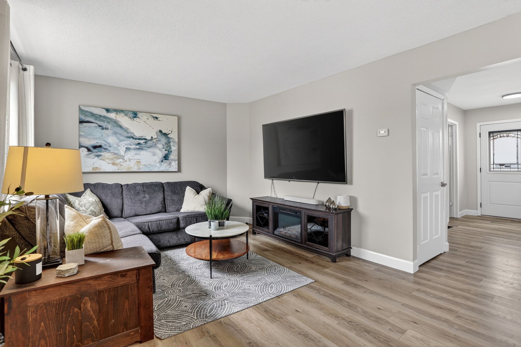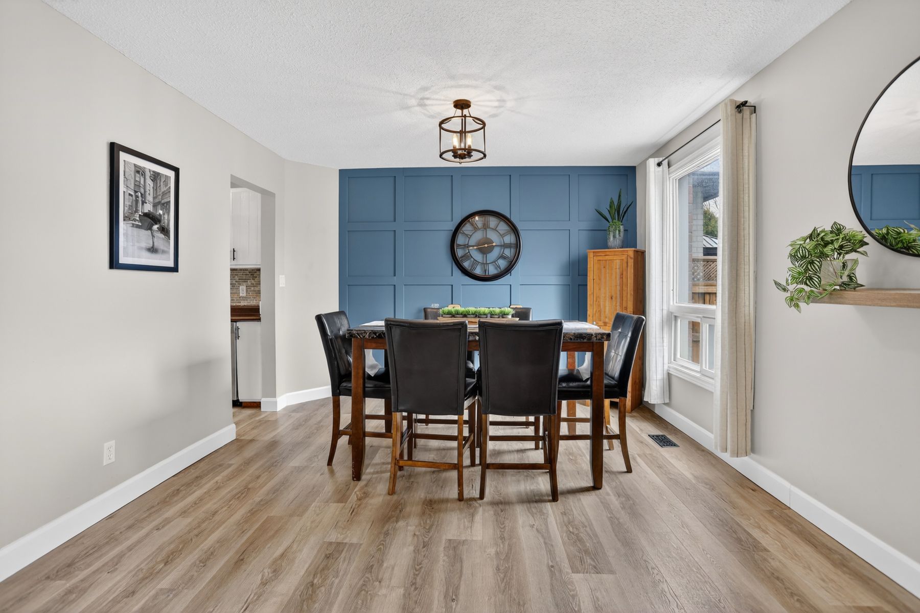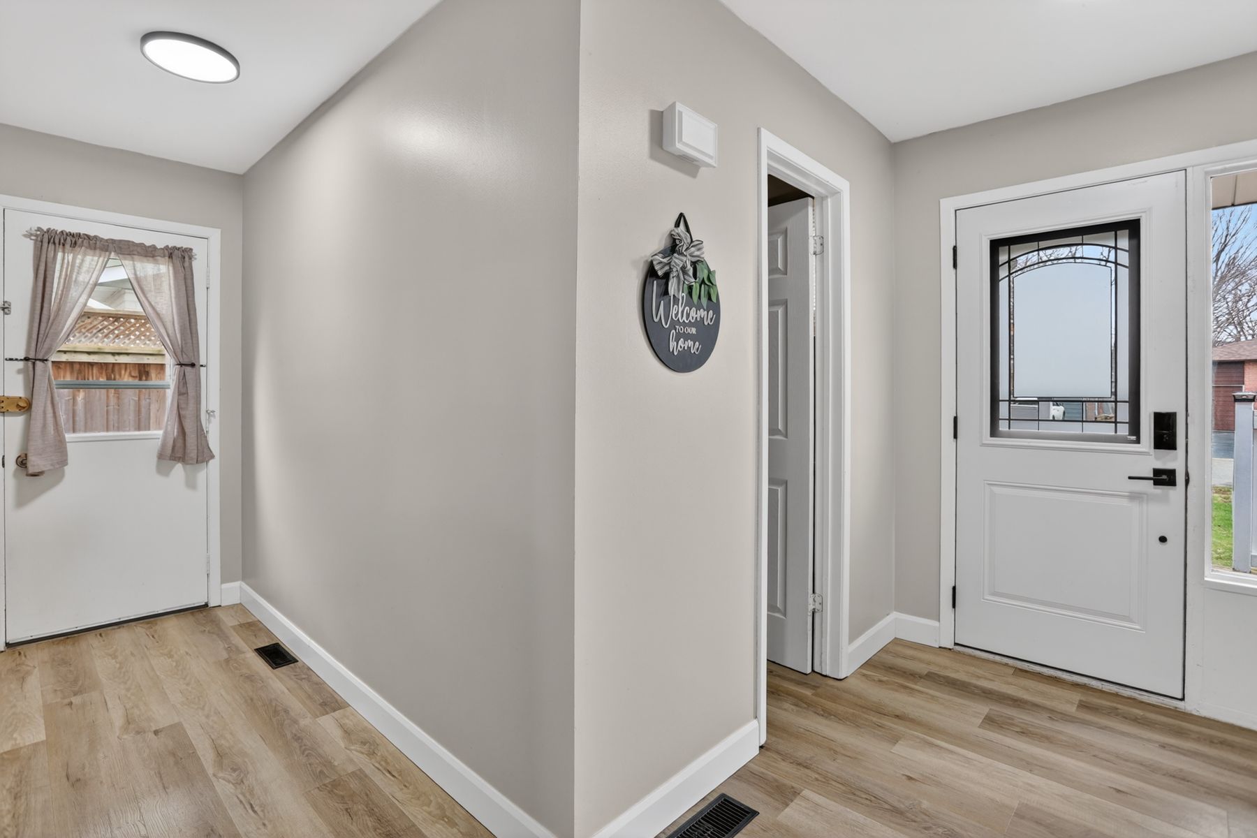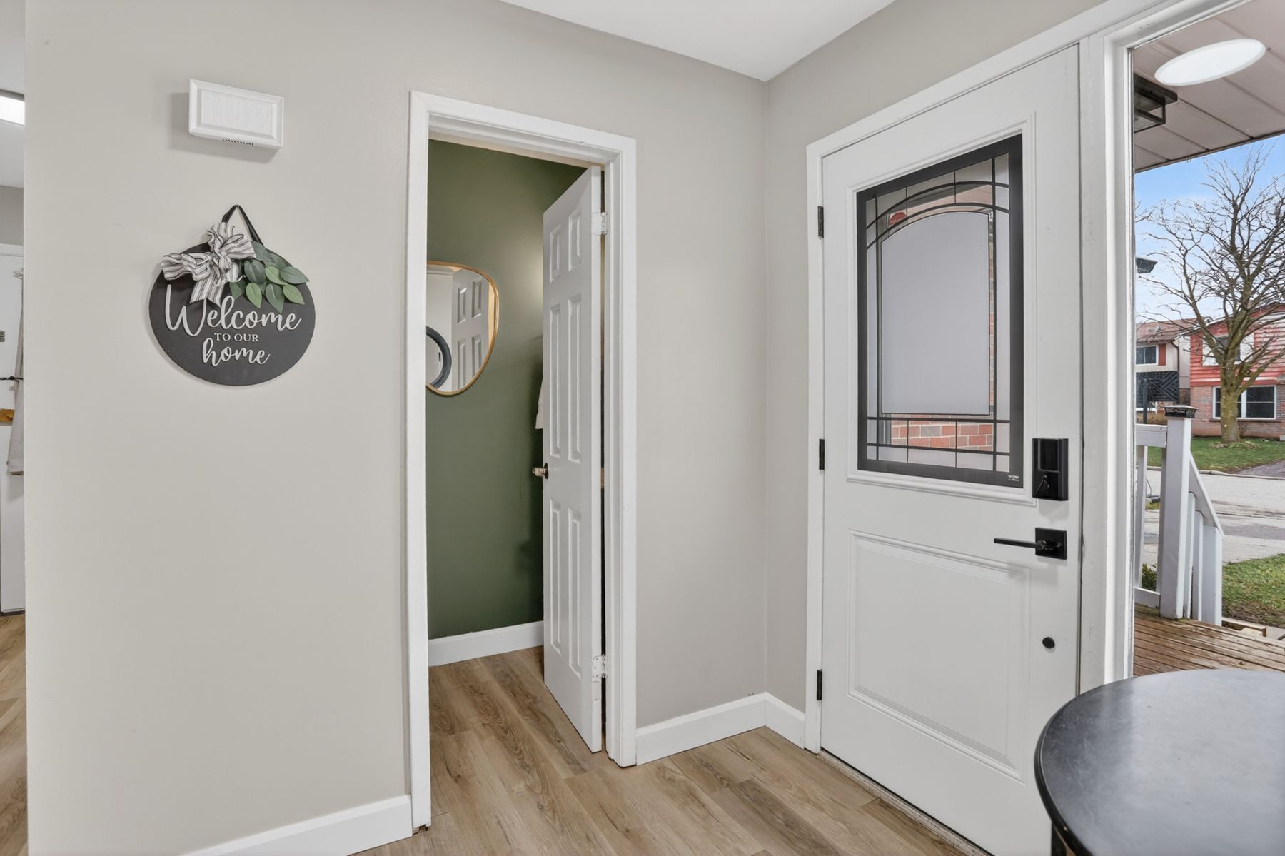 • New flooring and updated powder room enhance modern living.