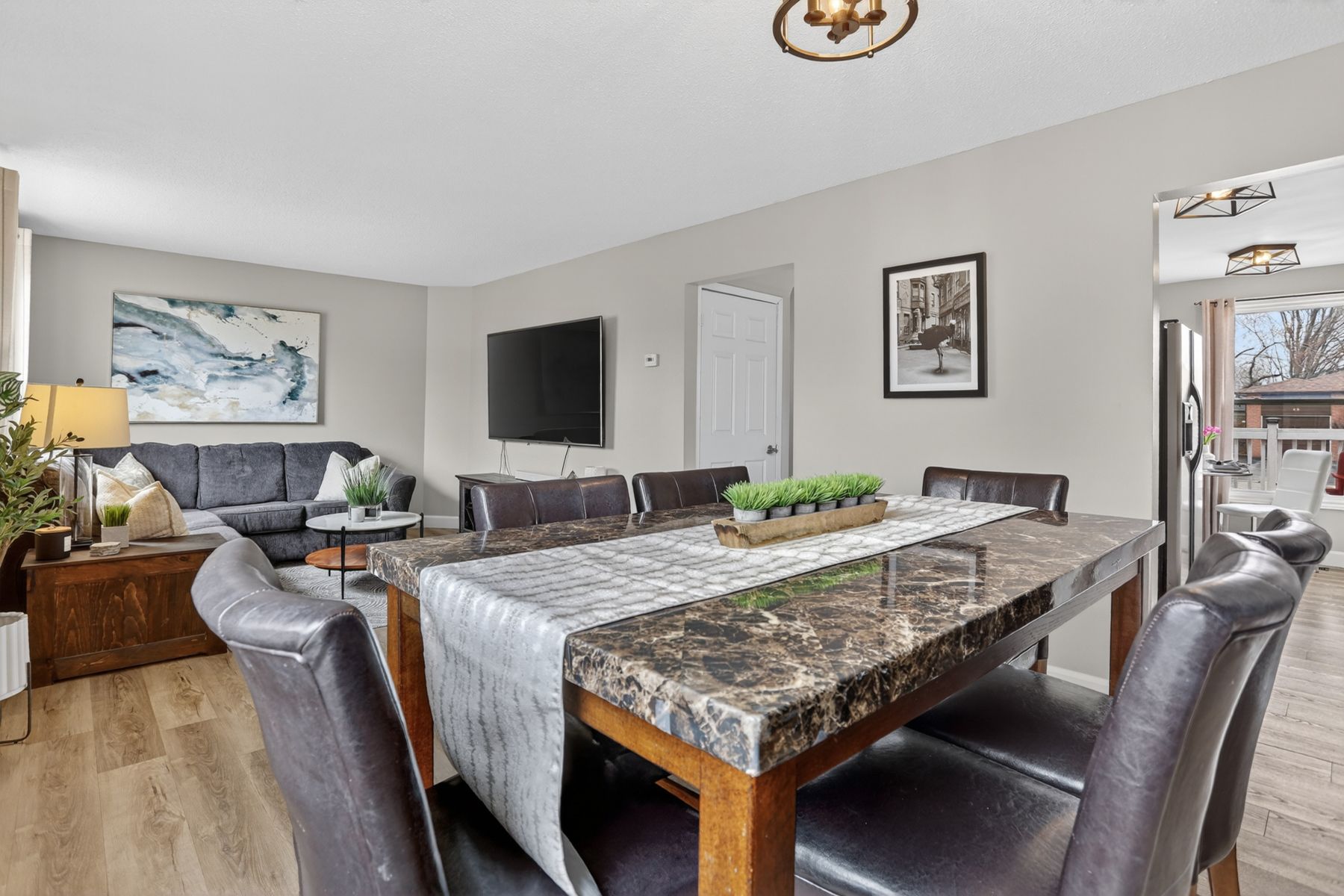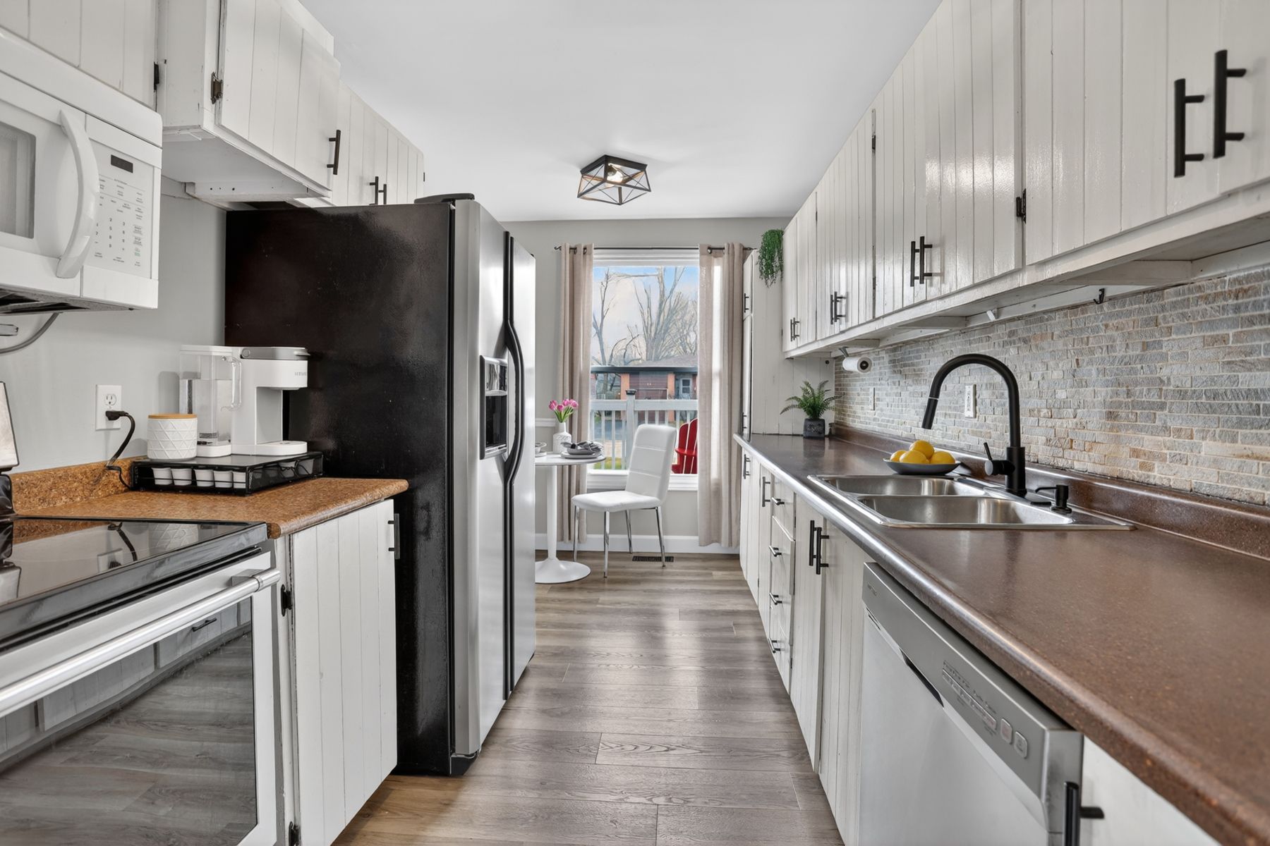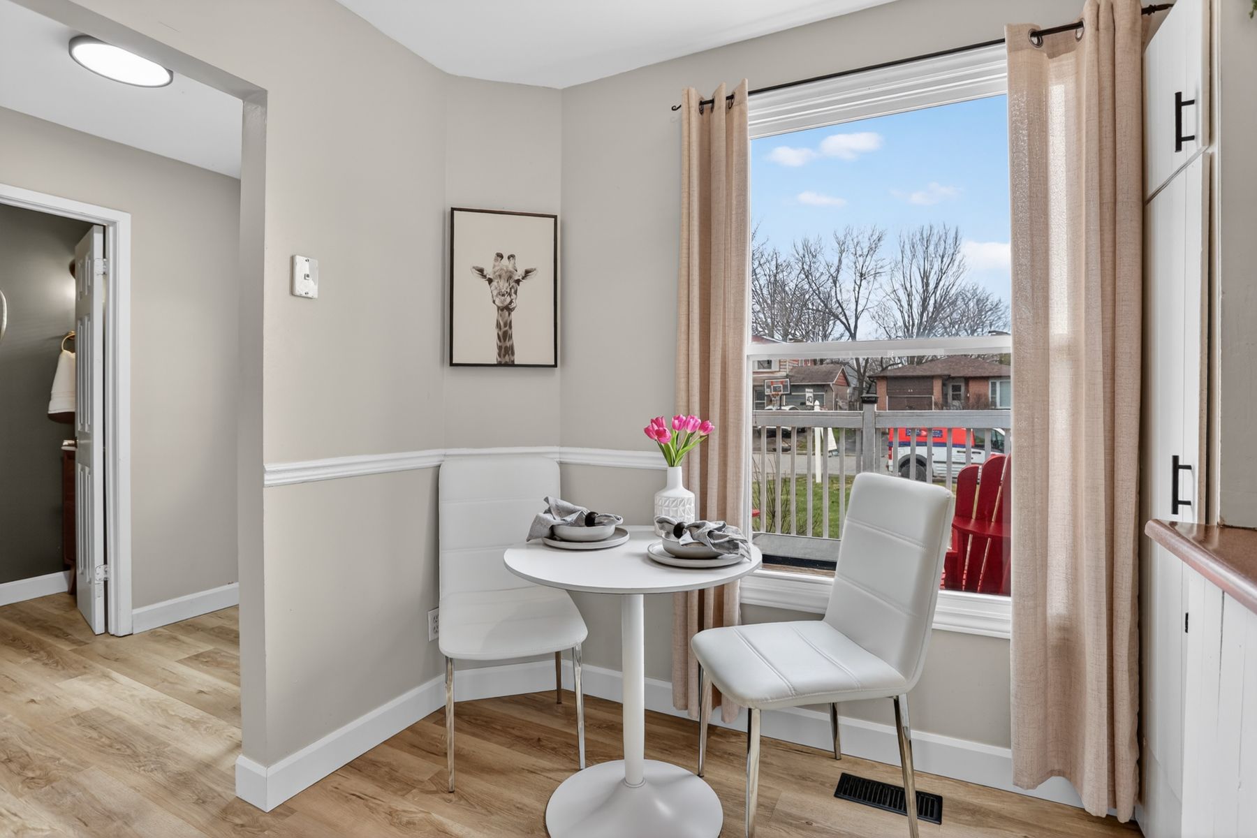 • Bright eat-in kitchen with ample storage and natural light.