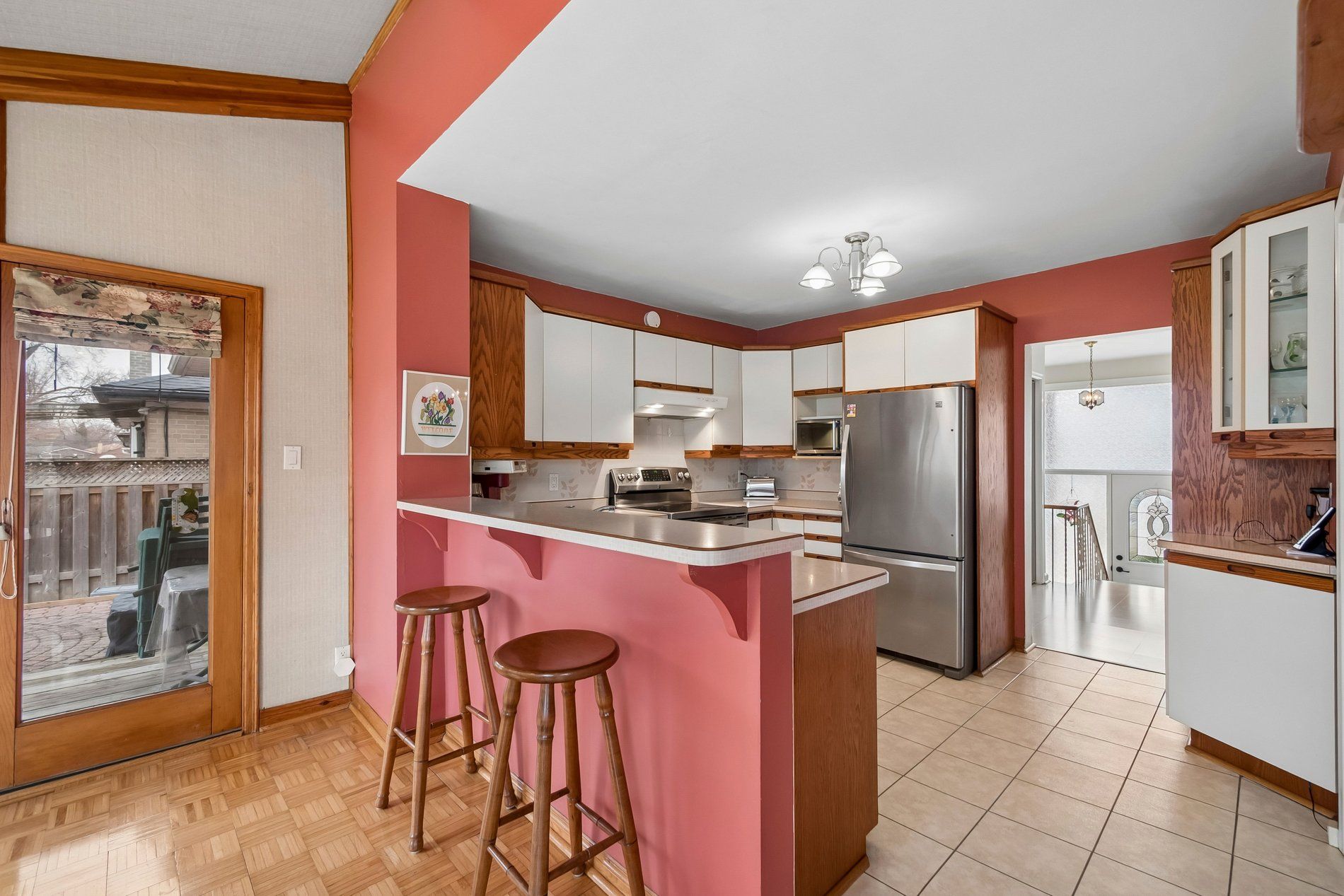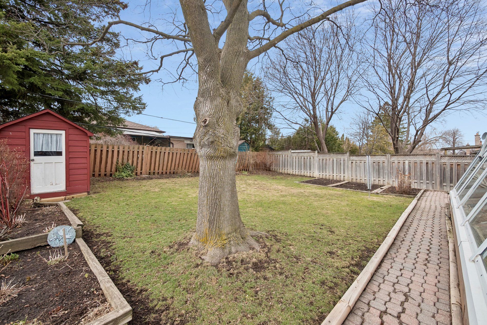 • Double doors lead to an interlocking patio and backyard.