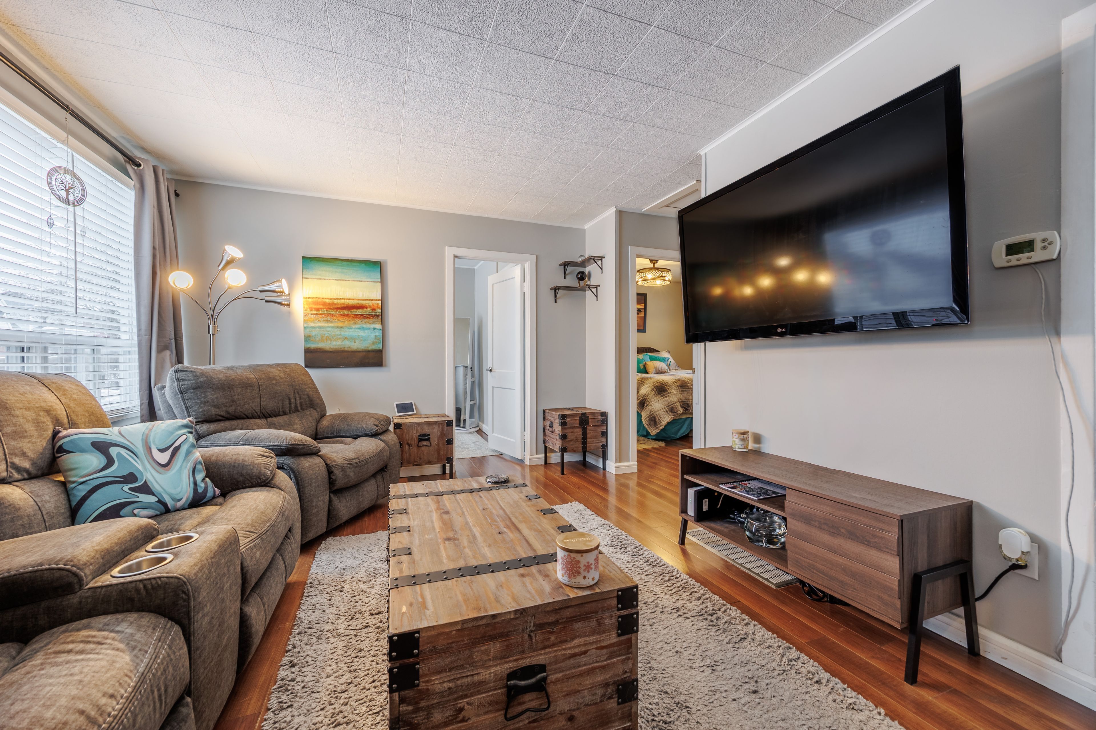 • Thoughtfully updated living space with neutral decor and good functionality.