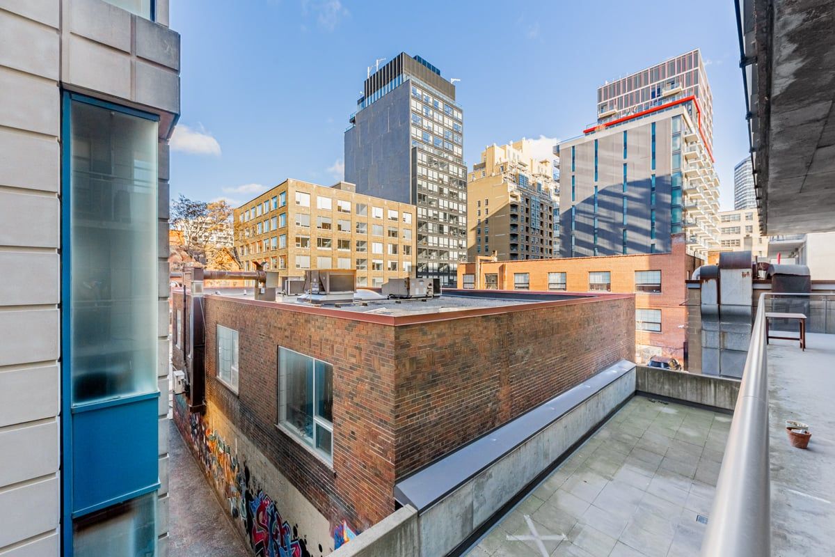 Welcome to zen lofts, a beautiful boutique building nestled on desirable street in the fashion district/downtown toronto, featuring only 35 units and rarely available! Perfect for the urban dweller, this unit offers open-concept living with lofty concrete ceilings, providing a cool and modern vibe for its owner. Cook in style in your spacious kitchen, open to your light-filled living/dining area that boasts floor-to-ceiling warehouse-style windows with a sliding door walkout to your large personal terrace, where bbqs are allowed, transforming it into an extended living space for entertaining, relaxing, and enjoying! Your primary bedroom has a large closet and natural light, sharing the same ambiance featured throughout, plus a 4-piece bathroom and in-suite laundry to complete the space. Zen lofts is pet-friendly with a dog park just across the street, steps to the newly opened waterworks food hall, 1 minute away from ace hotel, 3 minutes to the spadina streetcar, the vibrant energy of queen st w, and tons more as you're surrounded by everything offered in this incredible city. Must be seen -- this unit won't last long!!