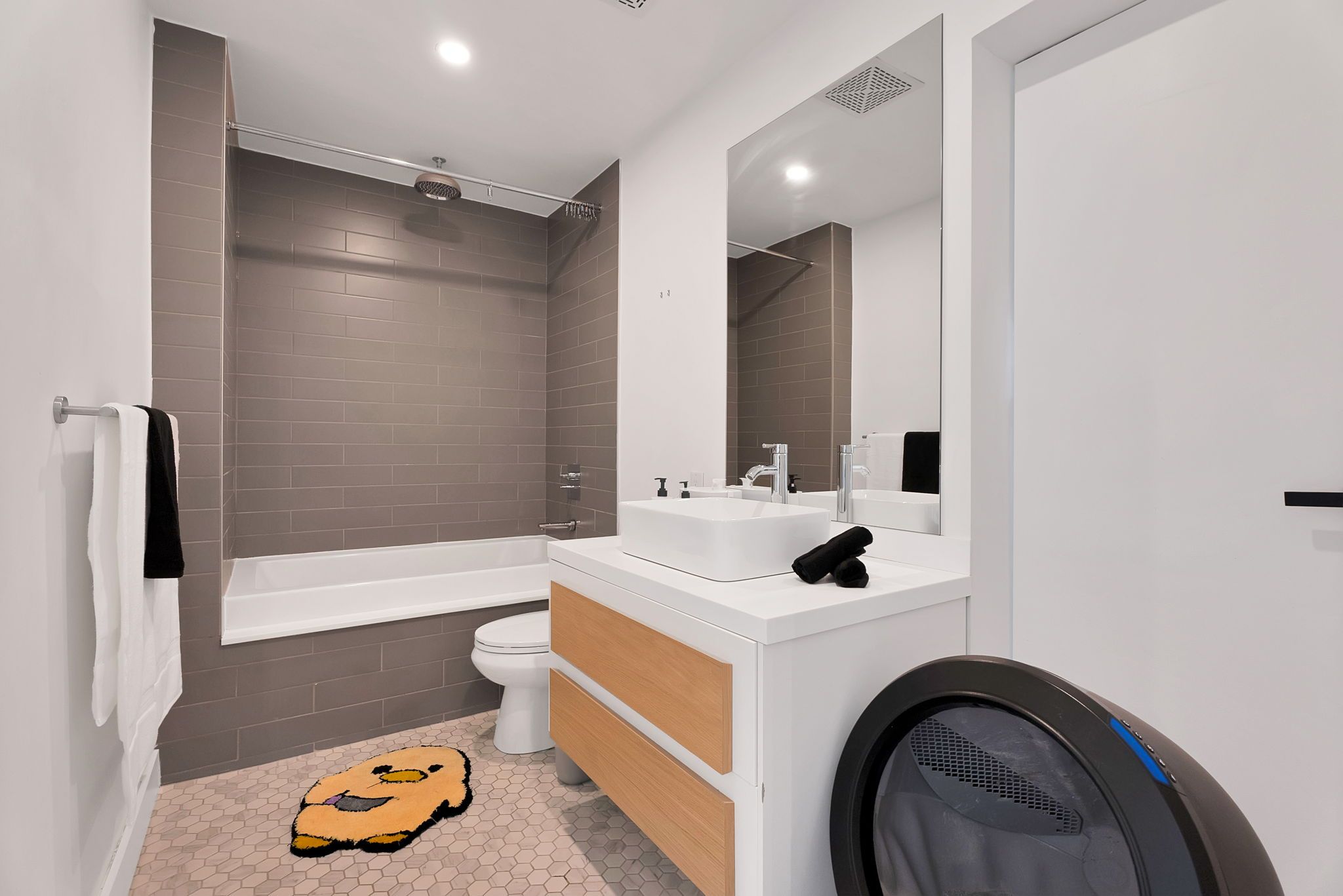 Welcome to this exquisite (1204 sf) open-concept zen loft, discreetly tucked away on a quiet street. Designed with a coveted split-bedroom layout, this sophisticated home offers both privacy & seamless flow, complemented by soaring 9-foot ceilings & dramatic floor-to-ceiling windows that flood the space with natural light & seamlessly extend outdoors to an expansive terrace with a built-in bbq hookup, ideal for summer entertaining or candlelight dinners. The home showcases exceptional porcelanosa porcelain imported from spain, featuring full-slab kitchen countertops, an expansive designer island, & striking book matched, full-height slabs in the primary shower, each detail reflecting superior craftsmanship & refined elegance. The primary bedroom is a serene retreat, highlighted by a large window & a spa-inspired ensuite featuring double vanity sinks, a spacious walk-in shower with multiple rain shower heads, & thoughtfully designed wall closets. The 2nd bedroom offers remarkable versatility with a custom built-in murphy bed, double closets, & direct access to an adjacent bathroom, ideal for guests, a private office, or a secondary suite. Additional highlights include premium engineered hardwood floors, bespoke millwork throughout, & designer led lighting that enhances the home's luxurious ambiance while accentuating its architectural details. Every element of this unique home has been meticulously curated to create a tranquil, living experience where luxury meets functionality. Ideally located in one of the city's most desirable urban enclaves, the home is surrounded by 4 parks & 7 recreational facilities within a 20-minute walk. Exceptional connectivity is just steps away, with a 2-min. Walk to spadina ave. Street-level transit, a 13-min. Walk to ttc, osgoode subway stn., & quick access to gardiner expressway & lakeshore blvd., within a 5-min. Drive. This is an exceptional opportunity to own a refined urban sanctuary with 1 parking & 2 lockers included.