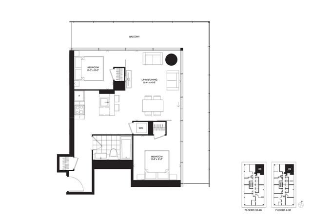 • Expansive 307 S.F. wrap-around balcony with stunning city views.