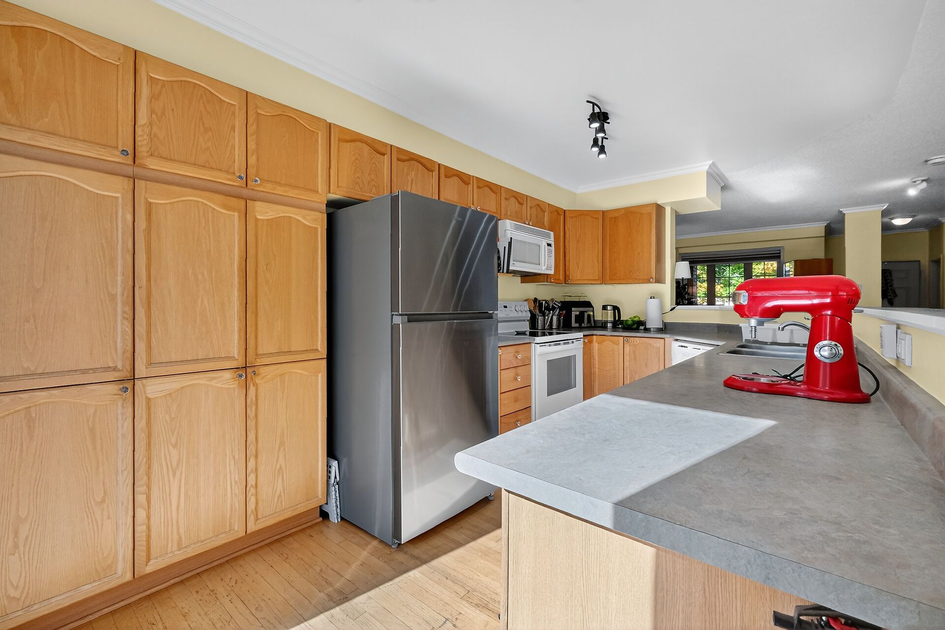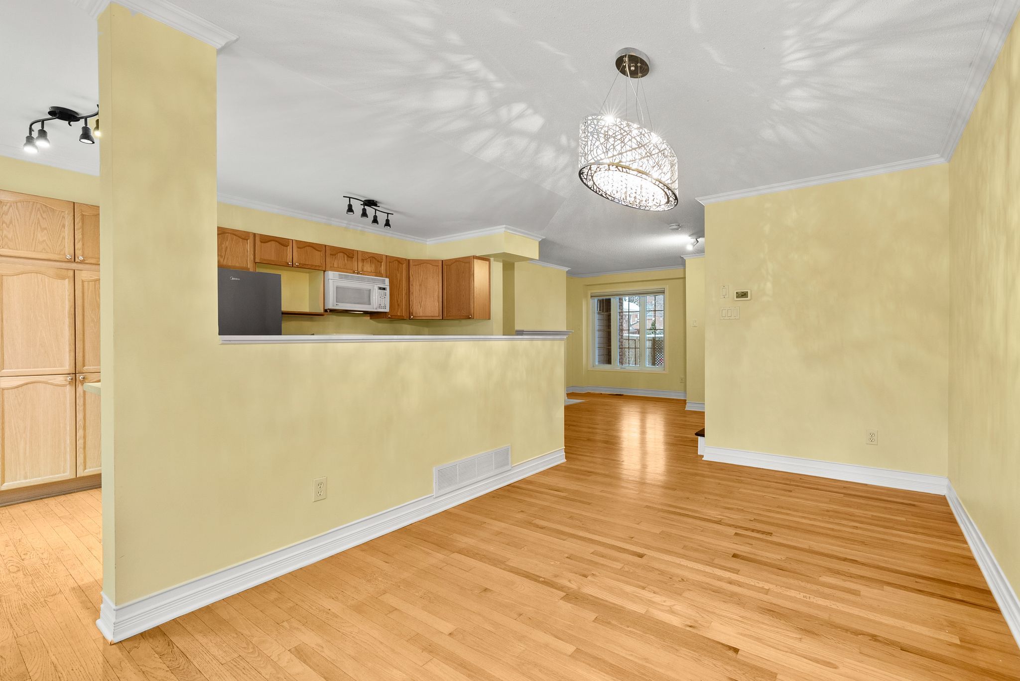Lovely townhome situated on a quiet crescent surrounded by young families. This well-maintained property backs onto the park and recreation area of the st. Laurent complex with no rear neighbours and full southern exposure. Enjoy direct access to green space and community amenities including a pool, library, skating rink, gyms, and more. Pride of ownership shows throughout. The original owners made thoughtful modifications at construction, adding extra space to the dining and kitchen areas. Hardwood flooring runs throughout the main and upper levels. The main bathroom features a beautiful skylight, bringing in plenty of natural light. Step outside to a private, low-maintenance backyard with lovely landscaping and open views - the perfect spot to relax or entertain. The unfinished basement is framed and ready to be completed as a future family room. A bright, cheerful home in a great community close to parks, schools, and transit.