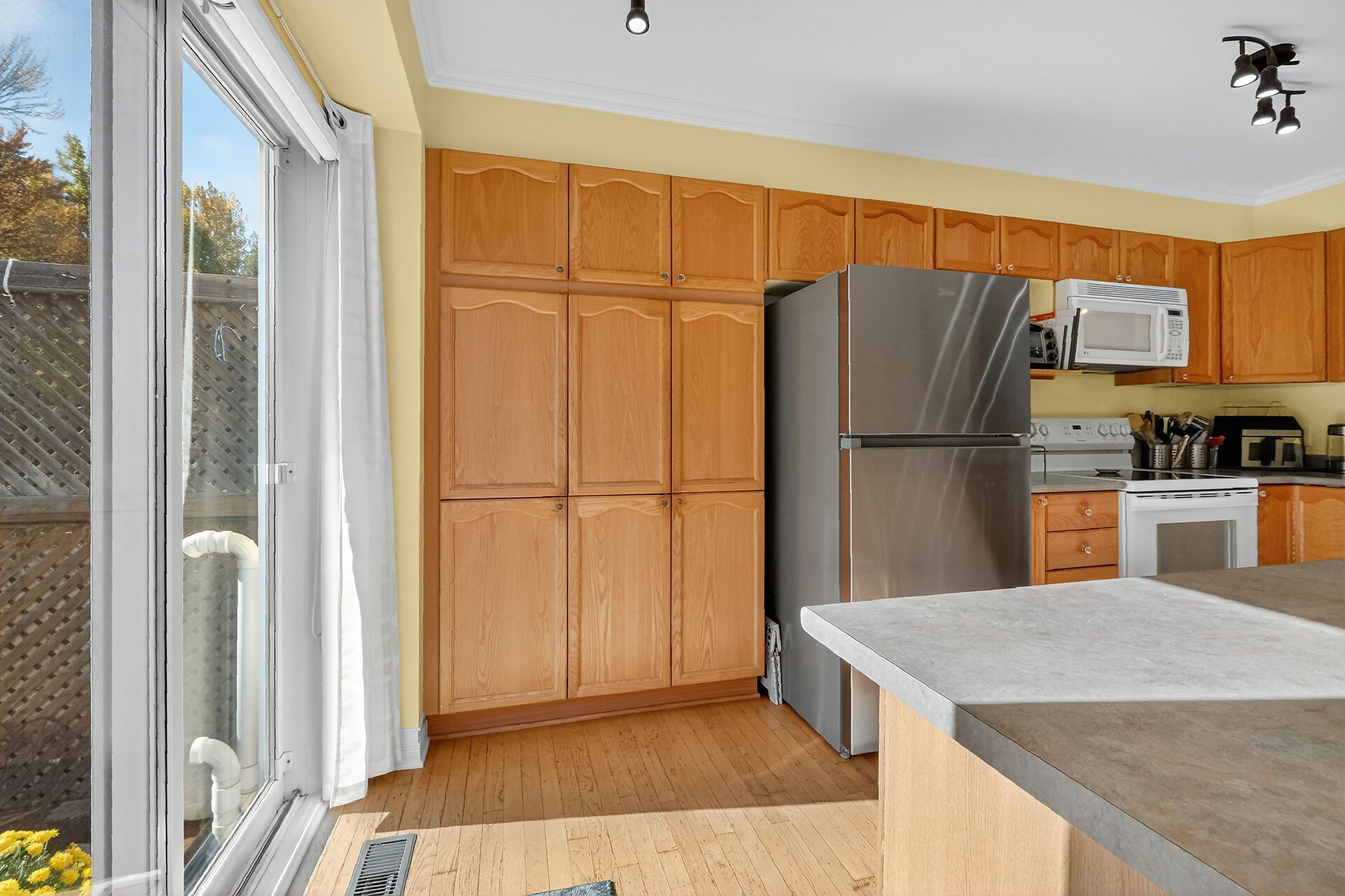 • Private backyard with lovely landscaping for relaxation and entertaining.