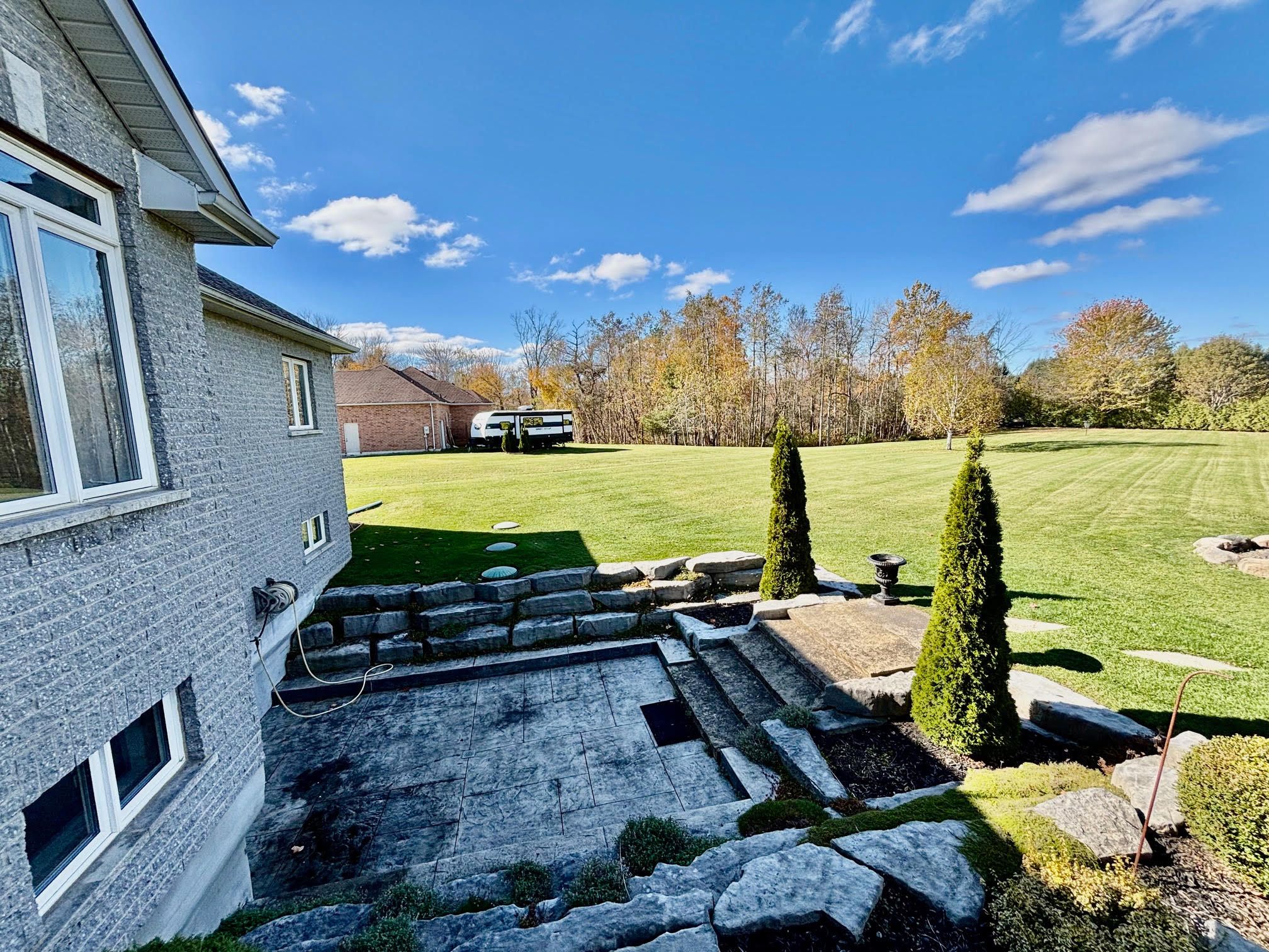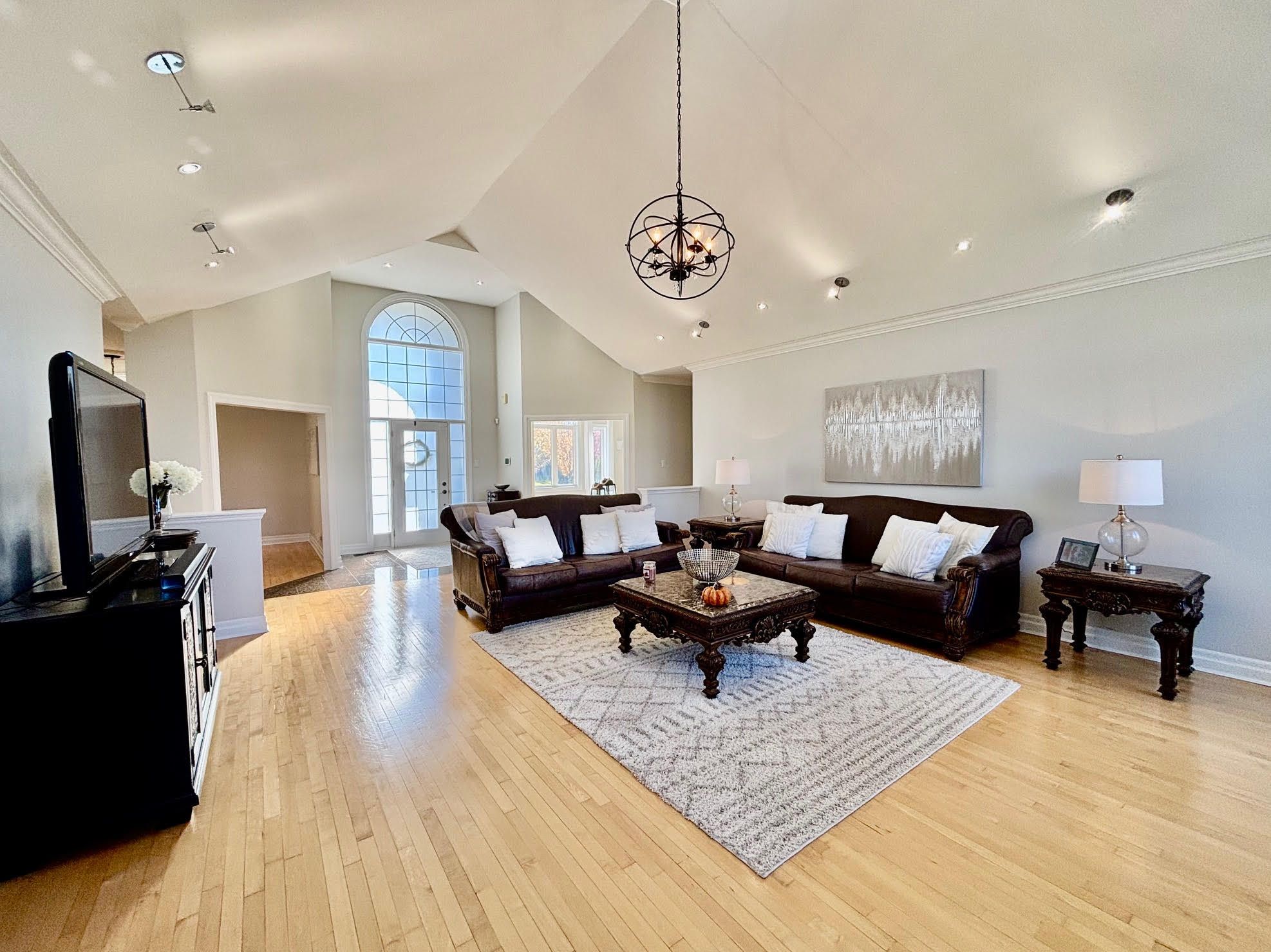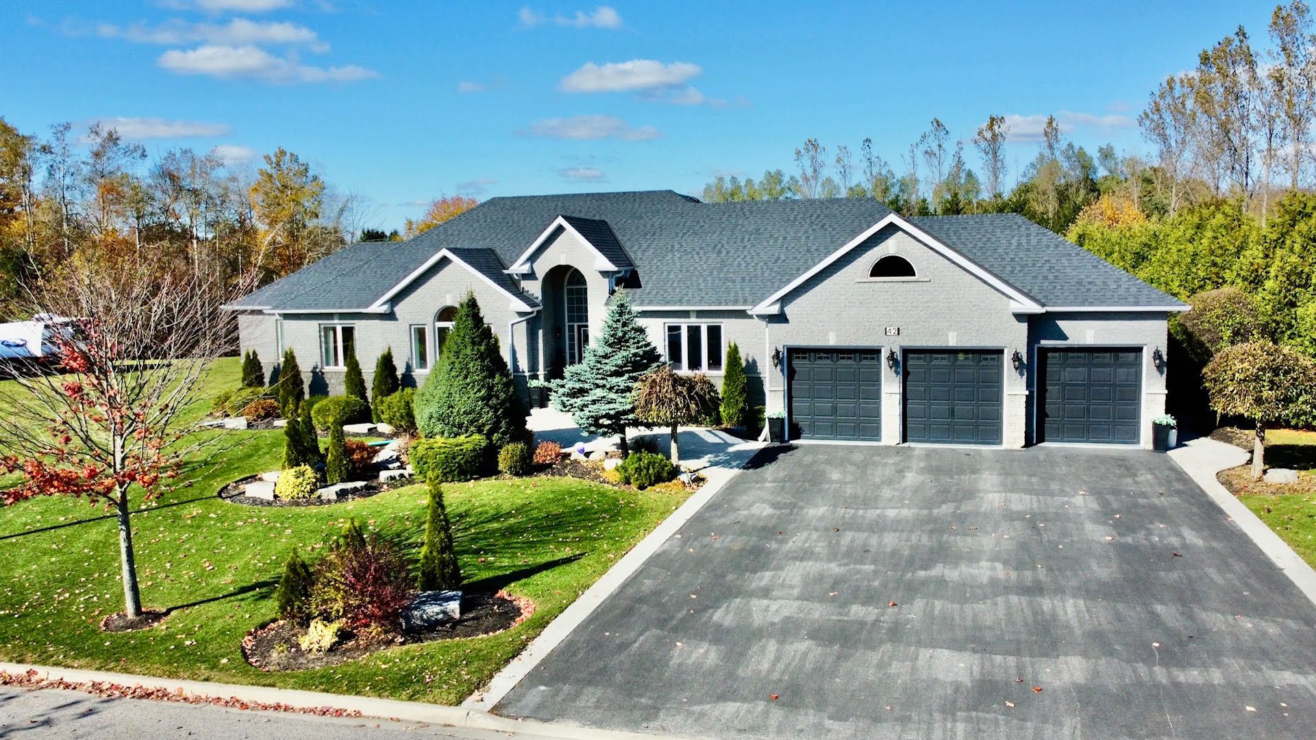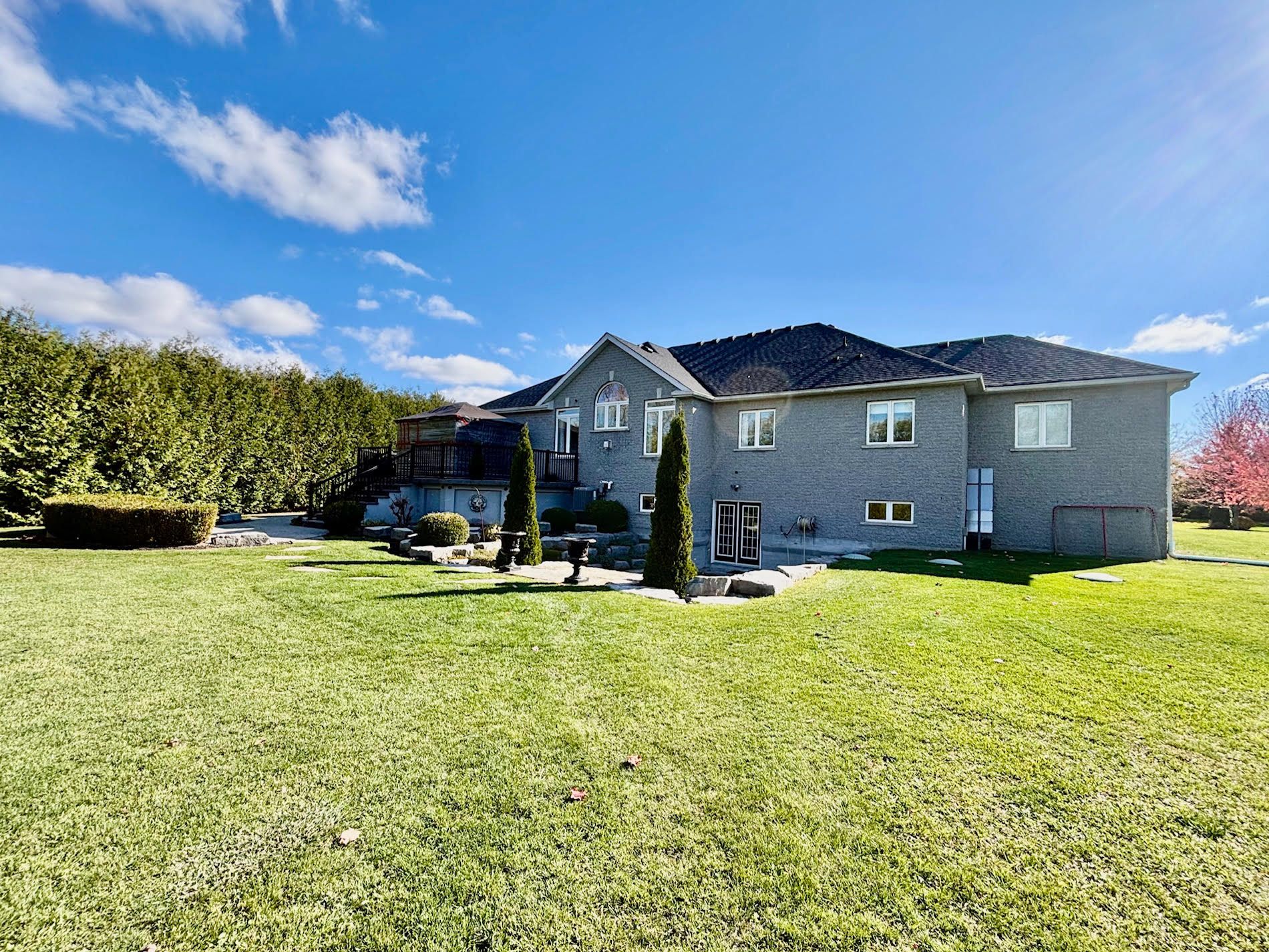 Experience timeless elegance and modern comfort in this exquisite 3-bedroom, 4-bath residence, offering over 2,528 sq ft. Of beautifully appointed living space plus a large, partially finshed walkout basement awaiting your personal design. Perfectly positioned near the end of a tranquil cu-de-sac, this home sits on a private 1. 07-acre lot surrounded by mature trees and meticulous landscaping. The interior is defined by soaring cathedral ceilings, expansive window, and rich hardwood flooring that flows seamlessly throughout the main living areas. The open-concept family and living rooms invite natural light and serene view, while multiple walkouts to the spacious deck provide effortless transitions for indoor-outdoor entertaining. The gourment kitchen offers generous workspace and storage, complementing the home's sophisticated layout. Retreat to the primary suite, where comfort meets style with an elegant ensuite and peaceful views of the private grounds. Car collectors and enthusiasts will appreciate the attached 3-car garage, featuring a tandem bay and epoxy-coated floors, providing both function and flair. Outdoors, a large concrete entertaining deck overlooks the beautifully landscaped property, while additional storage beneath the deck enhances the home's practicality. Located just minutes from local amenities and offering an easy commute to the gta, this property embodies refined country living without compromise - where luxury, privacy, and convenience come together seamlessly. Icf block foundation and engineered i-beam construction.