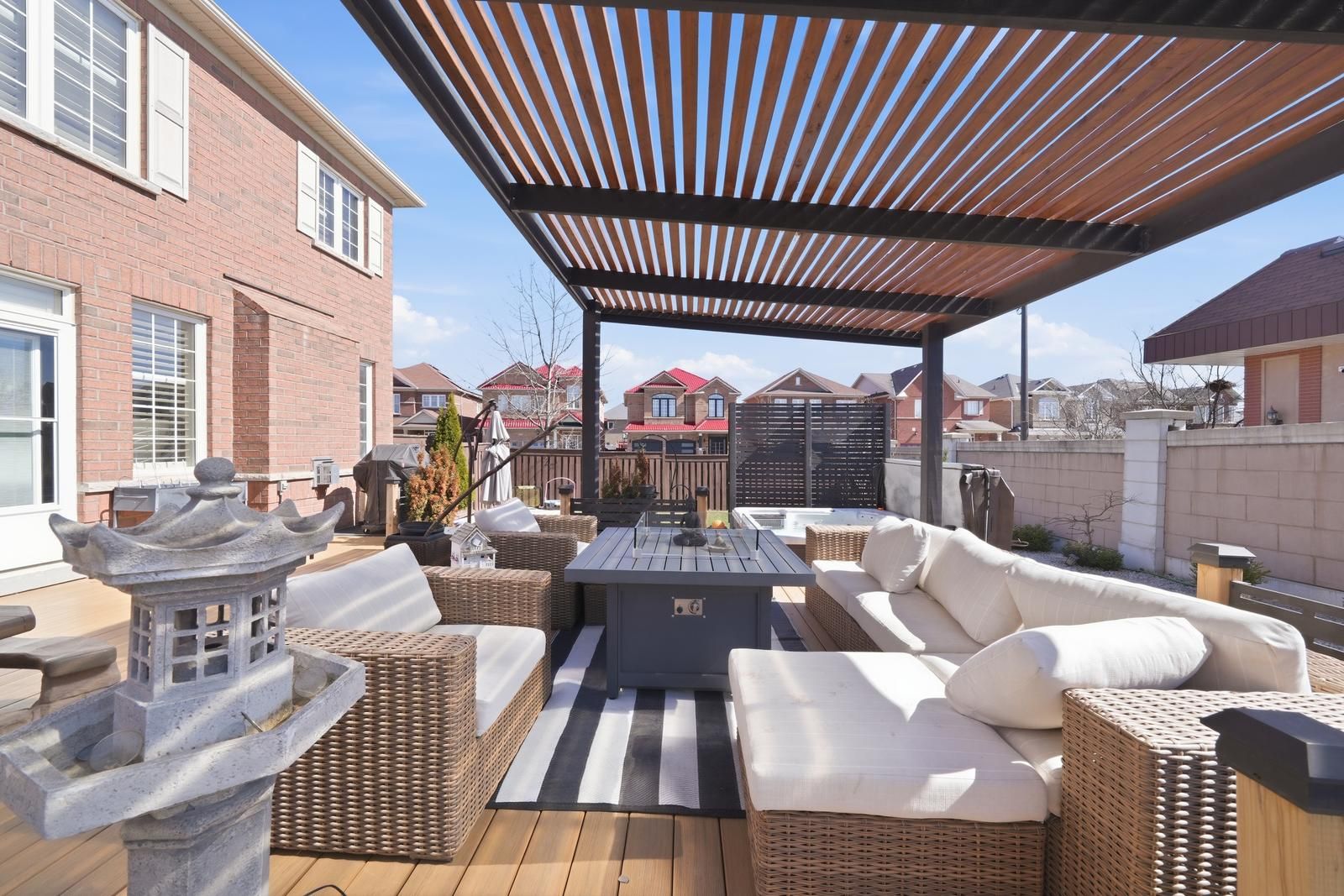 • Private backyard retreat featuring a large deck and relaxing hot tub.