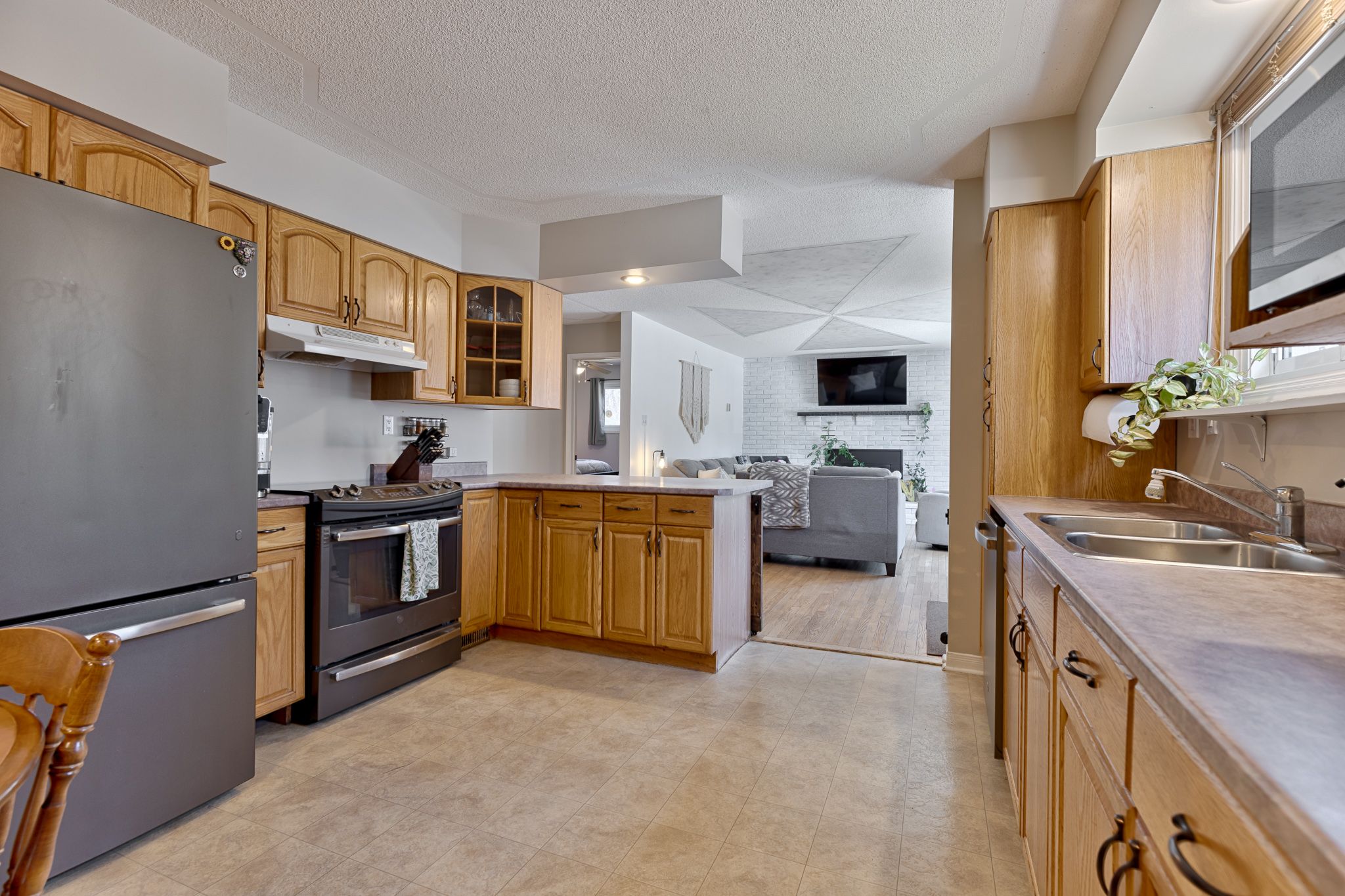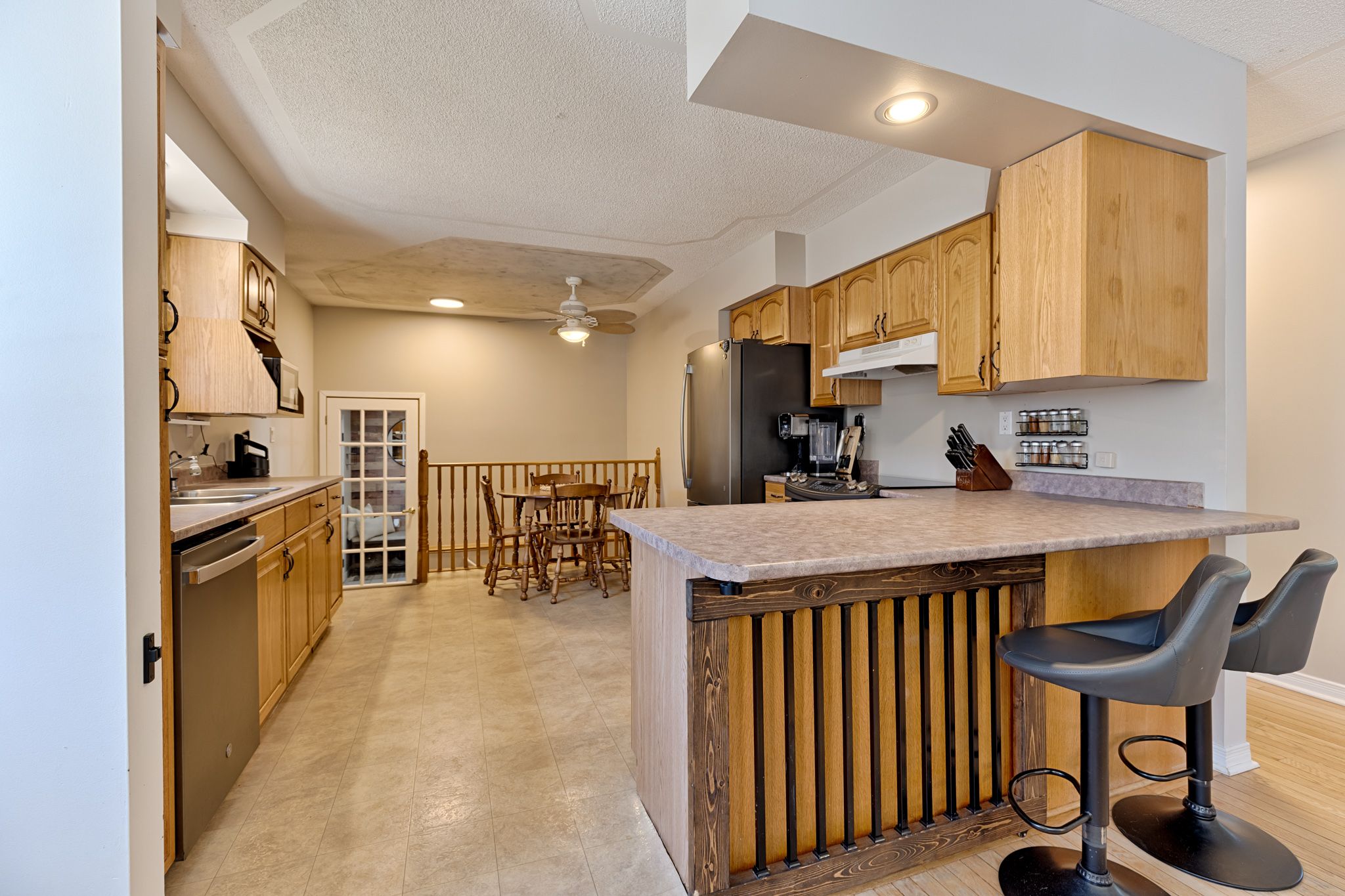 • Large eat-in kitchen with oak cabinetry and convenient breakfast bar for entertaining.
