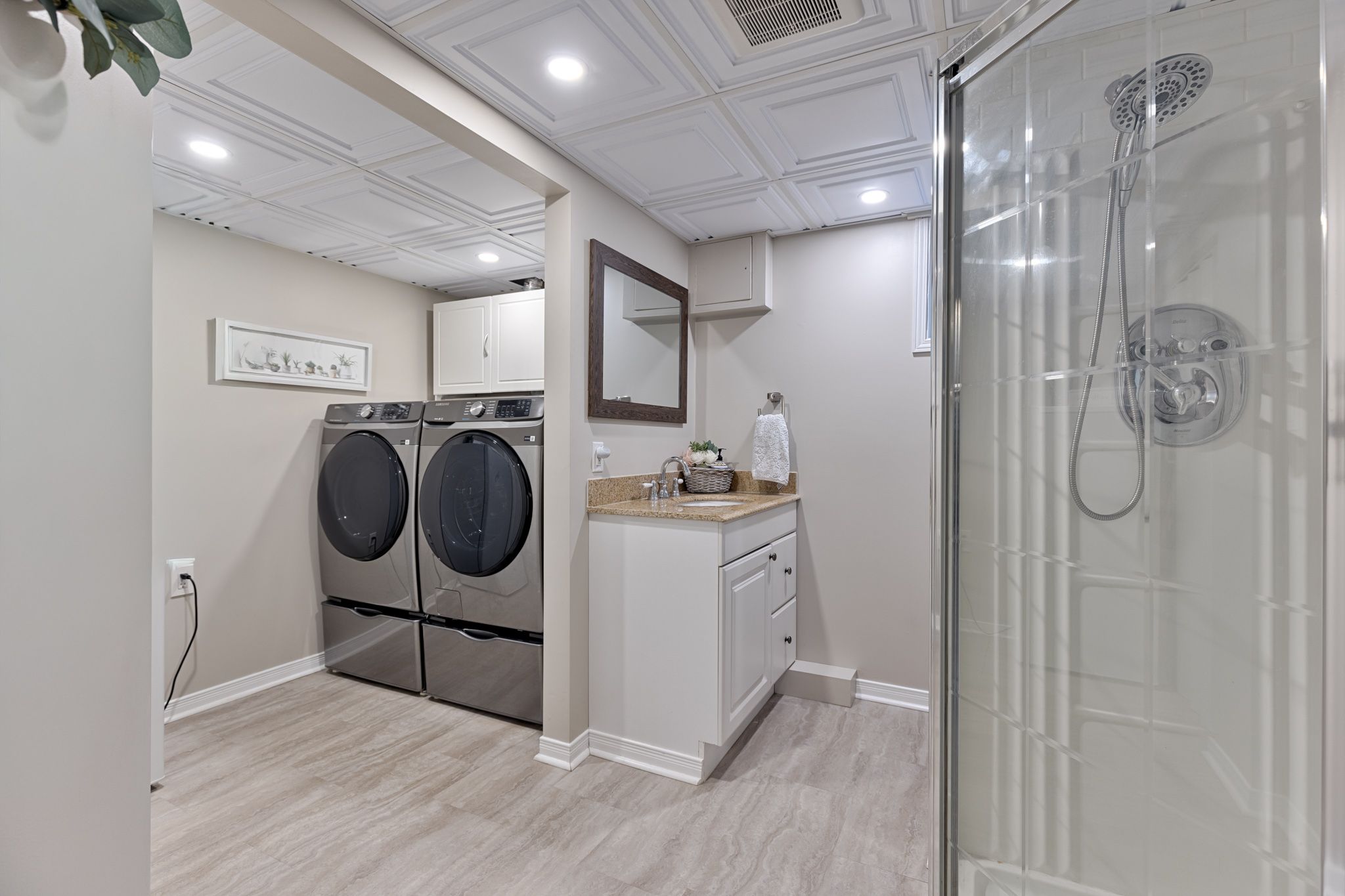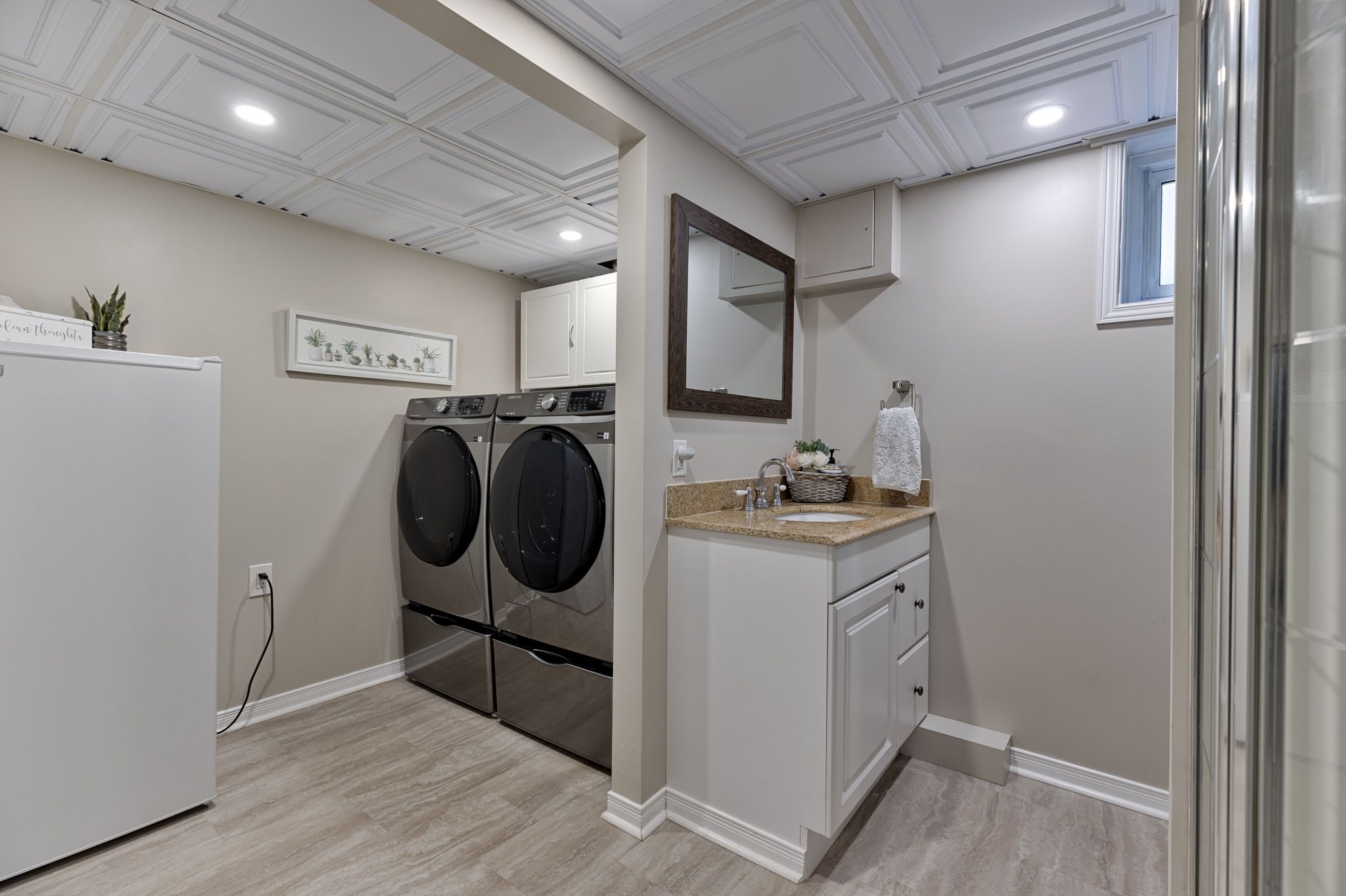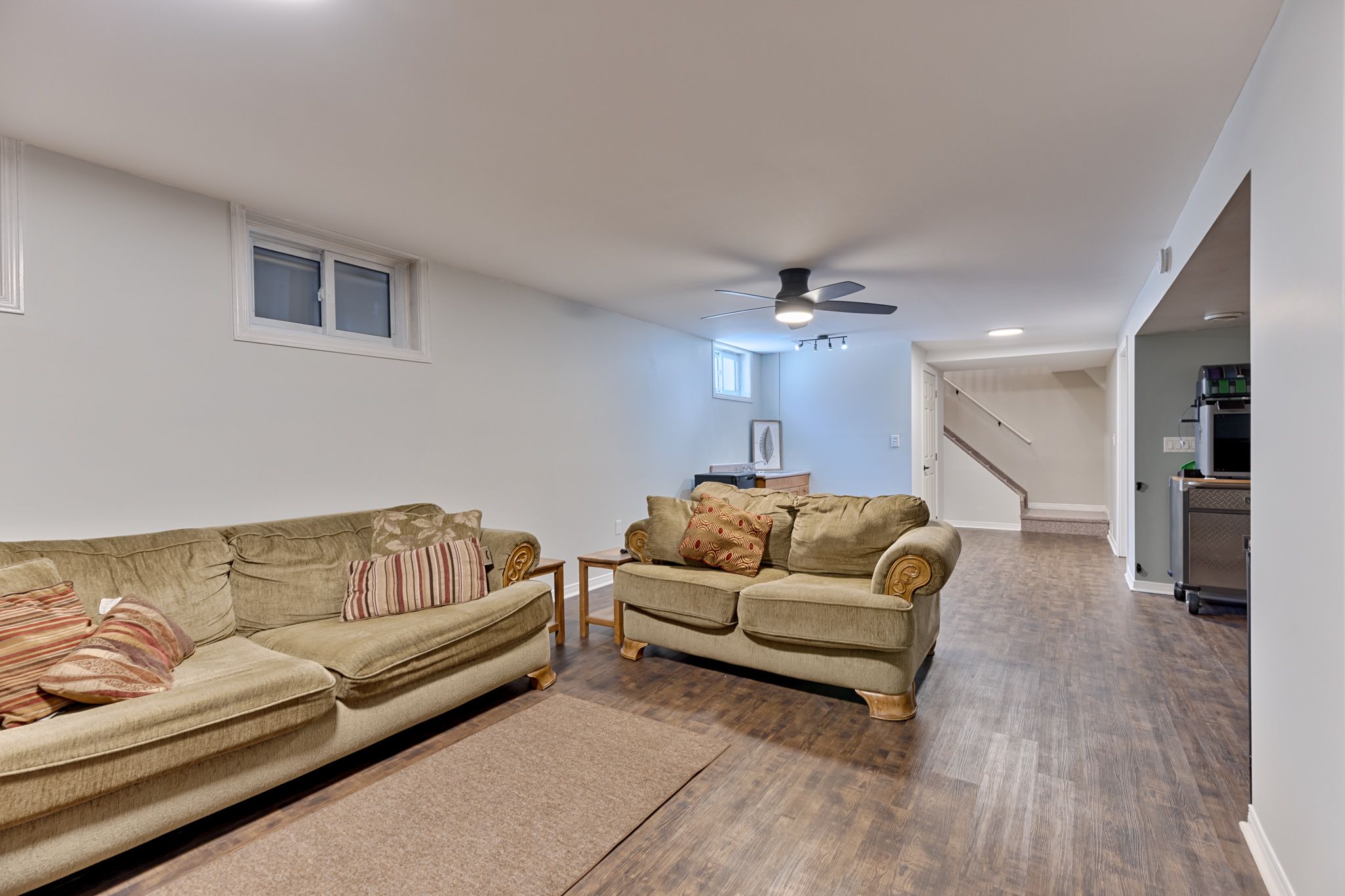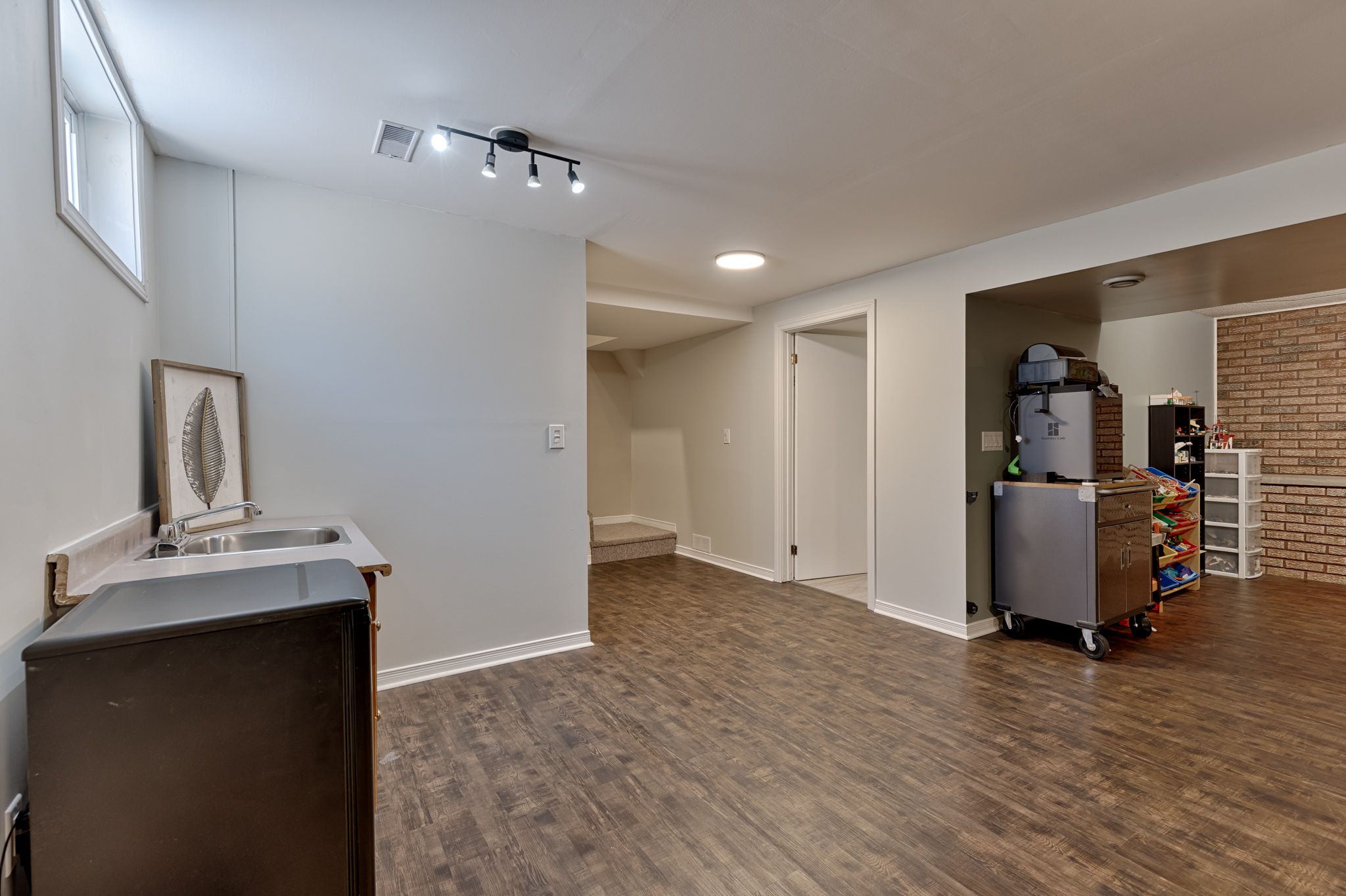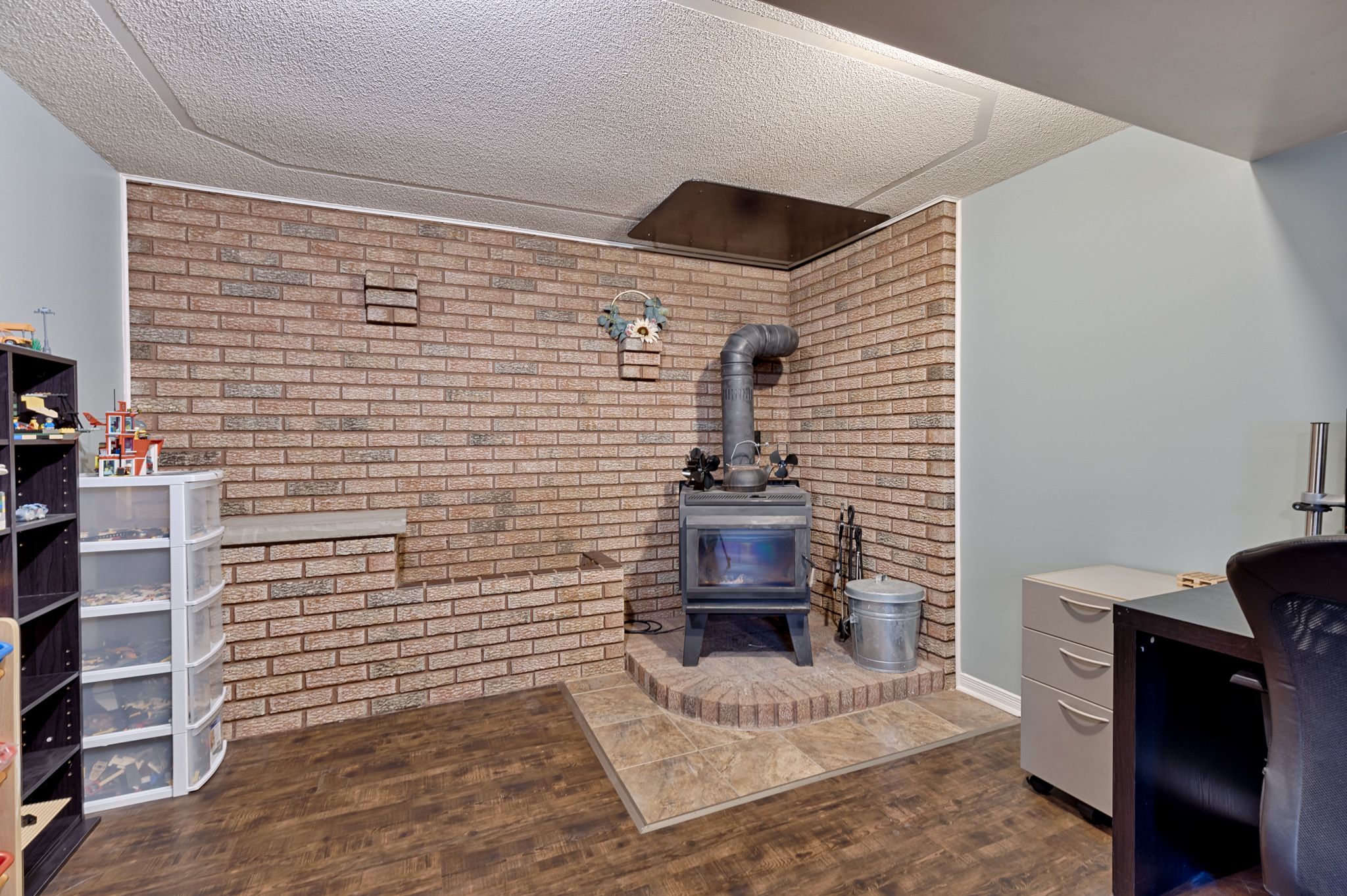 • Expansive recreation room downstairs with woodstove and functional mudroom entry.