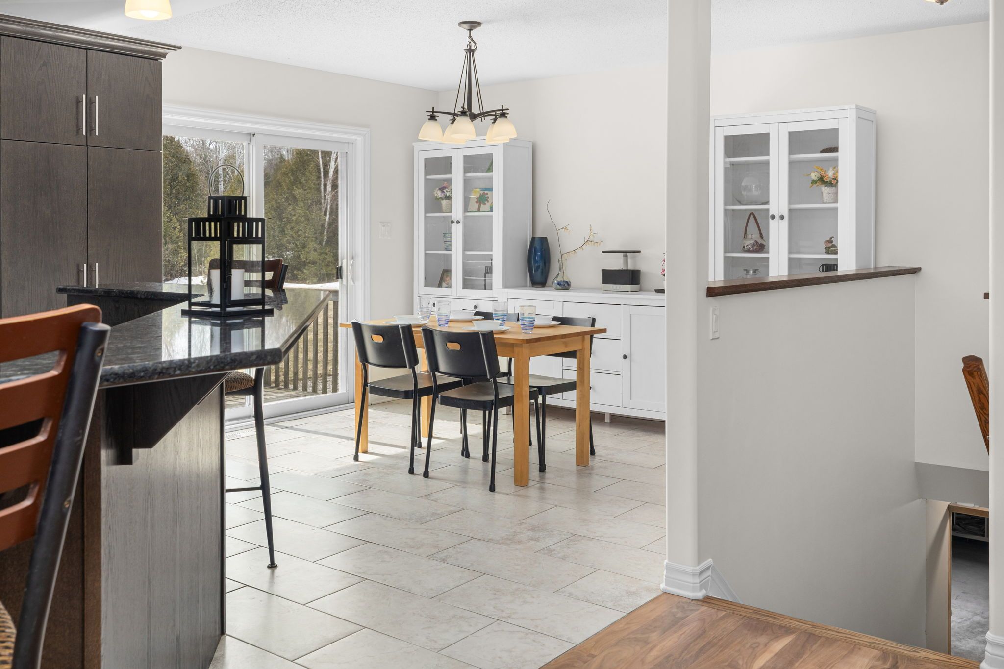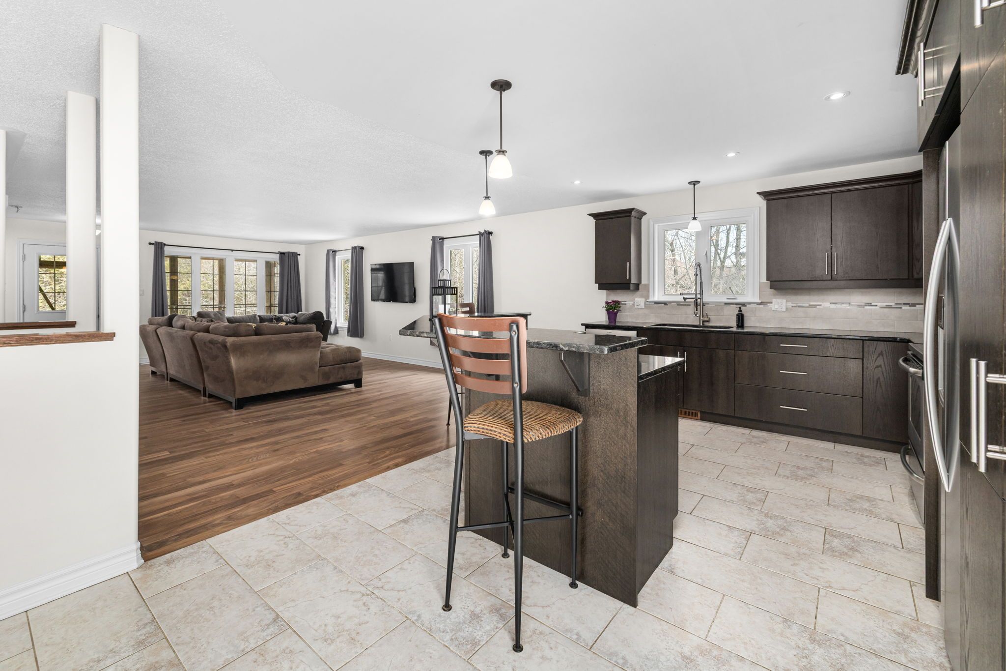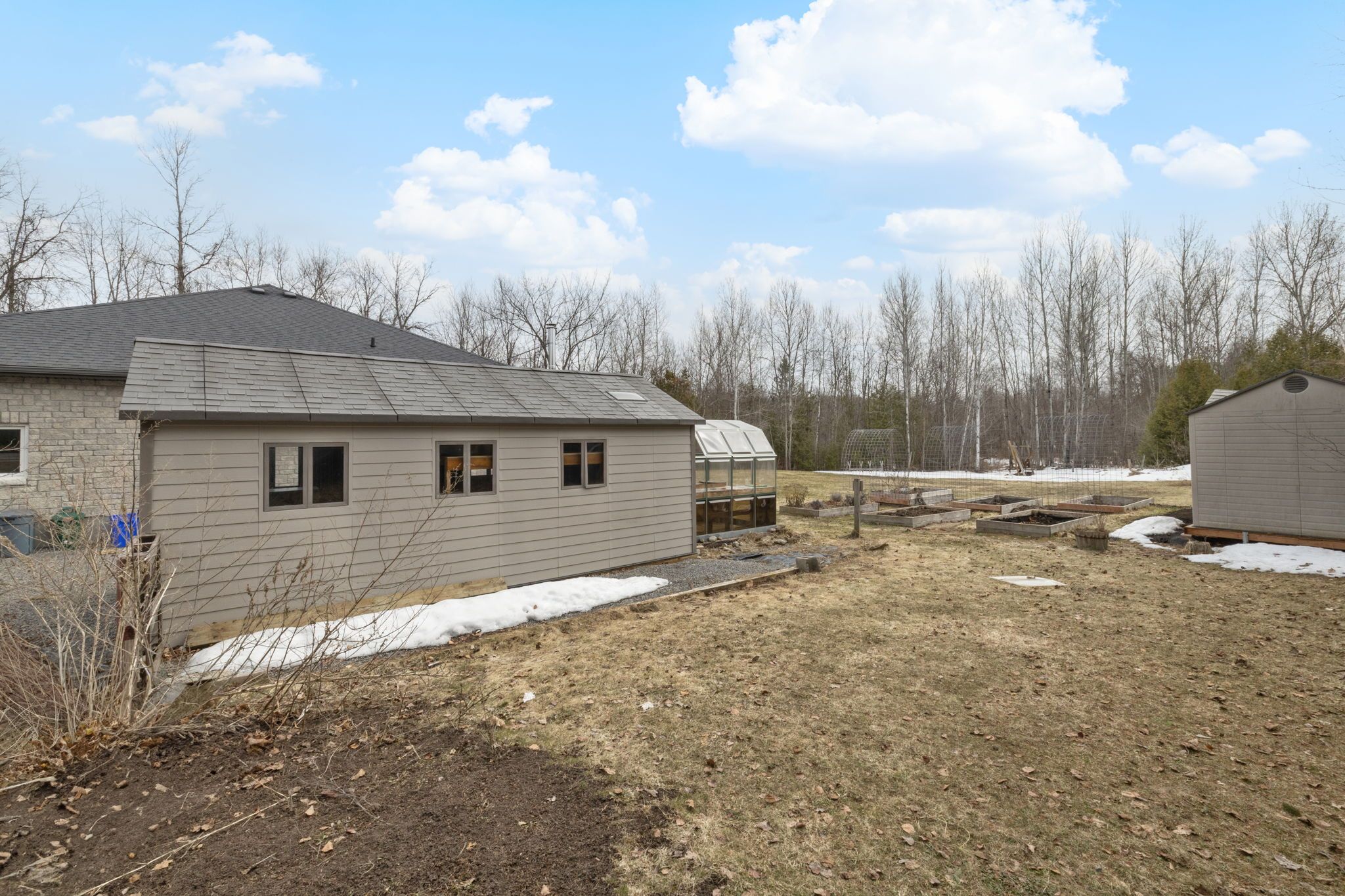 Welcome to this charming detached stone bungalow nestled on a private 2. 3 acre lot in the highly sought after victoria park community. Offering privacy with no rear neighbours, this property provides a peaceful retreat while still being conveniently located to all the kemptville amenities. Step inside through the enclosed front porch into an inviting open concept main floor, featuring a blend of tile and recently refinished hardwood flooring throughout. The spacious living room is filled with natural light, creating a warm and welcoming atmosphere perfect for everyday living and entertaining. The kitchen is thoughtfully designed with stainless steel appliances, granite countertops, a tile backsplash, and wood cabinetry, offering both functionality and style. The main level also includes a well-appointed 4 piece bathroom and a laundry room with direct access to the double car garage for added convenience. The primary bedroom offers a peaceful and private space, complete with a walk-in closet and a 4 piece ensuite featuring a relaxing soaker tub. Two additional well-sized bedrooms provide ample space for family, guests, or a home office. The lower level remains unfinished, offering excellent potential for customization. It includes a wood stove and is already roughed in for a future bedroom and bathroom ideal for expanding your living space to suit your needs. Outside, enjoy the beautifully treed backyard creating a peaceful, natural backdrop featuring a deck with an attached dog kennel, perfect for pet owners, fireplace, and garden area.