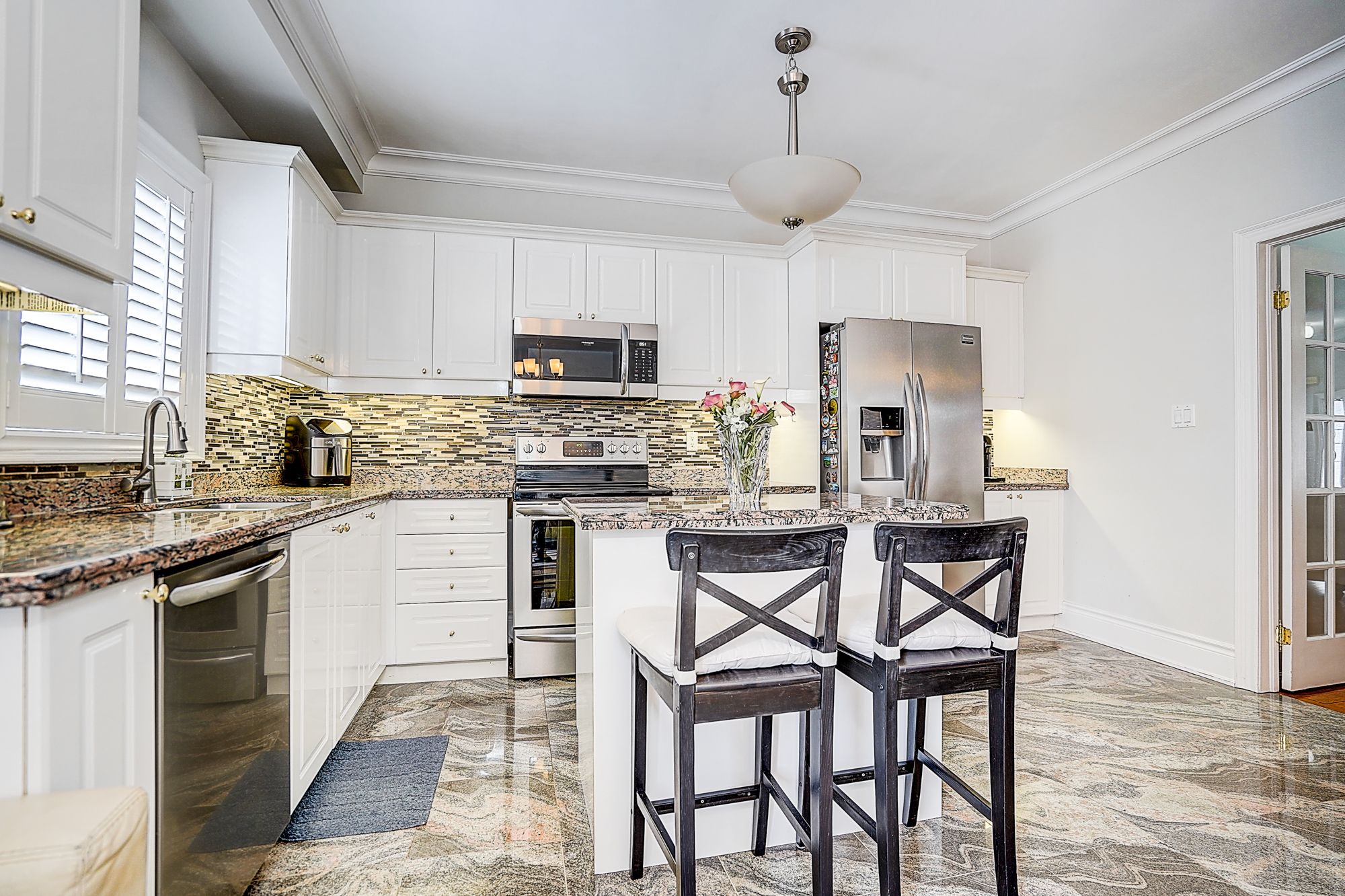 Beautiful 3 bedroom (can easily be converted to 4 bedroom) home in desirable oak ridges lake wilcox community. Main floor open concept with large eat-in kitchen with granite counters, granite floors, california shutters and walk out to large deck. Oak stairs with iron pickets. Family room on second floor with gas fireplace with oak mantel. Master bedroom has walk in closet with organizer and 4 piece ensuite. Finished basement with rec room, finished laundry room and kitchen, separate entrance to the basement through garage.