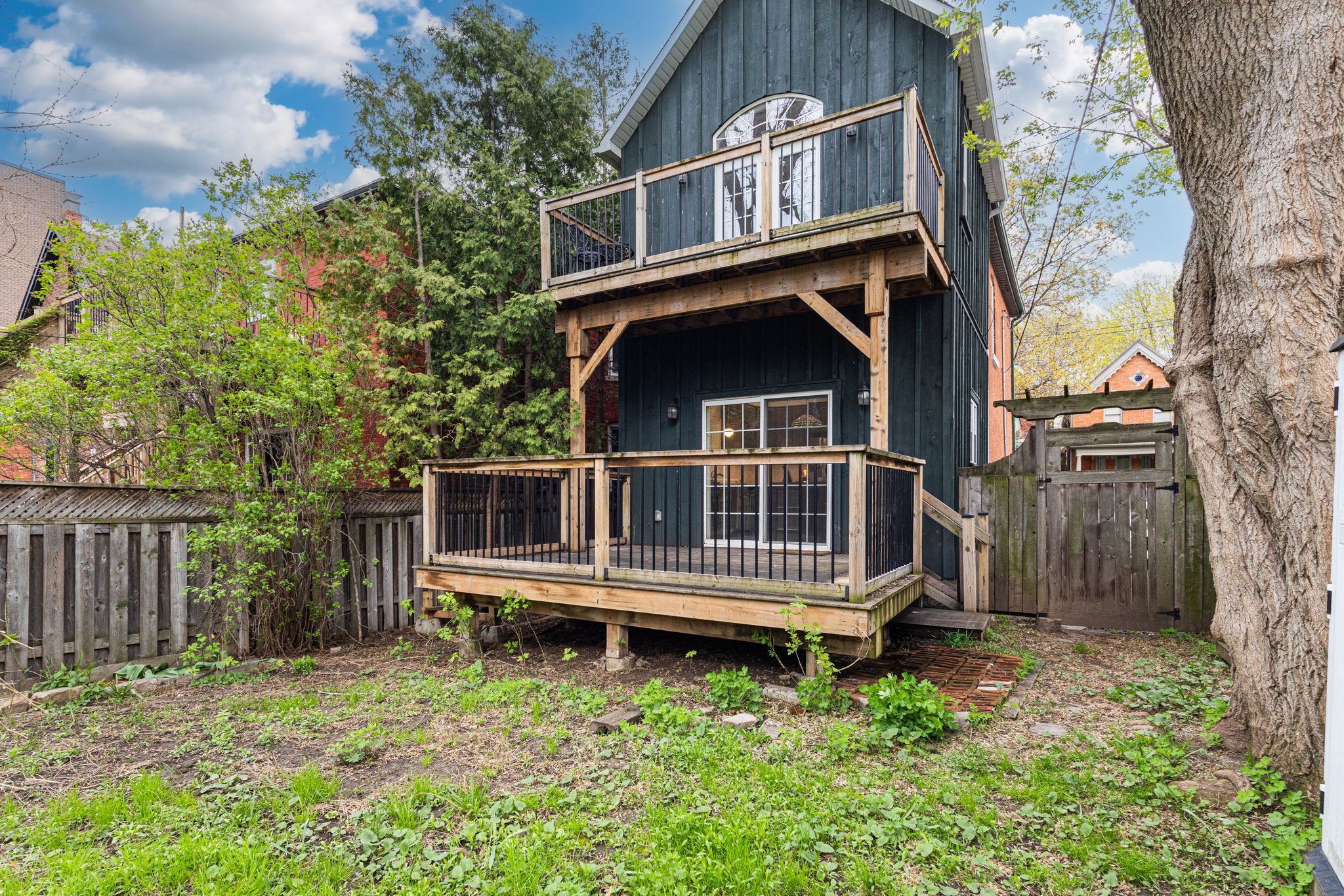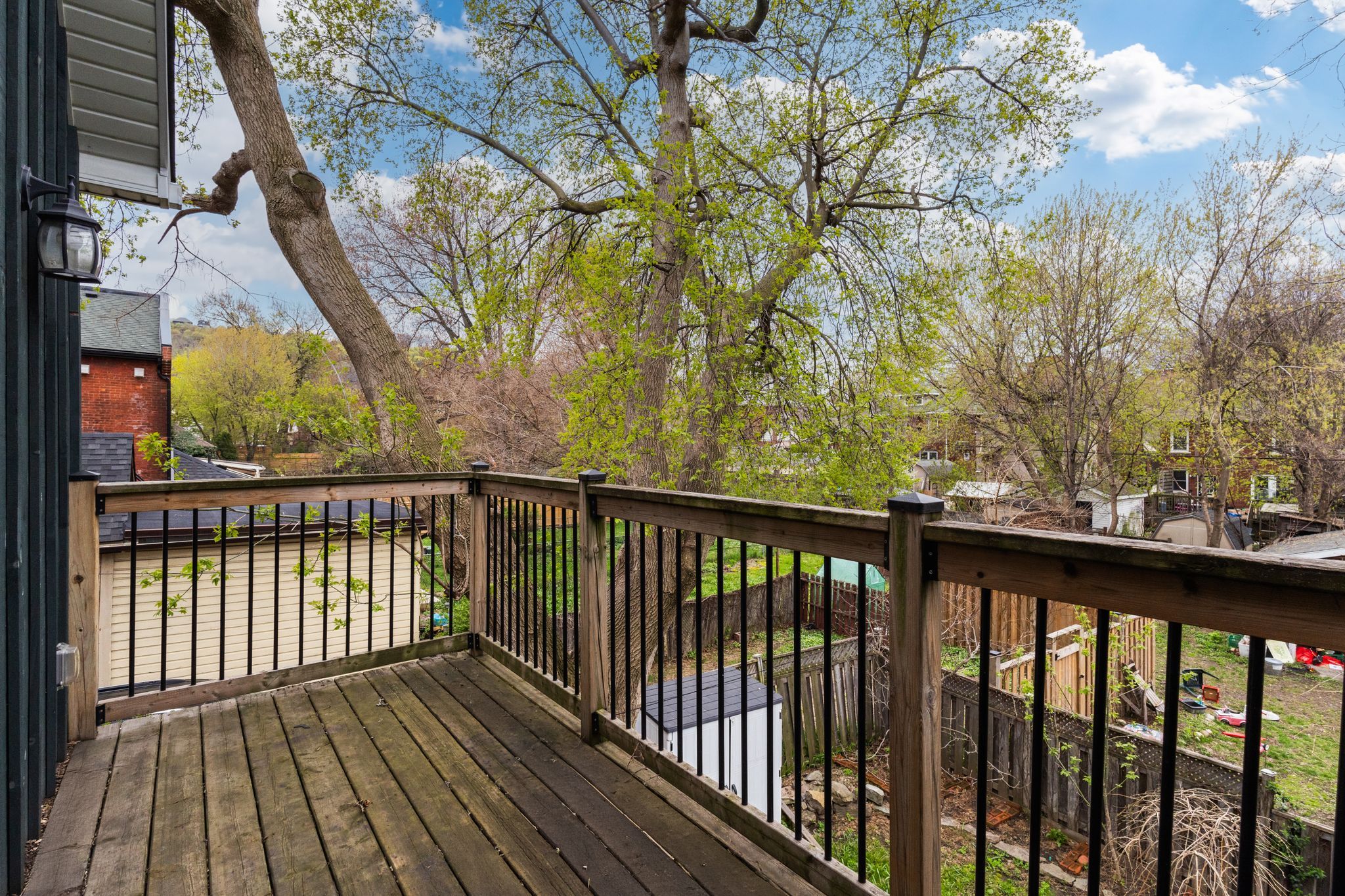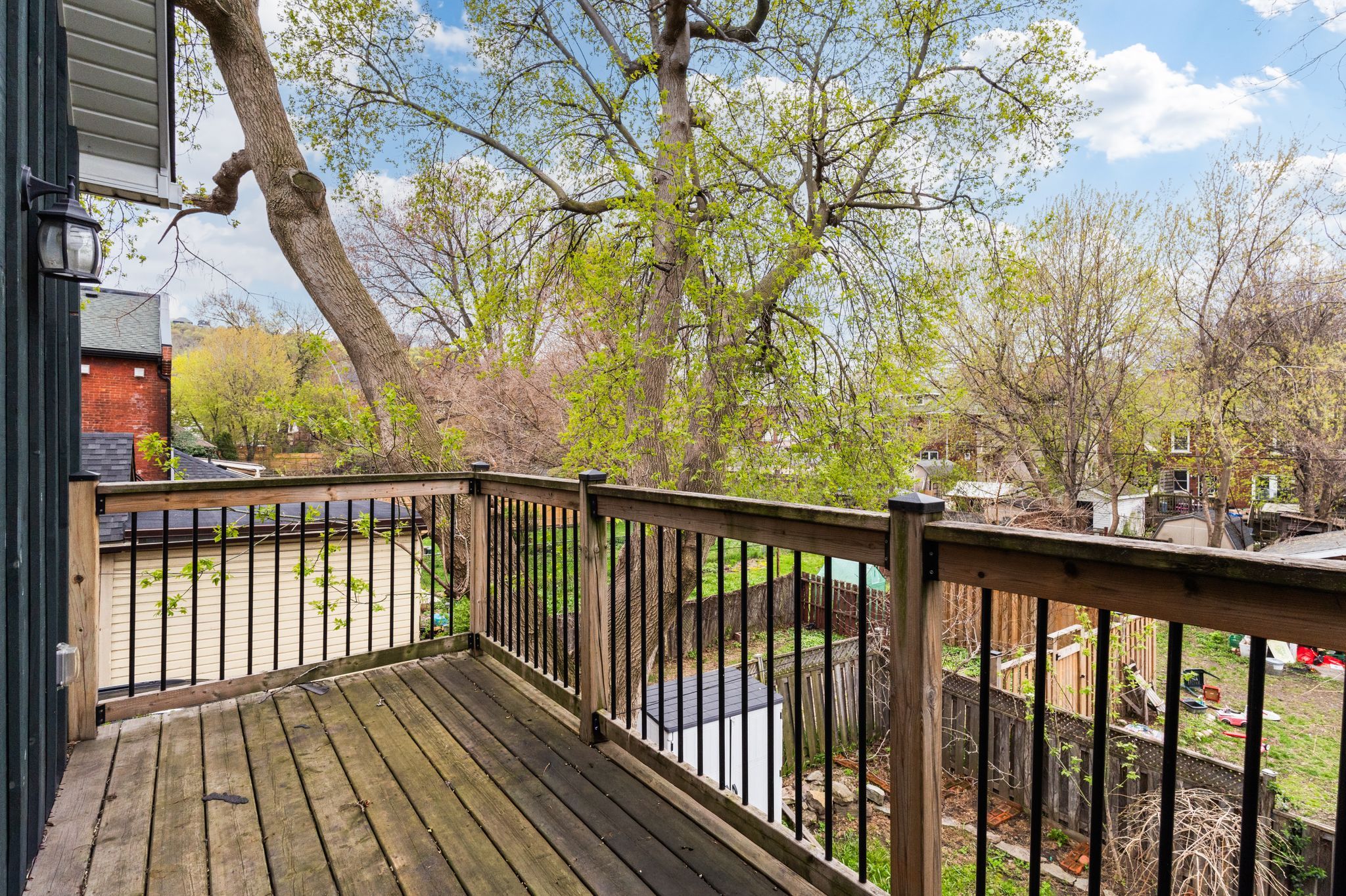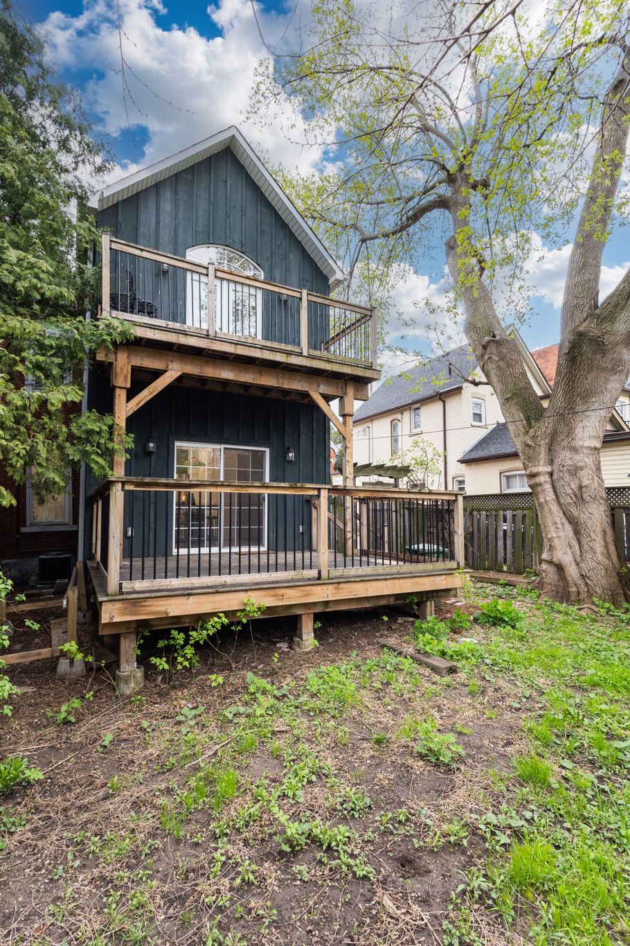 Circa 1880 charm on a beautiful tree-lined street-this detached brick home blends character with thoughtful updates throughout. Mostly renovated within the last 10 years, it offers high ceilings, spacious principal rooms, and a layout that just works. The main floor features a separate living and dining room, a convenient main floor bathroom, and a newer ikea kitchen complete with island, pantry storage, and gas stove. Walk out to a large deck overlooking the backyard-perfect for relaxing or entertaining. Upstairs, the impressive primary suite feels like a retreat, with a walk-in closet, vaulted ceiling, and walkout to a private balcony. The spa-like ensuite includes a soaker tub, separate shower, double sinks, and in-suite laundry. A second oversized bedroom offers flexibility for additional living space or a home office. Updates include roof (2025), on-demand hot water heater (2025), copper water line with uv water treatment, and a newer furnace and a/c. No carpet throughout and plenty of pot lights add to the modern feel. A rare opportunity to own a character home with major updates already done-just move in and enjoy.