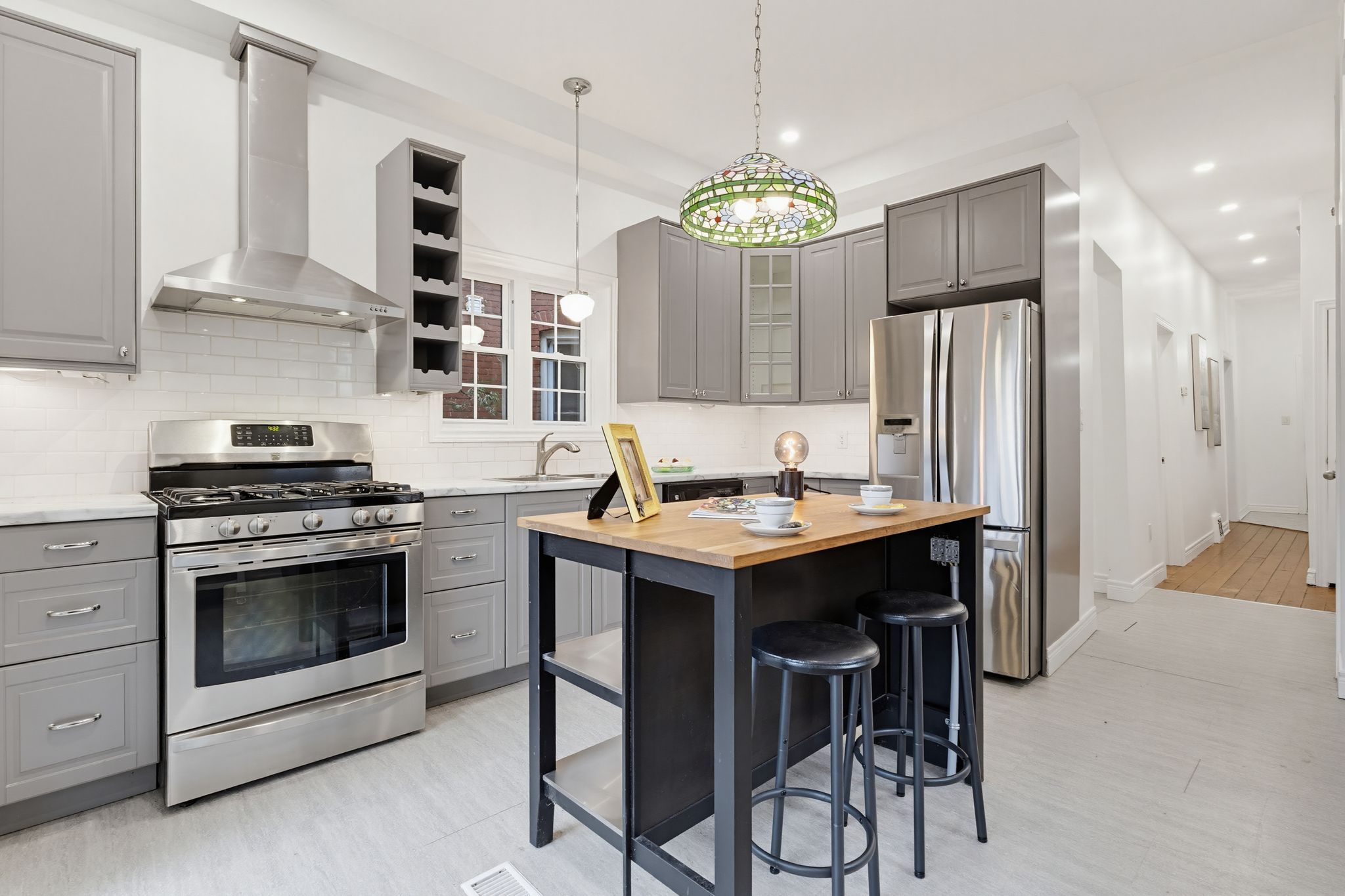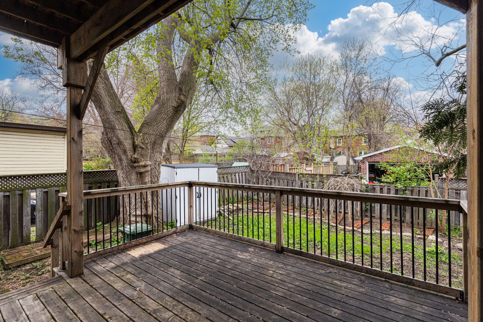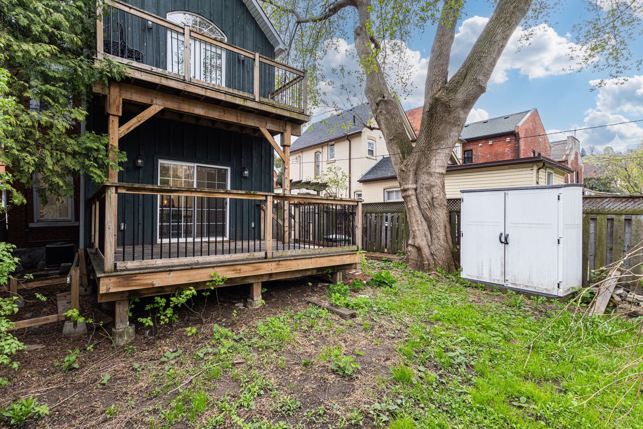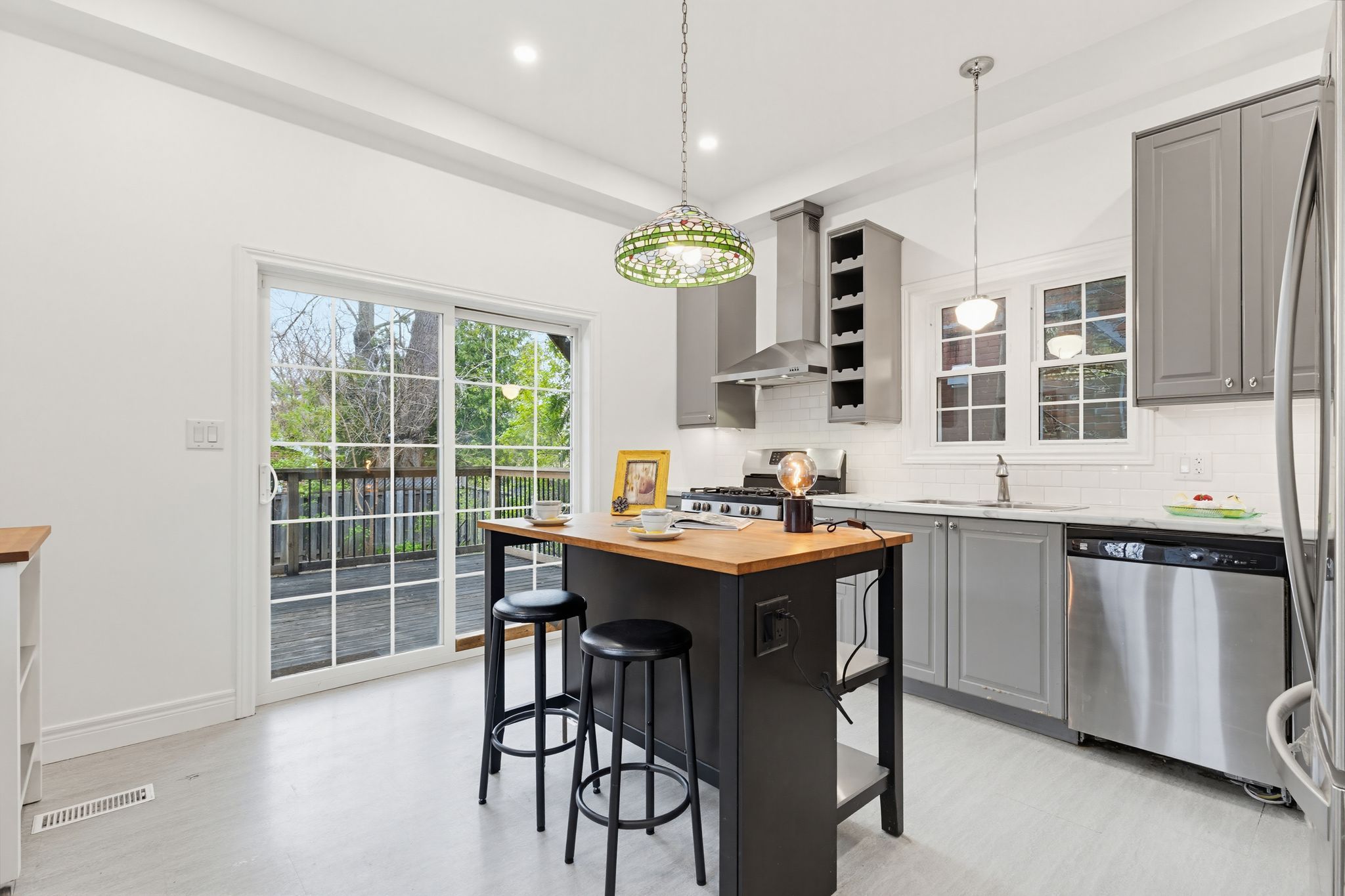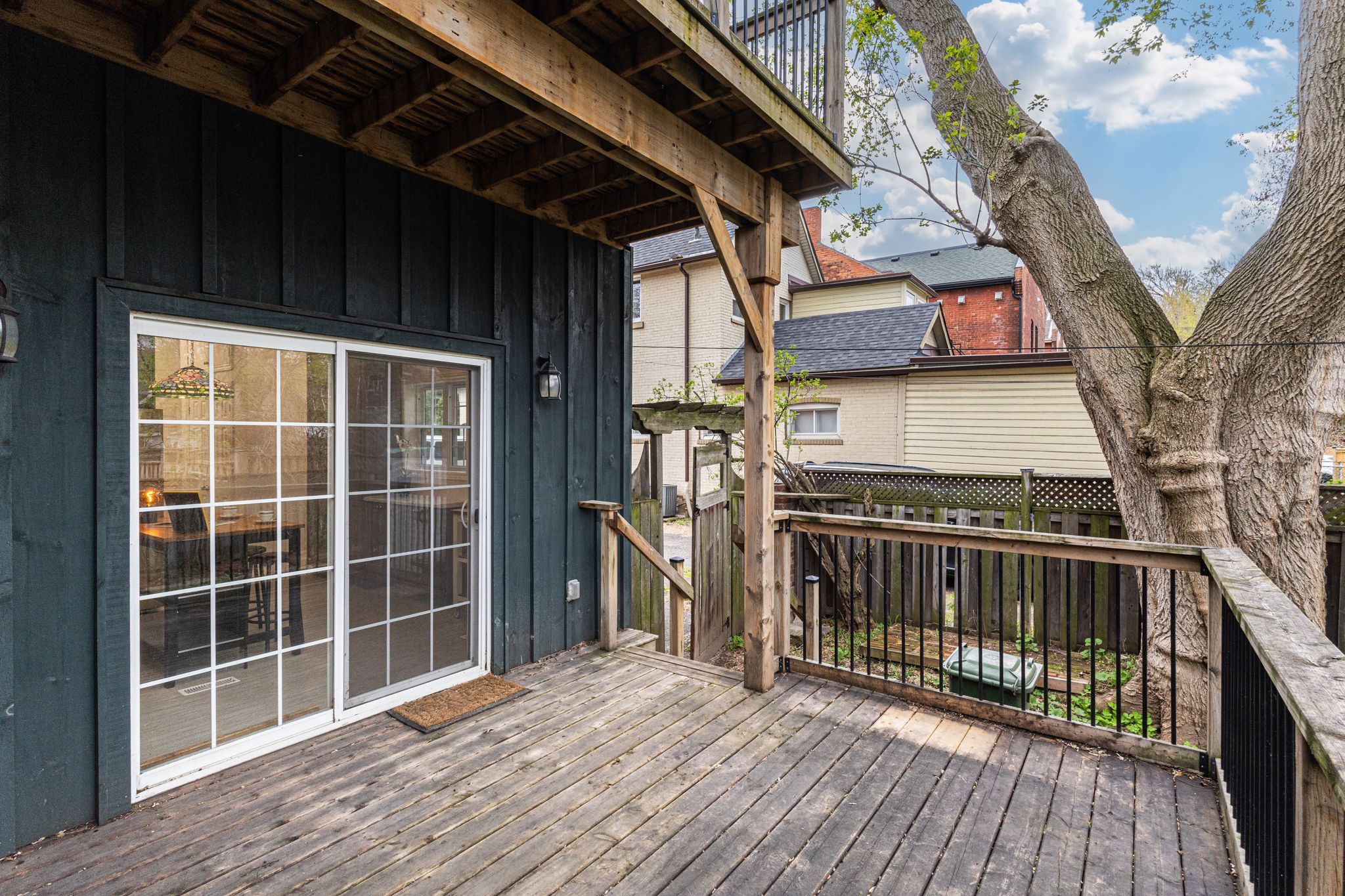 Circa 1880 charm on a beautiful tree-lined street-this detached brick home blends character with thoughtful updates throughout. Mostly renovated within the last 10 years, it offers high ceilings, spacious principal rooms, and a layout that just works. The main floor features a separate living and dining room, a convenient main floor bathroom, and a newer ikea kitchen complete with island, pantry storage, and gas stove. Walk out to a large deck overlooking the backyard-perfect for relaxing or entertaining. Upstairs, the impressive primary suite feels like a retreat, with a walk-in closet, vaulted ceiling, and walkout to a private balcony. The spa-like ensuite includes a soaker tub, separate shower, double sinks, and in-suite laundry. A second oversized bedroom offers flexibility for additional living space or a home office. Updates include roof (2025), on-demand hot water heater (2025), copper water line with uv water treatment, and a newer furnace and a/c. No carpet throughout and plenty of pot lights add to the modern feel. A rare opportunity to own a character home with major updates already done-just move in and enjoy.
