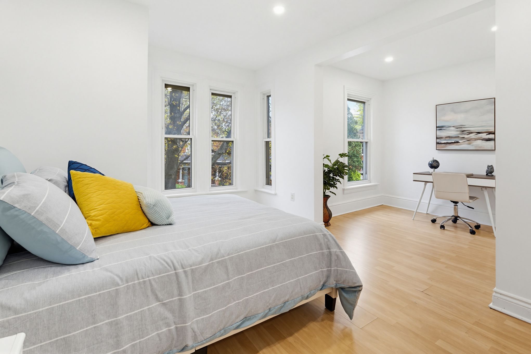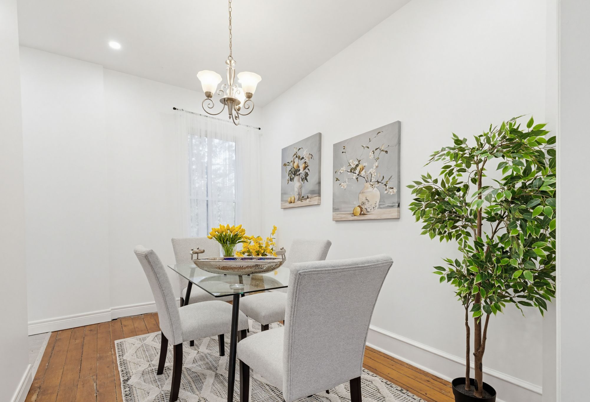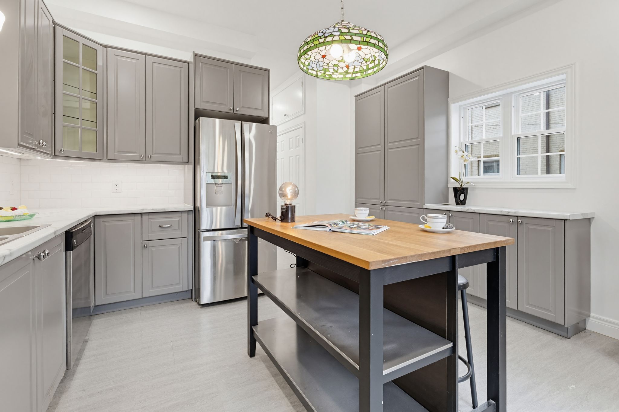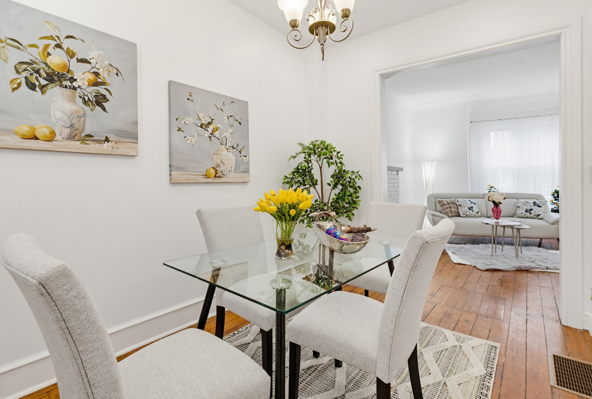 • Spacious layout with high ceilings and separate living and dining rooms.
