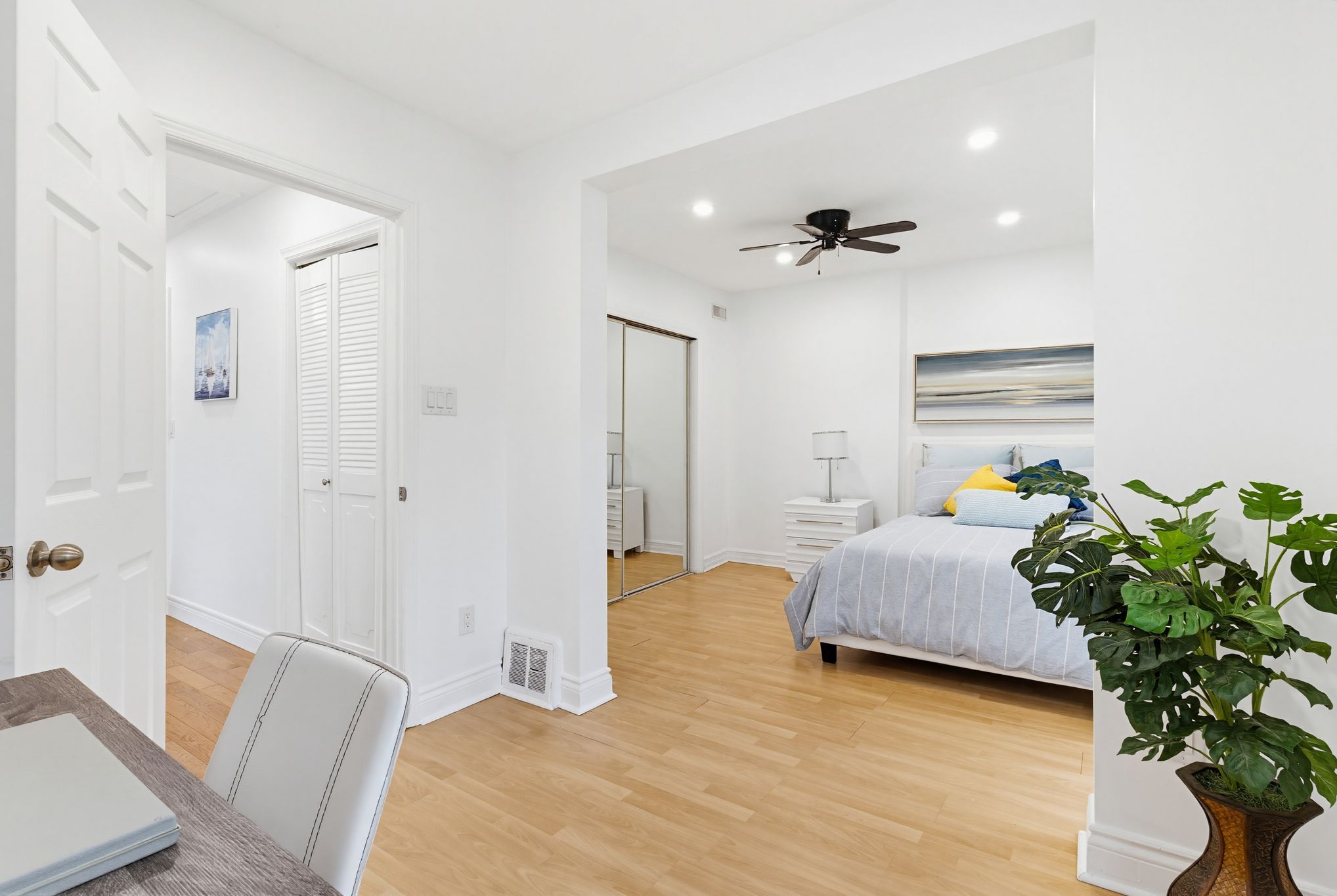 • Impressive primary suite with a walk-in closet and private balcony.
