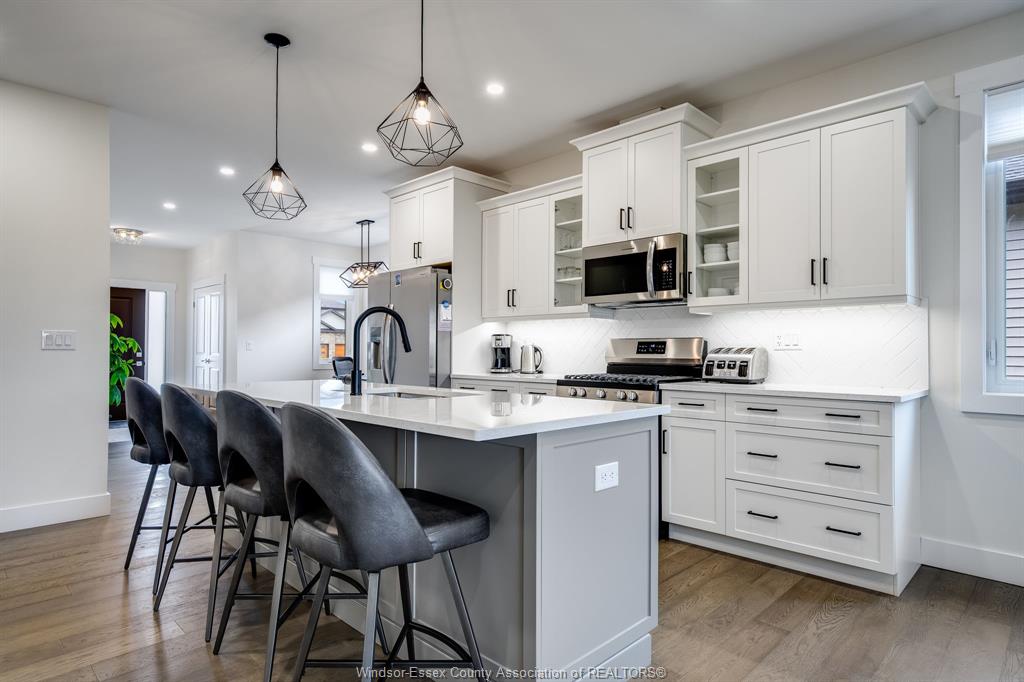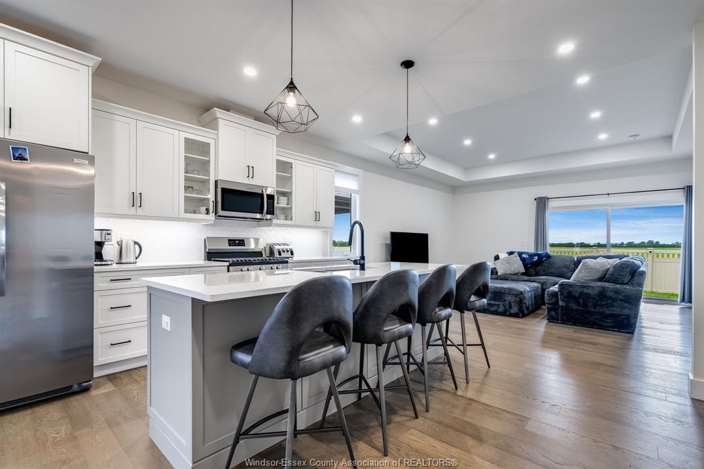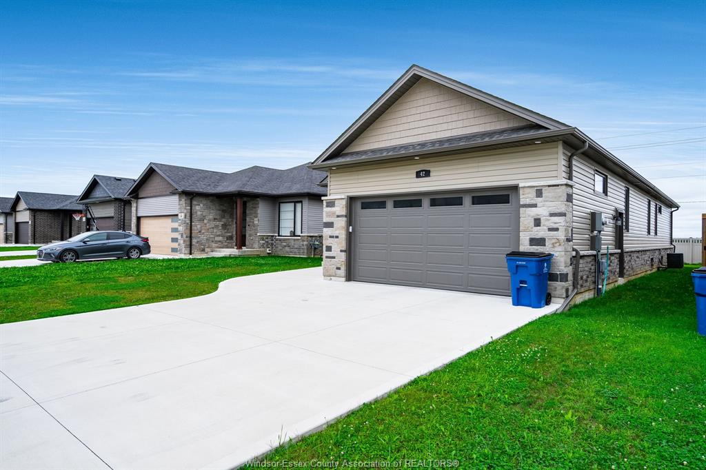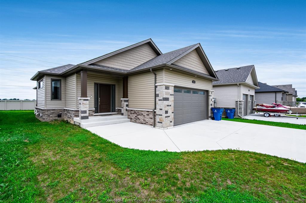 Step into this beautifully finished 2023 custom-built ranch, offering 4 bedrooms and 3 full baths with over 2,000 sq. Ft. Of elegant, move-in-ready living space. Designed with style and comfort in mind, this home blends modern finishes, functional layout, and careful craftsmanship throughout. The moment you walk in, you’ll love the open-concept main floor, featuring a bright dining area, chef-inspired kitchen with stone countertops and a center island, all overlooking the spacious living room with tray ceilings. Perfect for entertaining or everyday living, this space feels both inviting and refined. The primary suite offers a quiet retreat at the rear of the home, complete with a walk-in closet and spa-like ensuite. A second bedroom, full bath, and a large mudroom off the garage provide added functionality. With main-floor laundry, you’ll enjoy the ease of true one-floor living. Downstairs, the fully finished lower level expands your living space with a bright family room, two additional bedrooms, and a third full bath — ideal for guests, hobbies, or teens. Outside, relax under your covered back patio and enjoy the peaceful views with no rear neighbours. The attached two-car garage and double-wide concrete driveway add convenience and curb appeal. With tasteful design choices, neutral tones, and upscale finishes, this property offers all the benefits of a brand-new home — without the wait or hassle of building. Move right in and start living your next chapter in comfort and style.