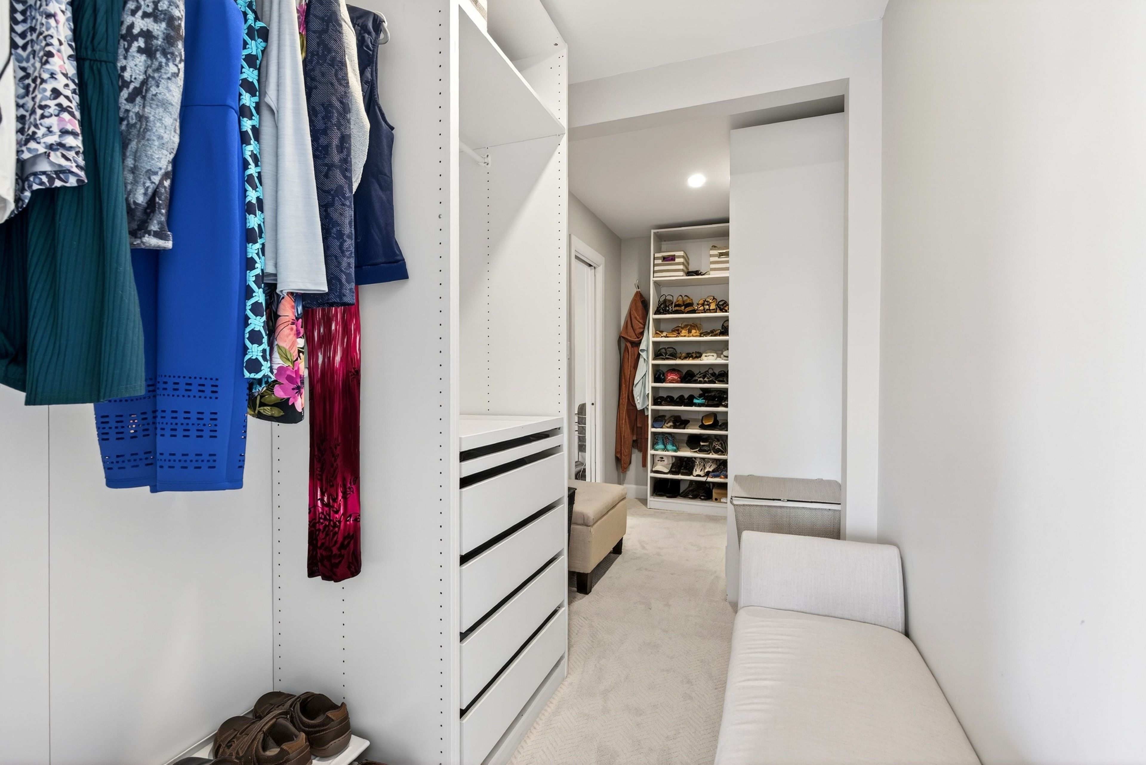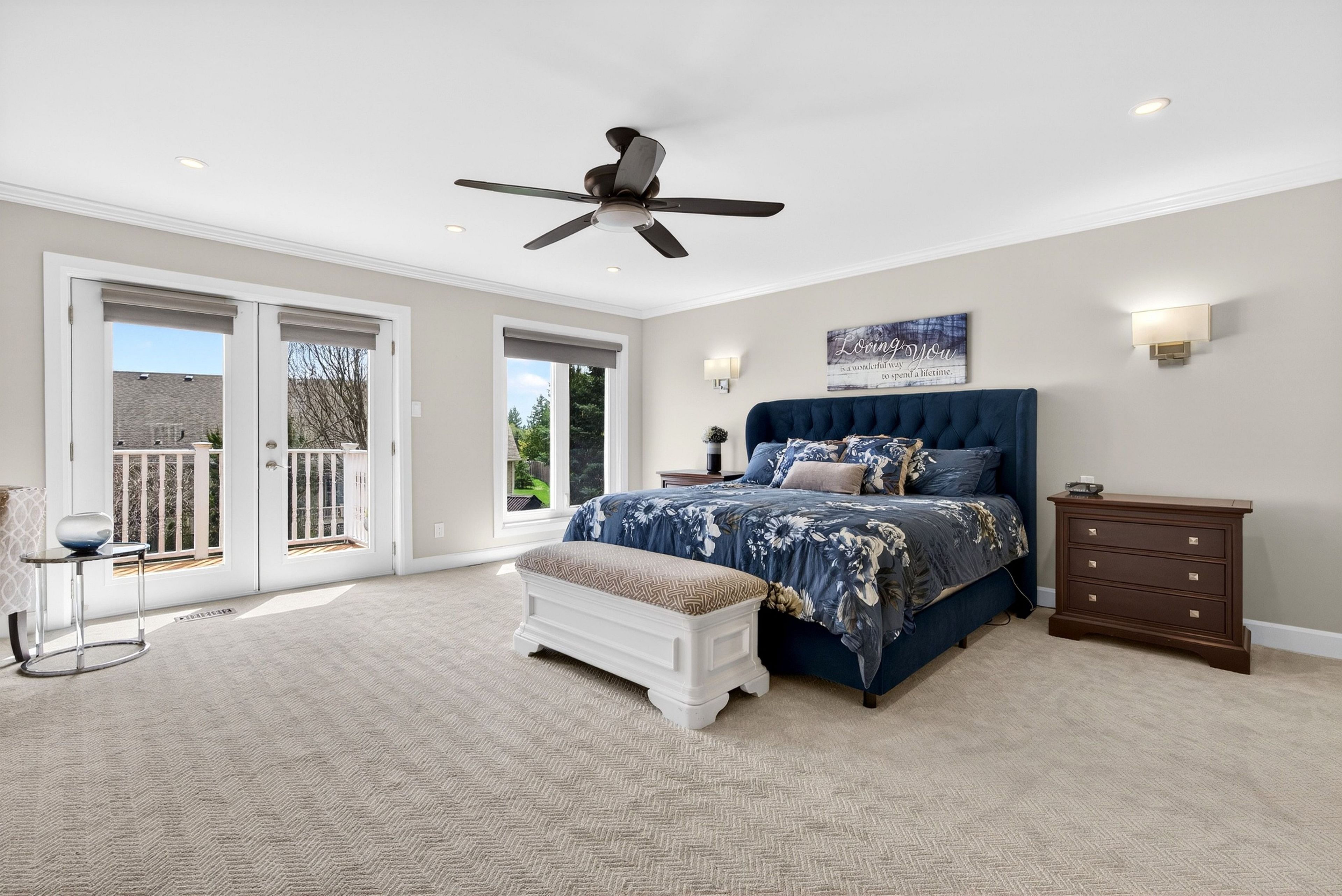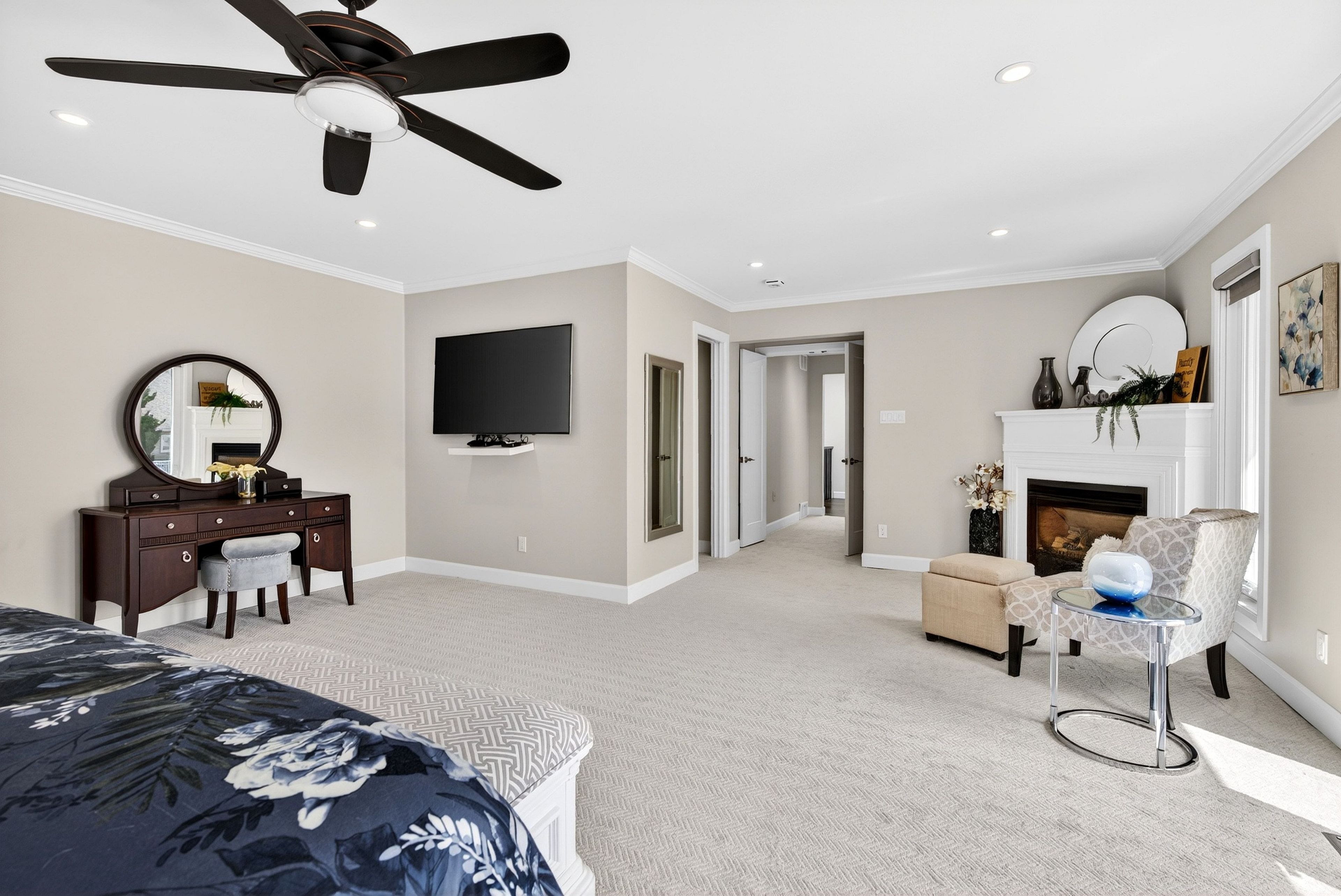 • Spacious primary retreat with gas fireplace and private balcony overlooking the yard.