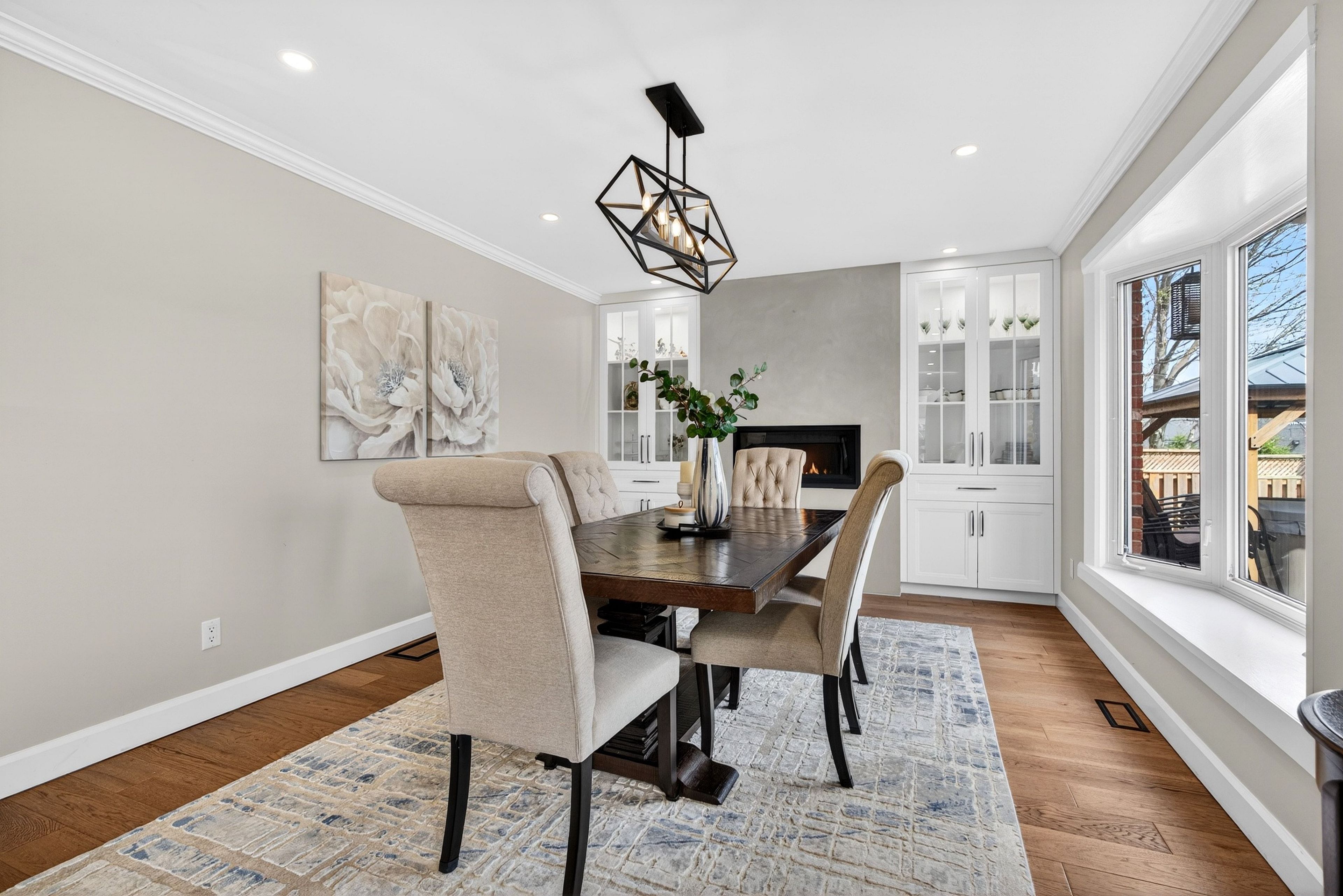 Welcome to 42 farewell crest in smithville, offering a beautifully updated main floor with a bright, open-concept layout. Featuring wide-plank hardwood flooring and pot lighting throughout, the custom kitchen is the focal point with quartz countertops, extensive dual colour cabinetry , built-in appliances, and a large centre island with seating. It flows seamlessly into the family room and dining area, highlighted by a sleek gas fireplace and large windows overlooking the backyard. A separate formal dining room adds an elegant entertaining space, while a large home office and functional mudroom with built-ins and garage access completes the level. The second level offers a well-designed layout, highlighted by a stunning primary retreat with a gas fireplace, sitting area, and walkout to a private updated balcony overlooking the yard. The on-trend ensuite features a glass walk-in shower with custom tilework, complemented by a walk-in closet. Additional bedrooms are generously sized with ample closet space, serviced by an updated main bath, plus the convenience of upper-level laundry. The fully finished lower level extends the living space with a bright rec room, second office/work area, additional bedroom, and updated 3-piece bathroom-ideal for guests or multi-generational living. Step outside to a private backyard oasis with an in-ground pool, expansive patio, and covered deck perfect for relaxing or entertaining. No cottage needed! Surrounded by mature landscaping for added privacy, plus a shed, sauna and separate hot tub retreat, this outdoor space truly elevates the home. So many features to see and appreciate including added protection for water/smoke/fire with omni-shield safety sensor system.