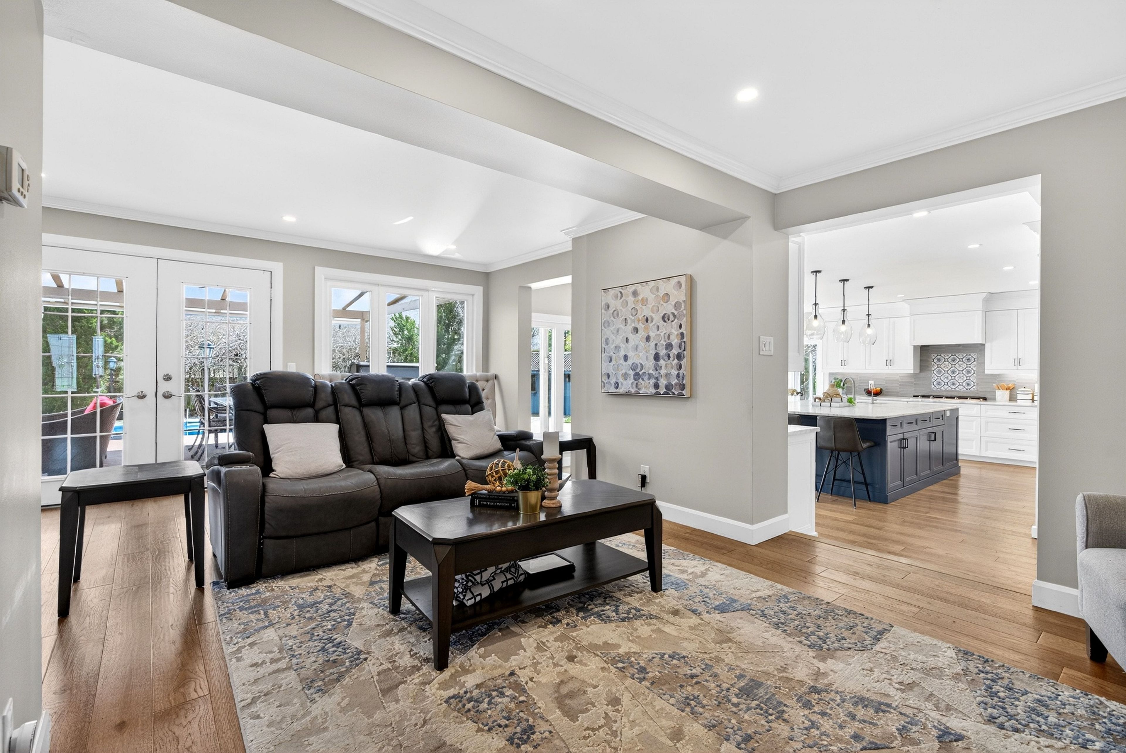 • Bright, open-concept main floor with hardwood flooring and pot lighting.
