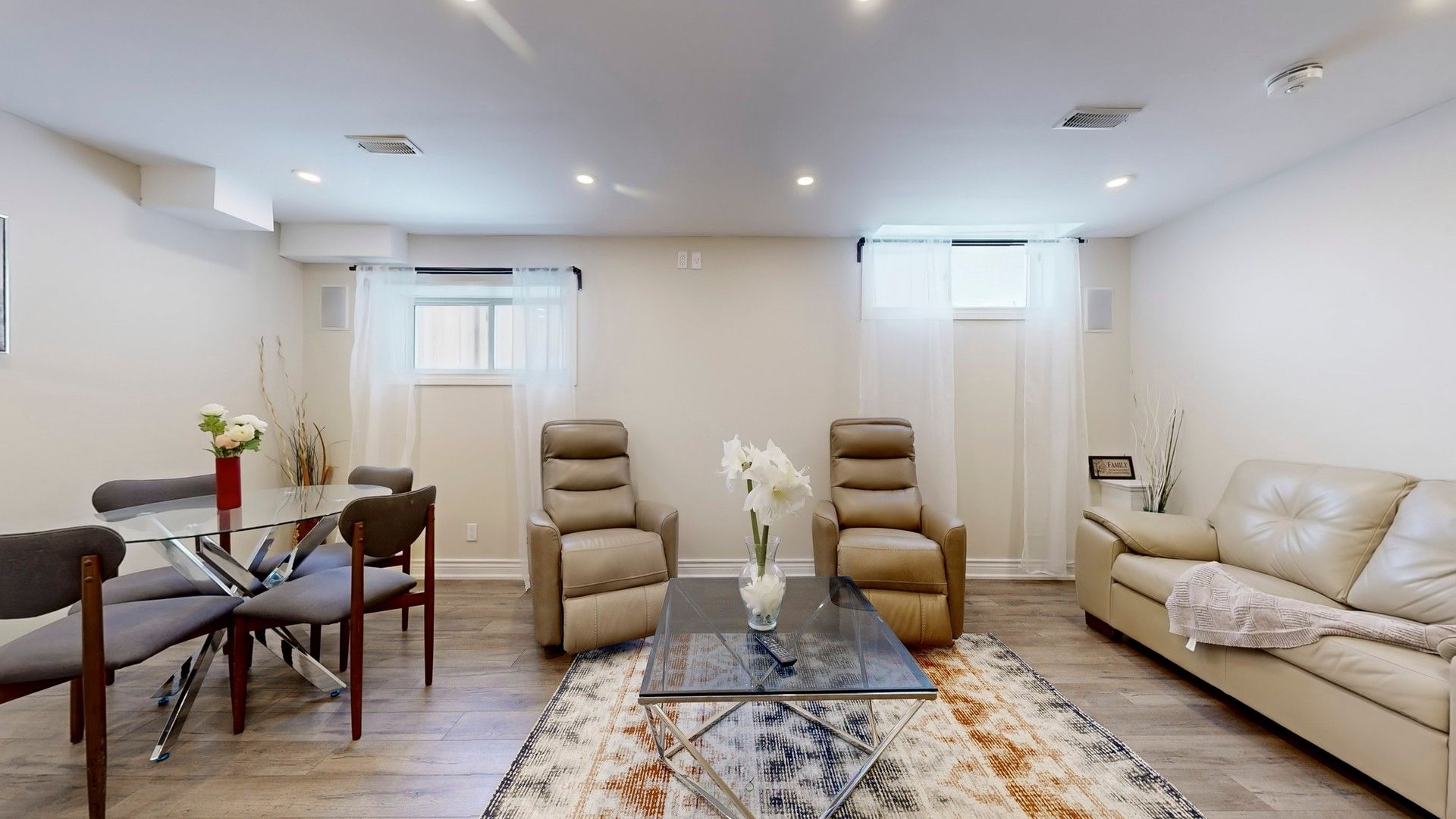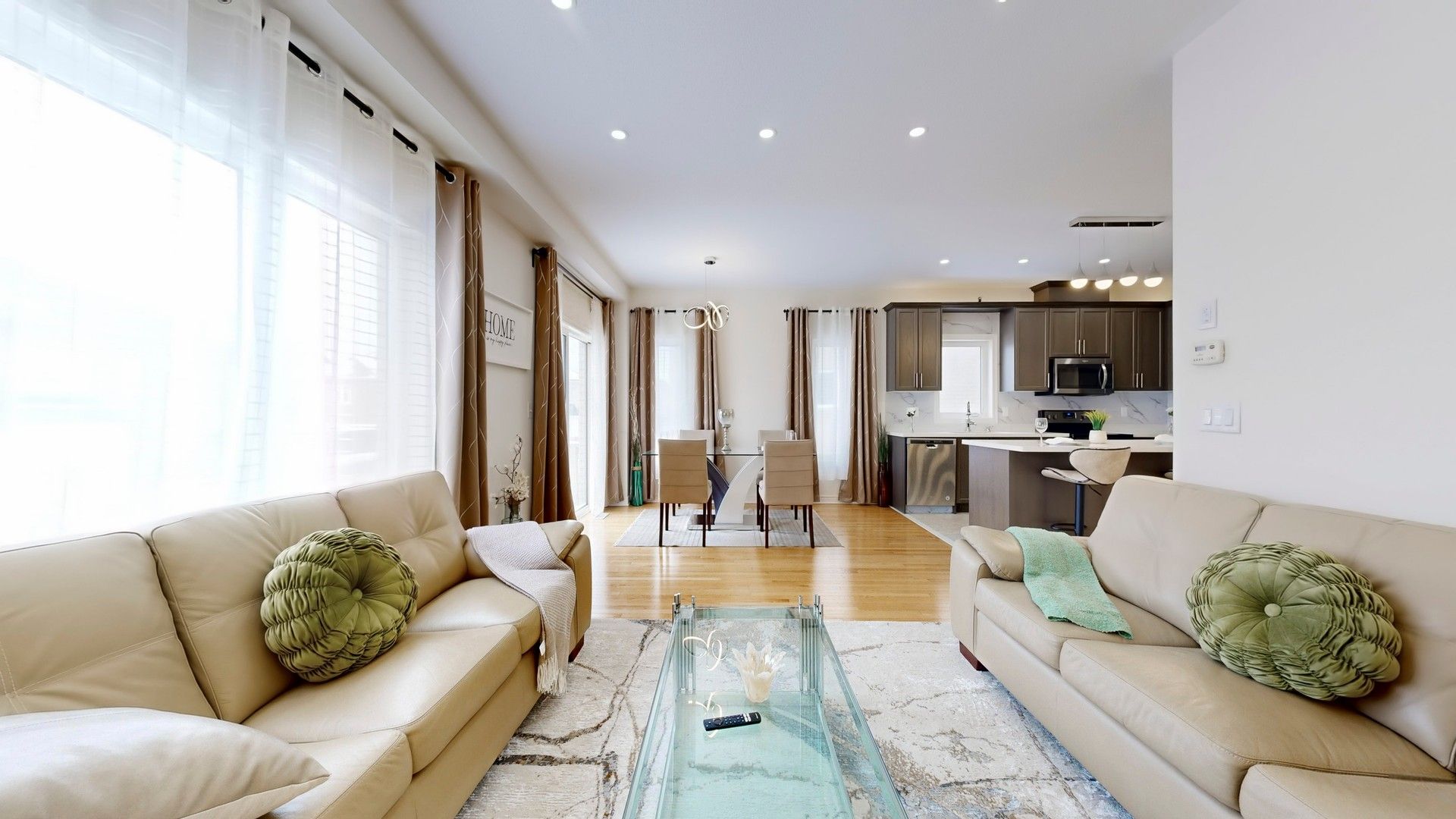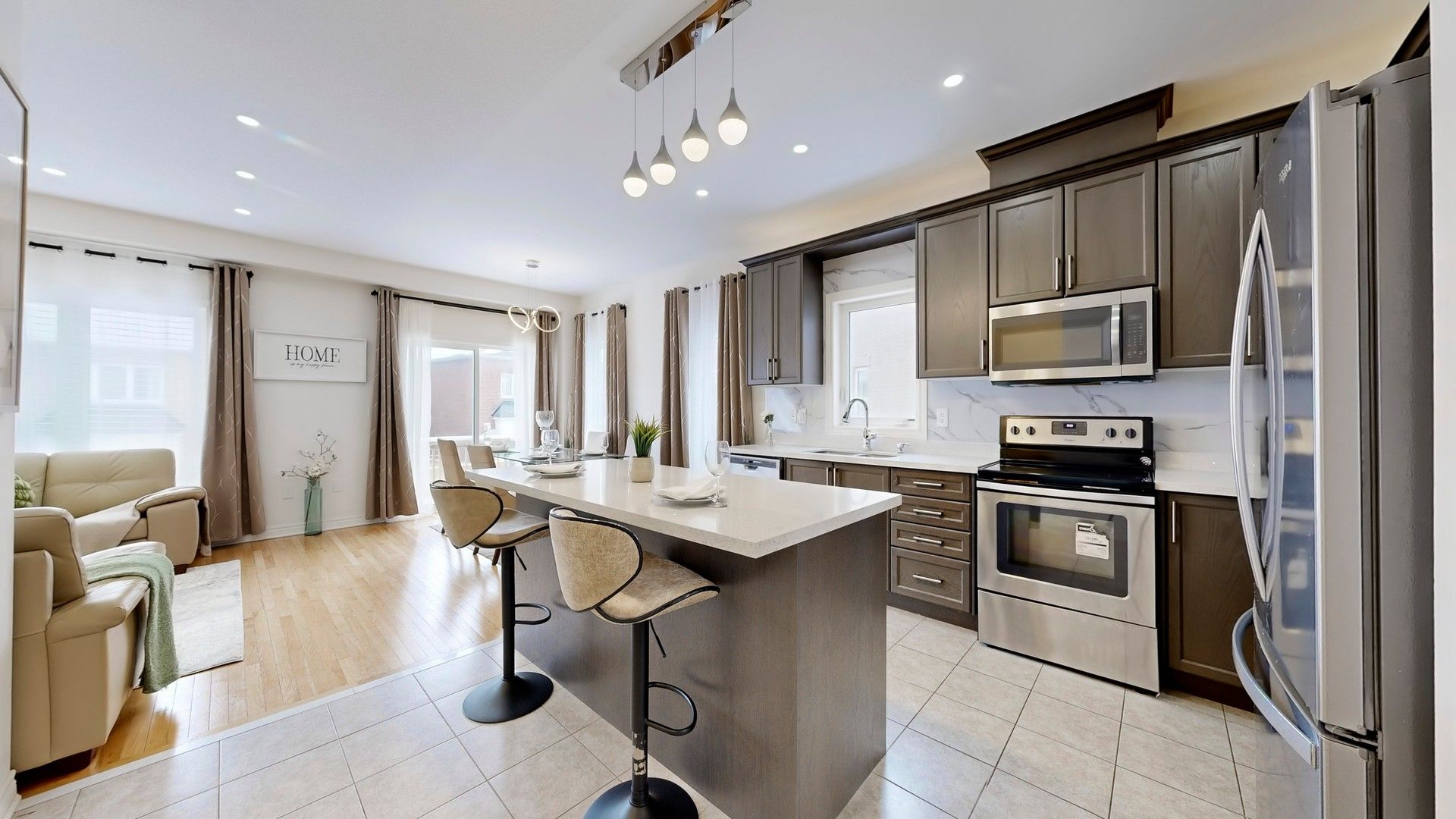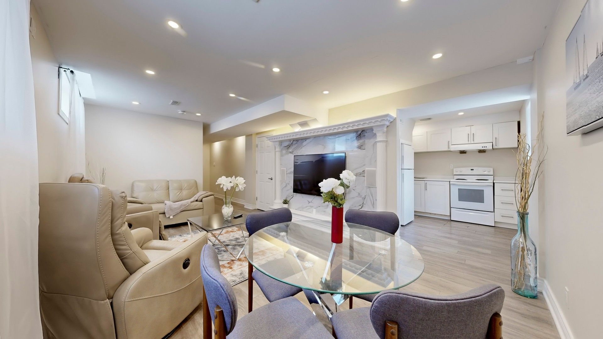 ***newly renovated***situated on a premium pie-shaped lot, this stunning home offers nearly 3,000 sq. Ft. Of elegant living space. The sophisticated main floor features 9-ft ceilings, a bright open-concept layout, and a designer eat-in kitchen with quartz countertops, backsplash, a large center island, breakfast bar, and stylish lighting. The dining area walks out to a private deck and spacious backyard, perfect for entertaining, while the family room showcases a cozy gas fireplace surrounded by a state-of-the-art tv wall . Upstairs offers four generously sized bedrooms and convenient second-floor laundry. The custom-designed lookout basement with a separate entrance includes a full kitchen, fifth bedroom, 4-piece bath, second laundry, and a built-in sound system-ideal for extended family or income potential. Close to top-rated public and catholic schools, parks, and everyday amenities.