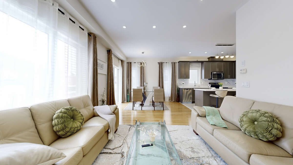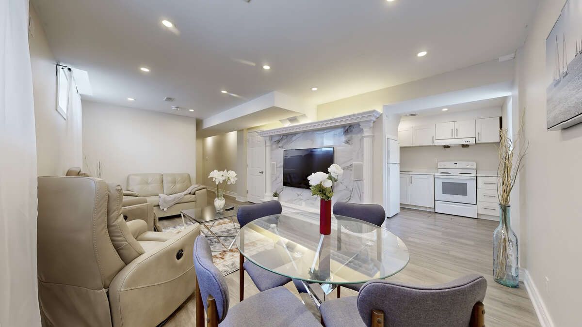 *** visit the realtor website for further information about this listing *** ***newly renovated*** situated on a premium pie-shaped lot, this stunning home offers nearly 3,000 sq. Ft. Of elegant living space. The sophisticated main floor features 9-ft ceilings, a bright open-concept layout, and a designer eat-in kitchen with quartz countertops, backsplash, a large center island, breakfast bar, and stylish lighting. The dining area walks out to a private deck and spacious backyard, perfect for entertaining, while the family room showcases a cozy gas fireplace surrounded by a state-of-the-art tv wall . Upstairs offers four generously sized bedrooms and a convenient second-floor laundry. The custom-designed lookout basement with a separate entrance includes a full kitchen, fifth bedroom, 4-piece bath, second laundry, and a built-in sound system-ideal for extended family or income potential. Close to top-rated public and catholic schools, parks, and everyday amenities.