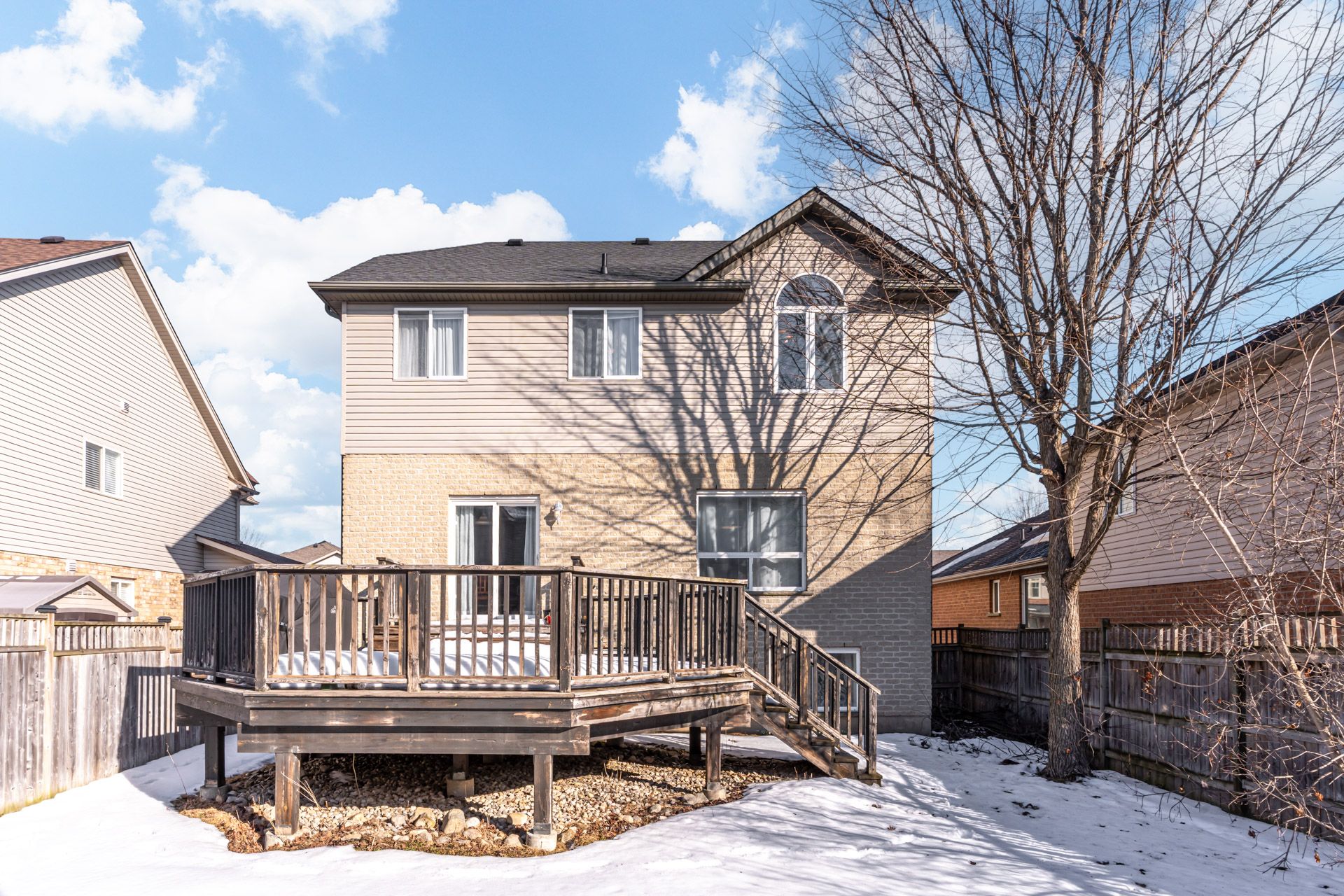 Welcome to this spacious and beautifully maintained 2-storey brick family home. Step inside to find engineered hardwood flooring throughout, setting a warm and cohesive tone across every room. The large living room flows seamlessly into the dining area, making it ideal for entertaining or relaxed family gatherings. The upgraded kitchen is both stylish and functional, featuring quartz countertops, a glass tile backsplash, and an updated fridge, stove, and dishwasher (all replaced in 2019). Features a convenient walkout to the backyard and a large oversize deck. The primary bedroom is generously sized and offers wall-to-wall closets, while two additional bedrooms and two full bathrooms provide plenty of space for family or guests. The laundry room is conveniently located on the second floor, and both the washer & dryer were replaced in 2021. A standout feature is the large second-floor family room. Downstairs, the separate-entrance basement opens up exciting possibilities. It includes two bedrooms, a bathroom, and a spacious living room, making it ideal for extended family and guests, or a nanny suite. Basement windows are above grade the water softener was replaced in 2023, adding peace of mind for years to come. This is a home that truly grows with you-offering space, upgrades, and versatility in a fantastic guelph location. See it for yourself and imagine the possibilities! Furnace replaced nov 2019, wrought iron railings, the roof was replaced.