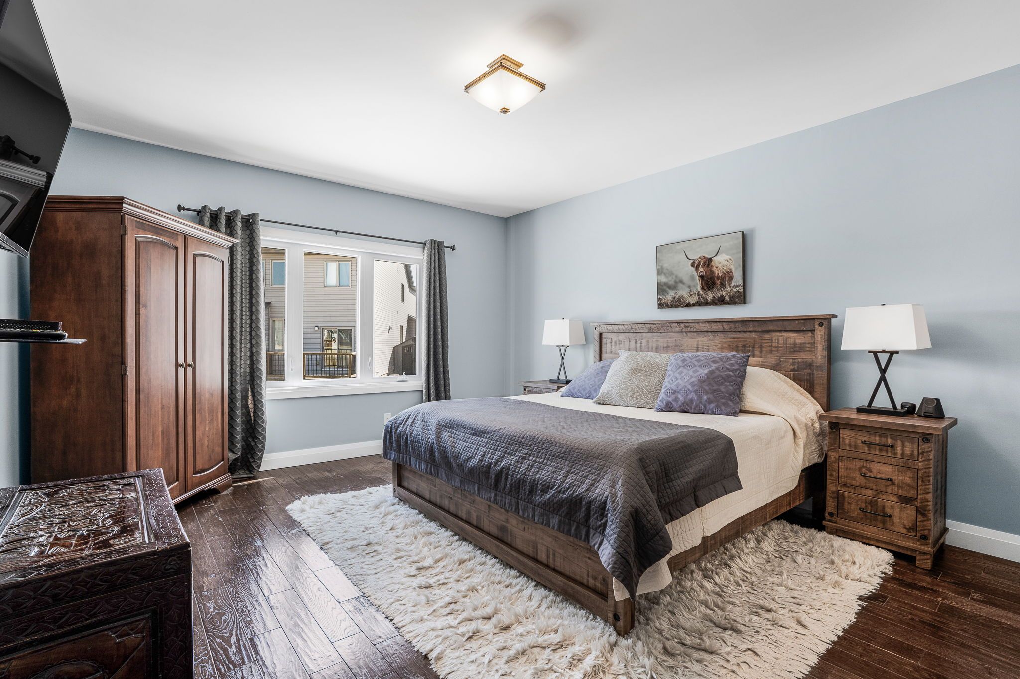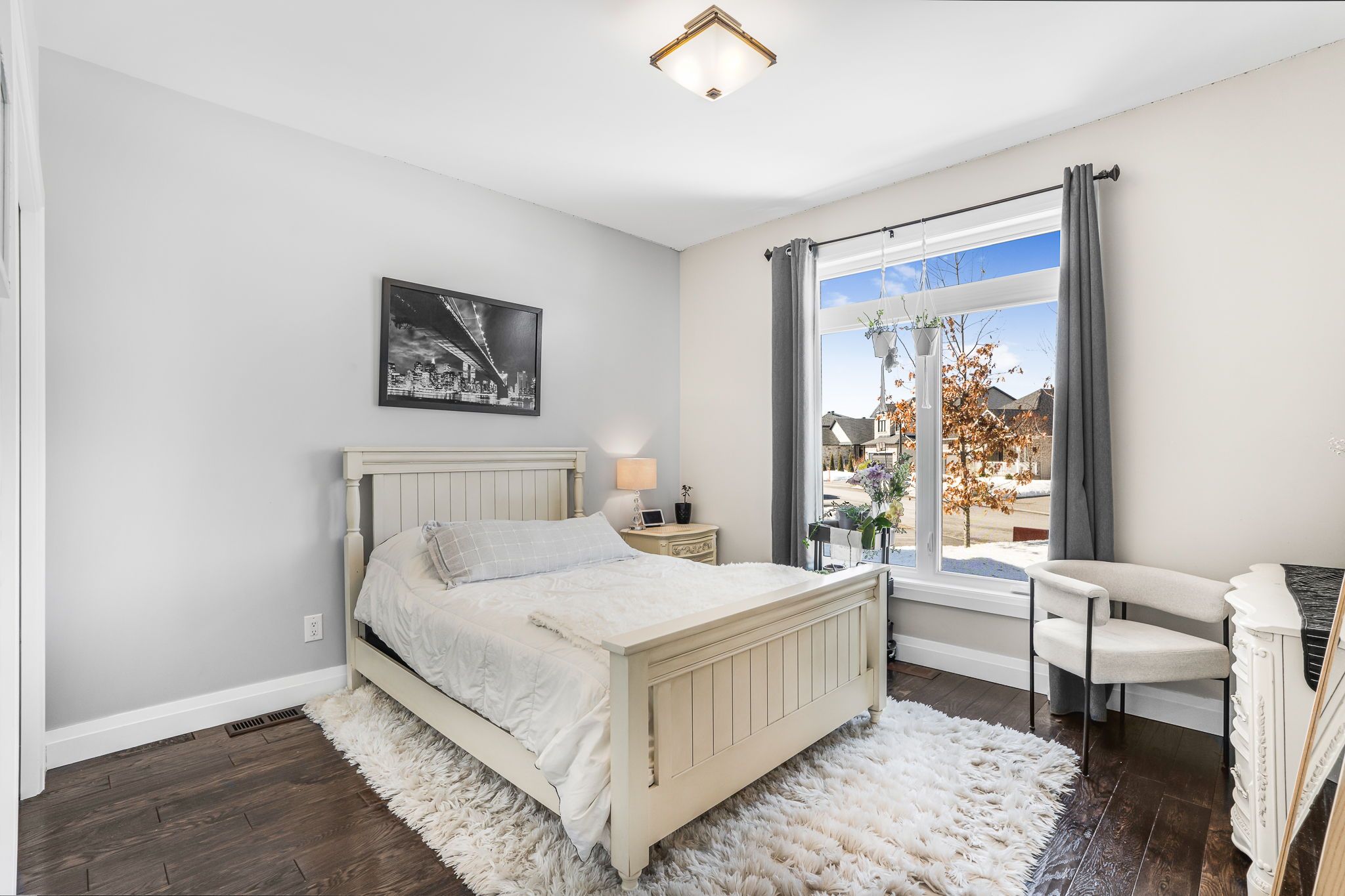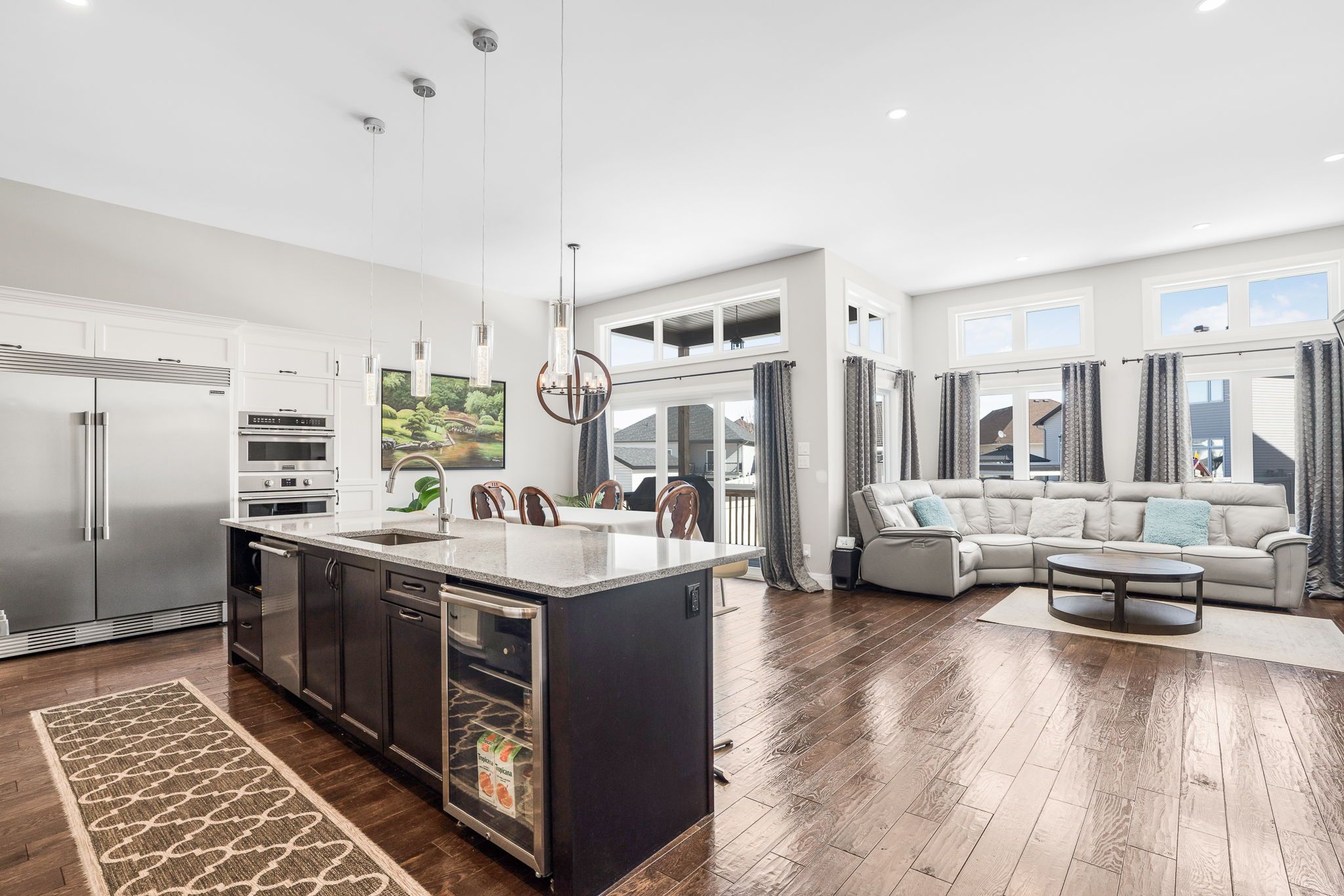 Welcome to this immaculate and luxurious 4-bedroom bungalow, perfectly situated on an oversized, fully fenced lot in the heart of morris village. From the moment you step inside, you'll be captivated by the rich dark hardwood floors and the abundance of natural light streaming through the large windows and patio door in front of you. The heart of the home is the stunning chef's kitchen, featuring an oversized refrigerator, gas stove with pot filler, wall-mounted ovens, and an oversized quartz island - perfect for cooking and entertaining. The dining room comfortably accommodates a table for eight, while the spacious living room offers a cozy yet elegant space to relax and unwind. The primary bedroom is a true retreat, complete with hardwood floors, a luxurious ensuite bathroom, and a generous walk-in closet. Two additional main floor bedrooms, both with large closets, share a second full bathroom, making this home ideal for families or guests. Downstairs, the beautifully finished basement is designed for entertaining and relaxation. Enjoy the sleek wet bar with live edge countertop and with a second dishwasher and wine refrigerator, unwind by the gas fireplace in the living area, or host guests in the fourth large bedroom and third full bathroom. There is also plenty of storage space to keep everything organized. Outside, the backyard is fully fenced with built-in irrigation system, providing both privacy, comfort and convenience. Taxes are 2024 as client does not have 2025 figures.