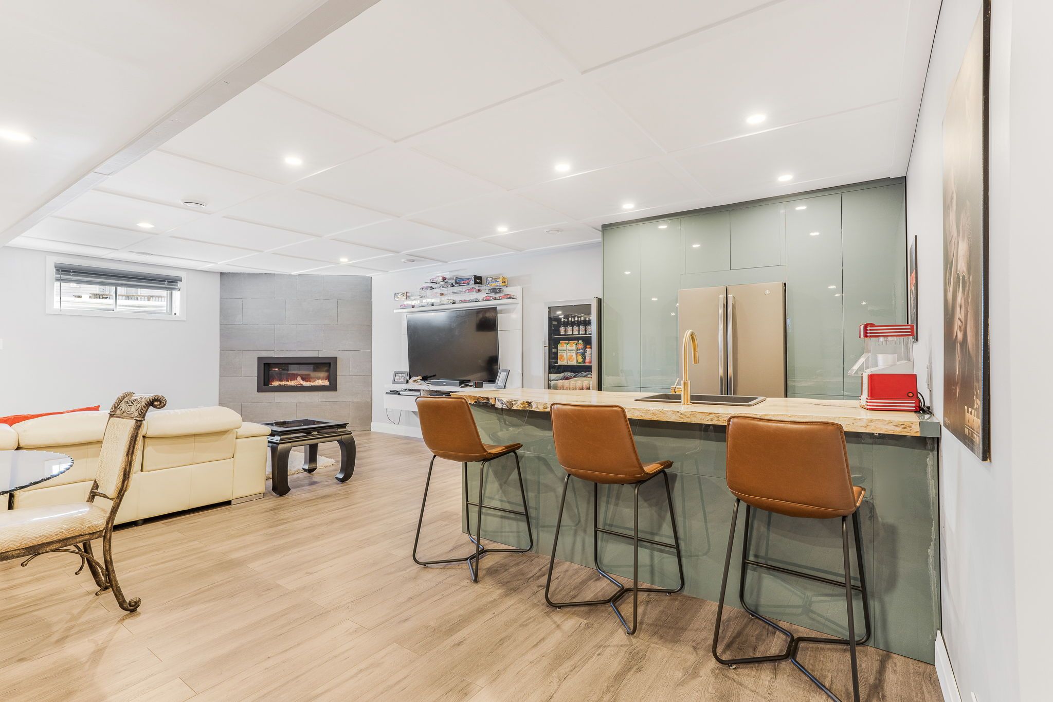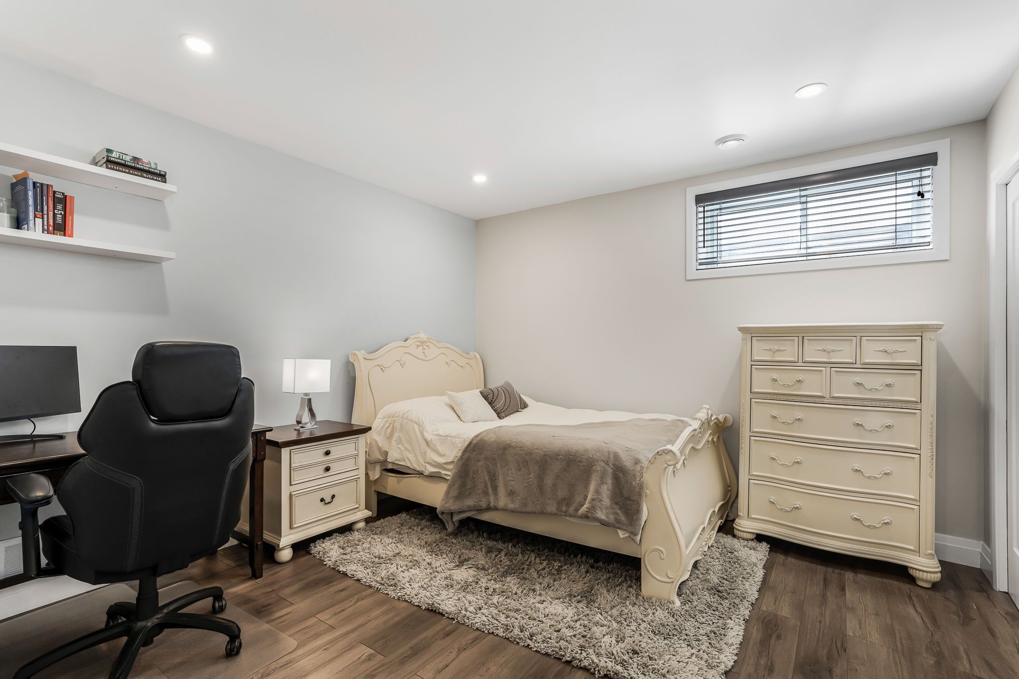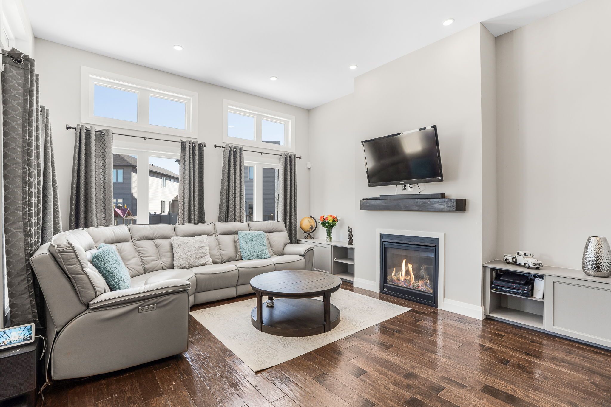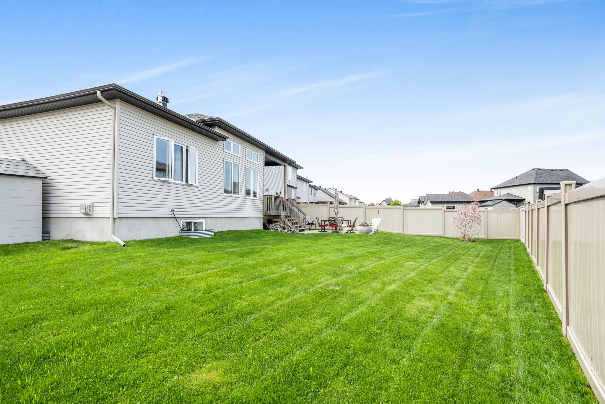 Welcome to this immaculate and luxurious 4-bedroom bungalow, perfectly situated on an oversized, fully fenced lot in the heart of morris village. From the moment you step inside, you'll be captivated by the rich dark hardwood floors and the abundance of natural light streaming through the large windows and patio door in front of you. The heart of the home is the stunning chef's kitchen, featuring an oversized refrigerator, gas stove with pot filler, wall-mounted ovens, and an oversized quartz island - perfect for cooking and entertaining. The dining room comfortably accommodates a table for eight, while the spacious living room offers a cozy yet elegant space to relax and unwind. The primary bedroom is a true retreat, complete with hardwood floors, a luxurious ensuite bathroom, and a generous walk-in closet. Two additional main floor bedrooms, both with large closets, share a second full bathroom, making this home ideal for families or guests. Downstairs, the beautifully finished basement is designed for entertaining and relaxation. Enjoy the sleek wet bar with live edge countertop and with a second dishwasher and wine refrigerator, unwind by the gas fireplace in the living area, or host guests in the fourth large bedroom and third full bathroom. There is also plenty of storage space to keep everything organized. Outside, the backyard is fully fenced with built-in irrigation system, providing both privacy, comfort and convenience. Taxes are 2024 as client does not have 2025 figures.