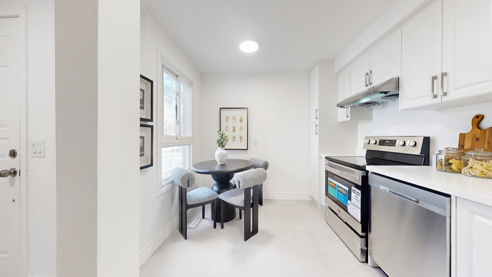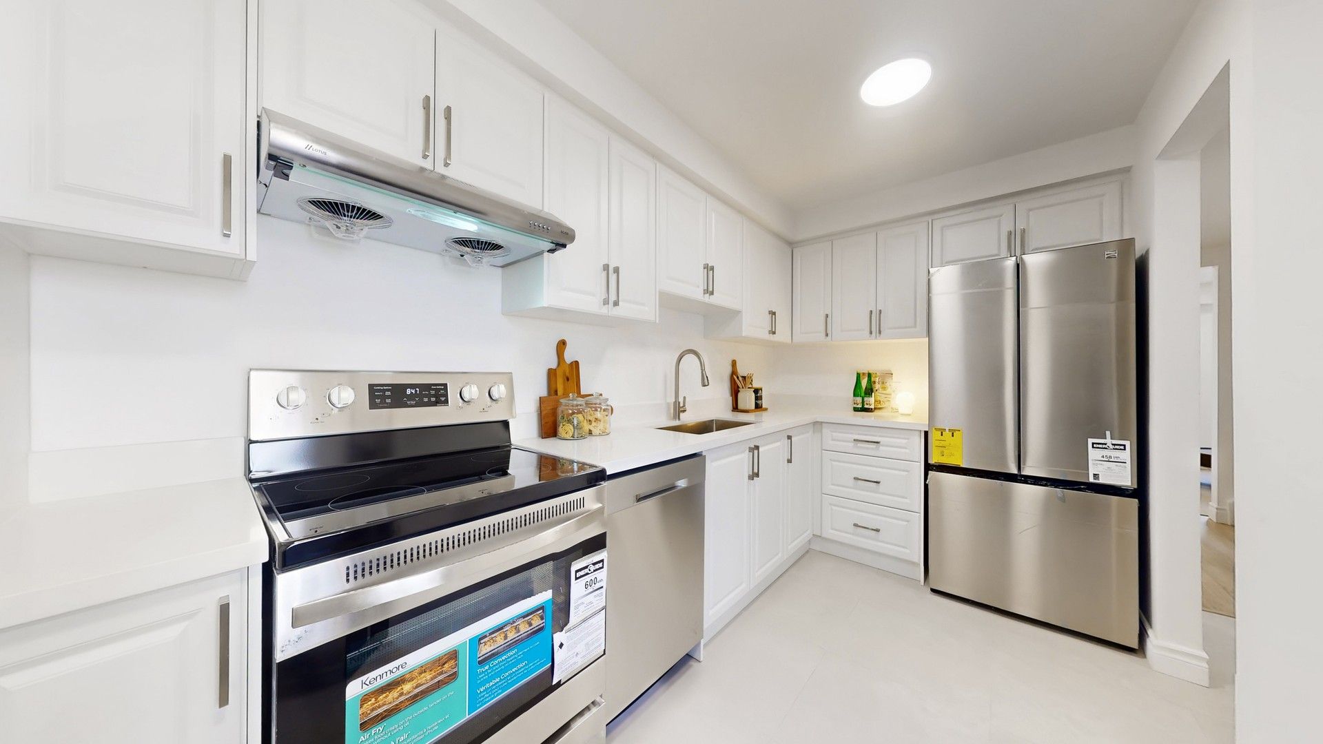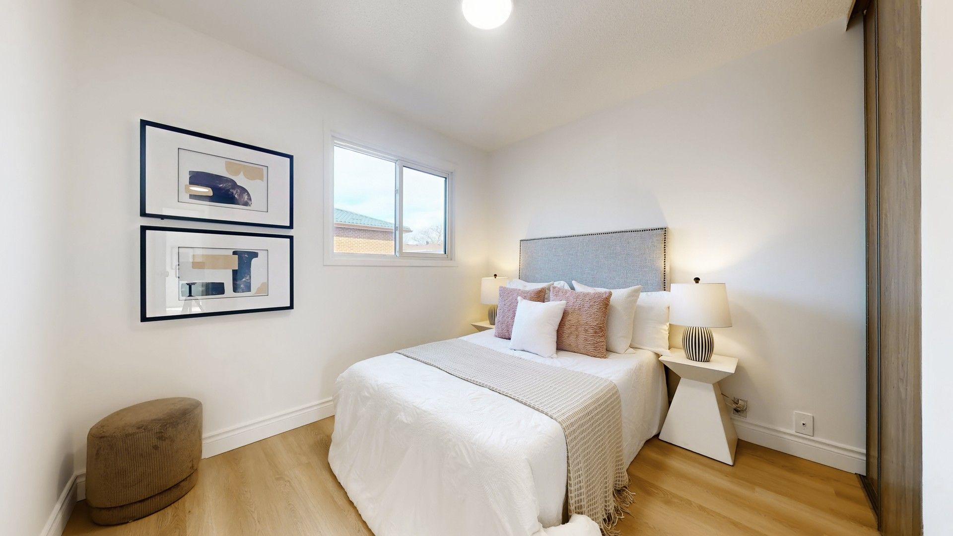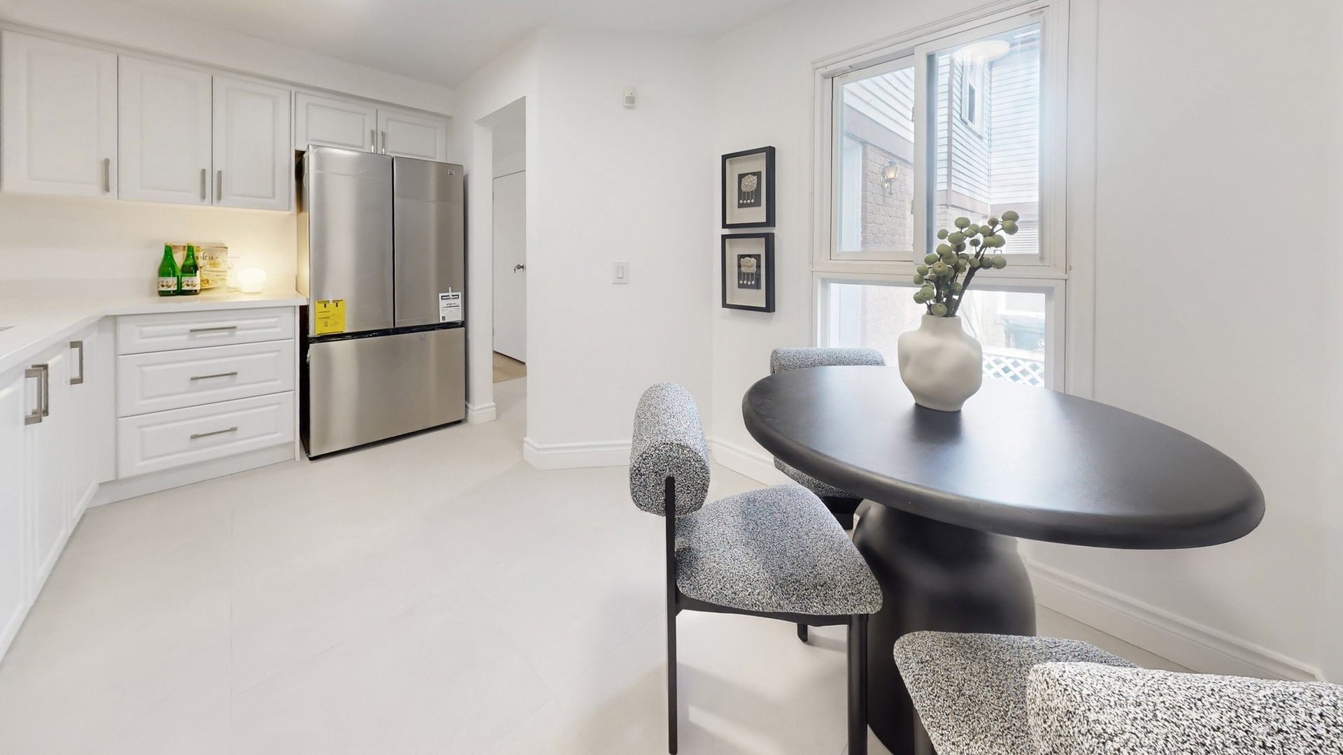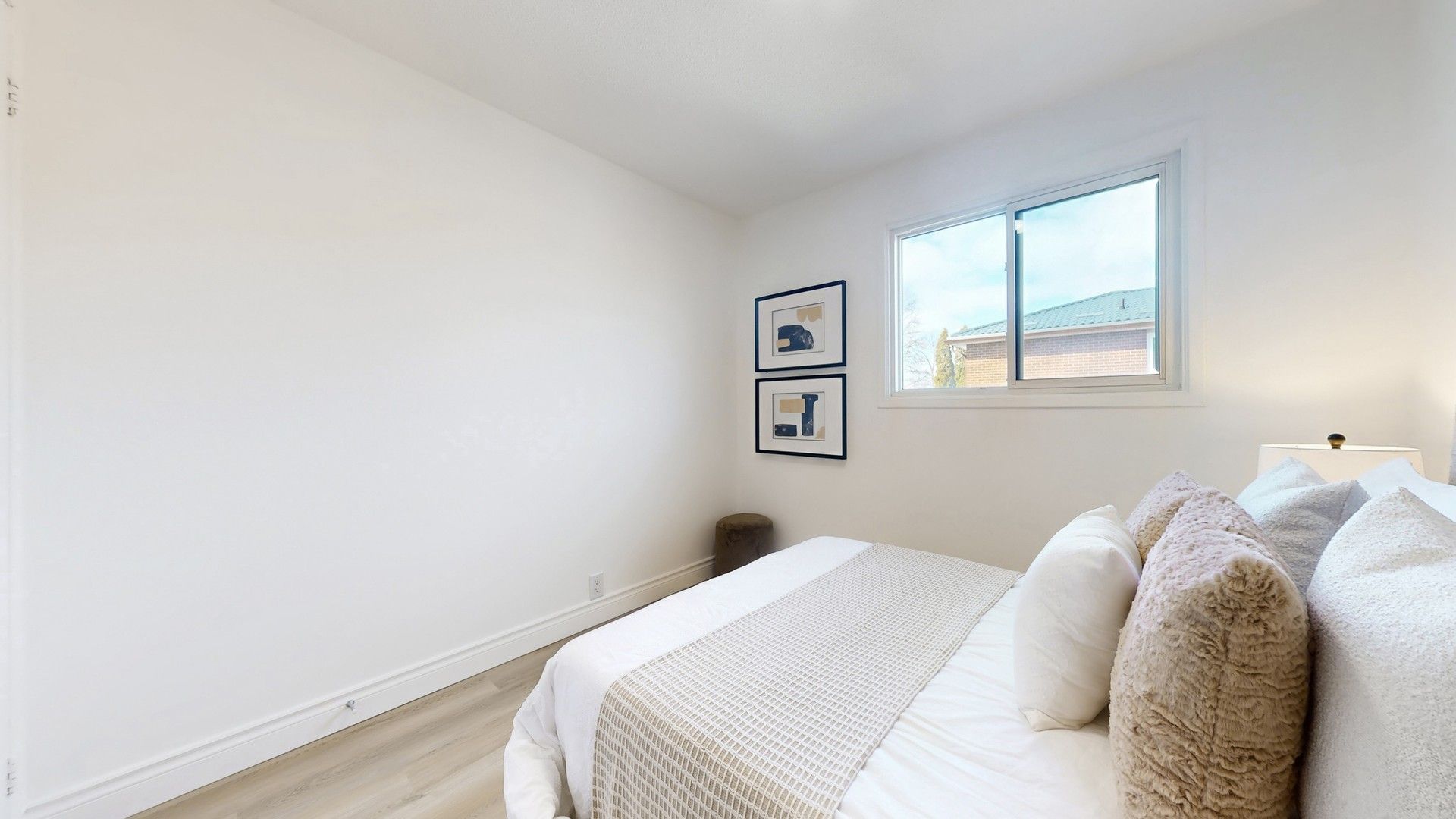 This bright and airy home features new vinyl flooring on all 3 levels, smooth ceiling on ground floor and in basement, new pot lights. Its open concept living and dining rooms are prefect for family gatherings and entertaining, the new custom kitchen is adorned with sleek quartz countertop, soft closing cabinet doors and brand new stainless steel appliances, and a good-sized eat-in area with window. The finished basement features an open concept recreation room, a 4-piece bathroom and a versatile room that can be used as an office, den or occasional guest bedroom. The location offers convenience of daily living - minutes away from supermarkets, parks, shopping, community centre, library, banks, school.