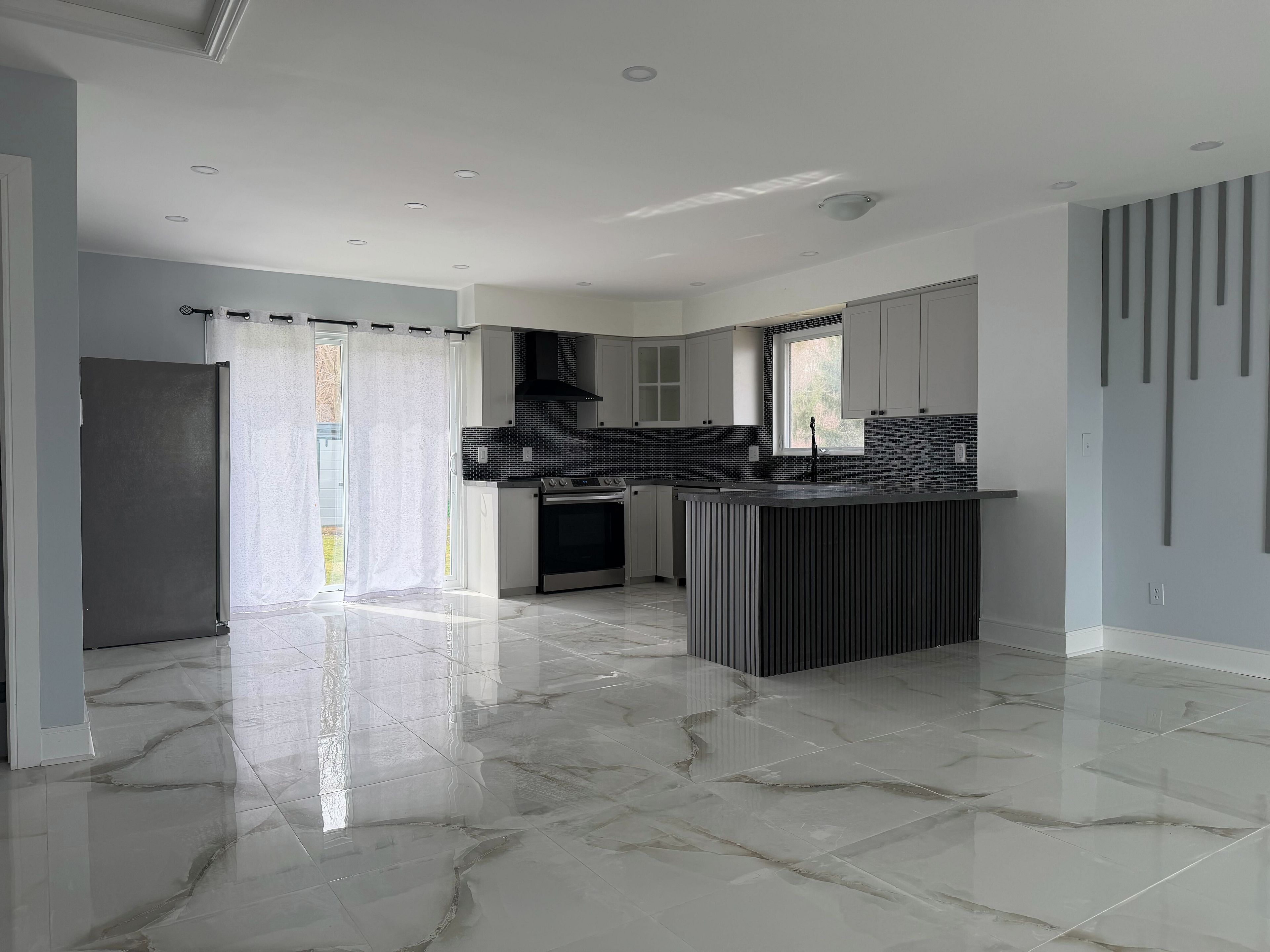 Welcome to this beautifully renovated main floor two-bedroom home located in a fantastic family-friendly neighbourhood in st. Catharines, close to parks, shopping, schools, transit, and all everyday amenities. This bright and inviting home has been fully renovated from top to bottom, offering modern finishes and comfortable living throughout. The spacious open concept main living area features gorgeous tile flooring, pot lights, and a stylish electric fireplace, creating a warm and welcoming atmosphere. The stunning updated kitchen showcases stone countertops, stainless steel appliances, sleek cabinetry, and contemporary fixtures, providing both style and functionality for everyday living and entertaining. Both bedrooms are generously sized, and the home is complemented by a beautifully updated three-piece bathroom with high-end finishes. Fresh paint and thoughtful upgrades throughout give the space a clean, modern feel. Enjoy the added convenience of in-suite laundry and garage, plus driveway parking, as well as access to a large rear yard, perfect for relaxing or enjoying outdoor space. Available for immediate occupancy, this move-in ready home is ideal for professionals, couples, or small families looking for comfort, style, and convenience. Tenant responsible for 60% of utilities. Don't miss the opportunity to call this beautifully renovated home yours.