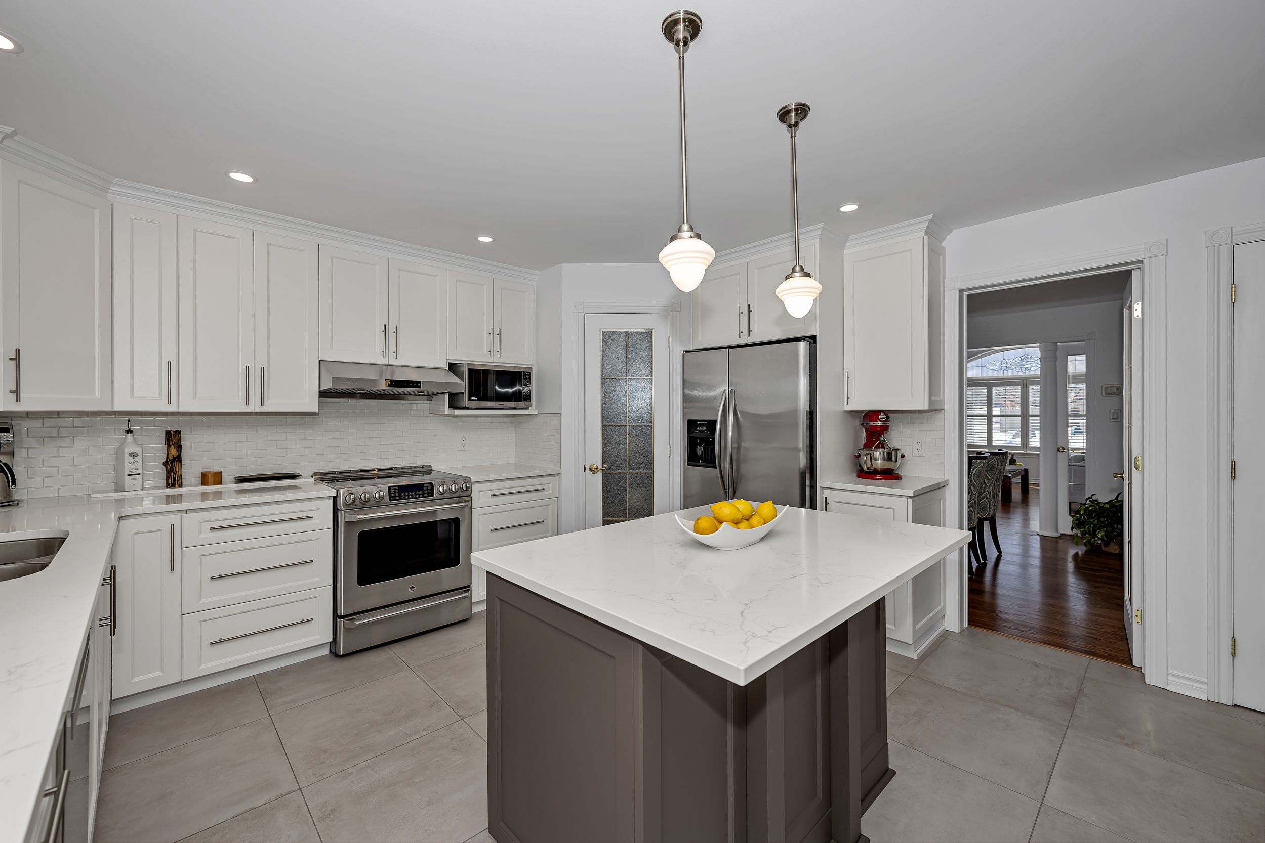• Upgraded porcelain tile foyer and warm hardwood flooring throughout.