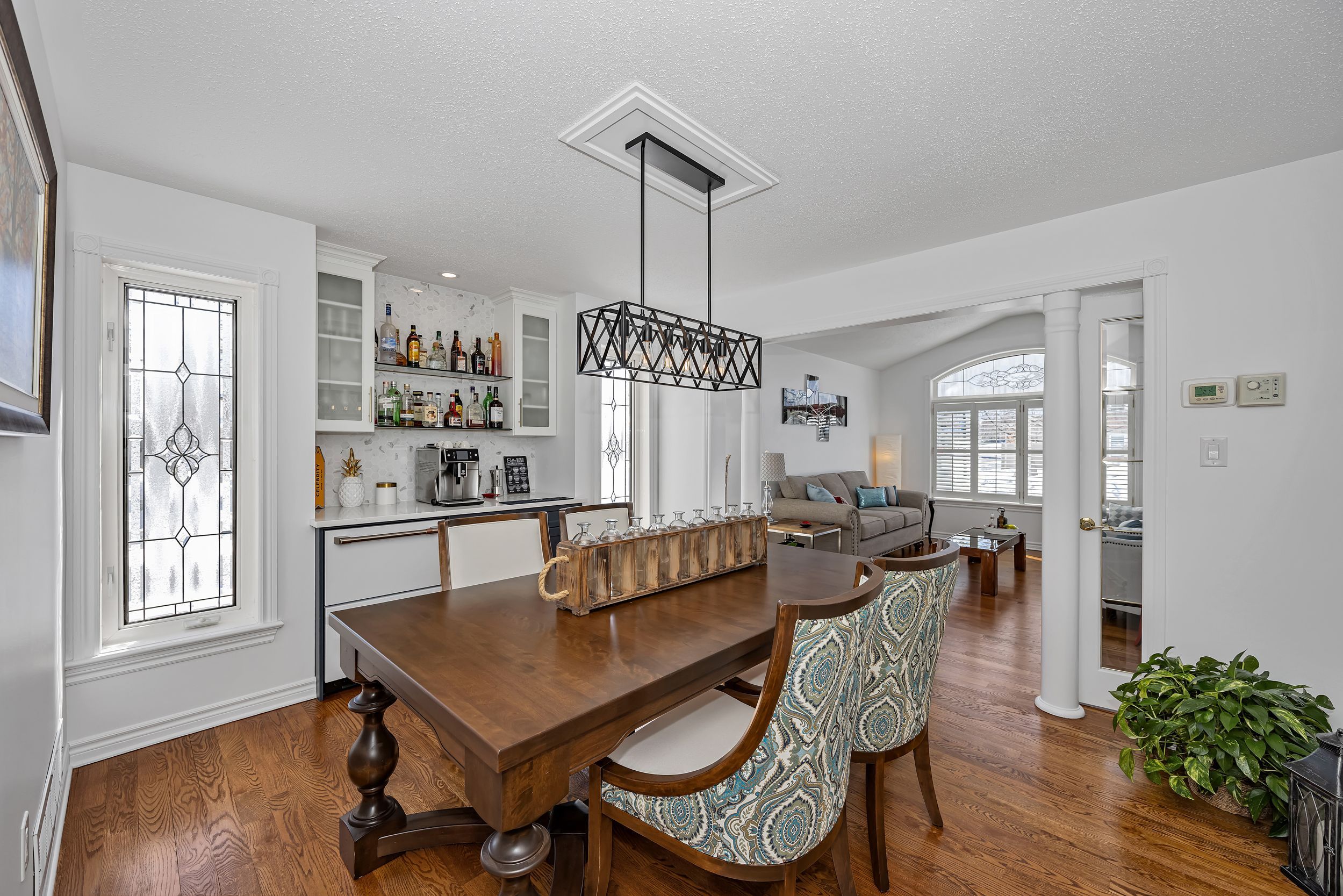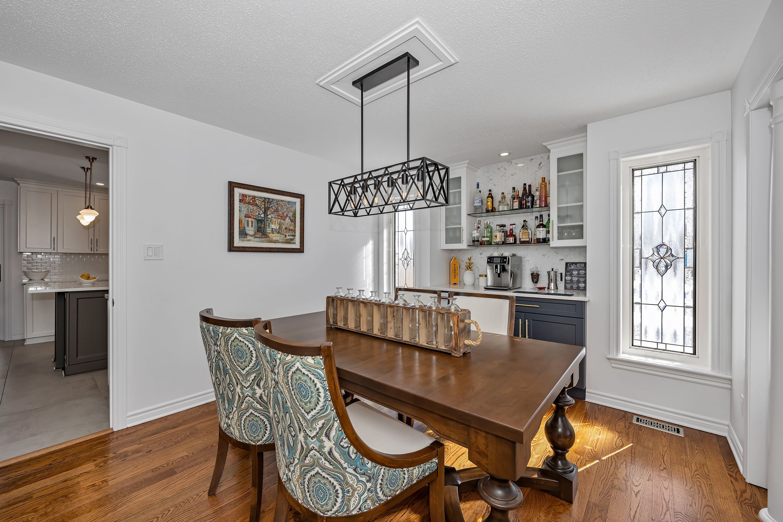 • Custom built-in bar and chef-inspired kitchen for entertaining.