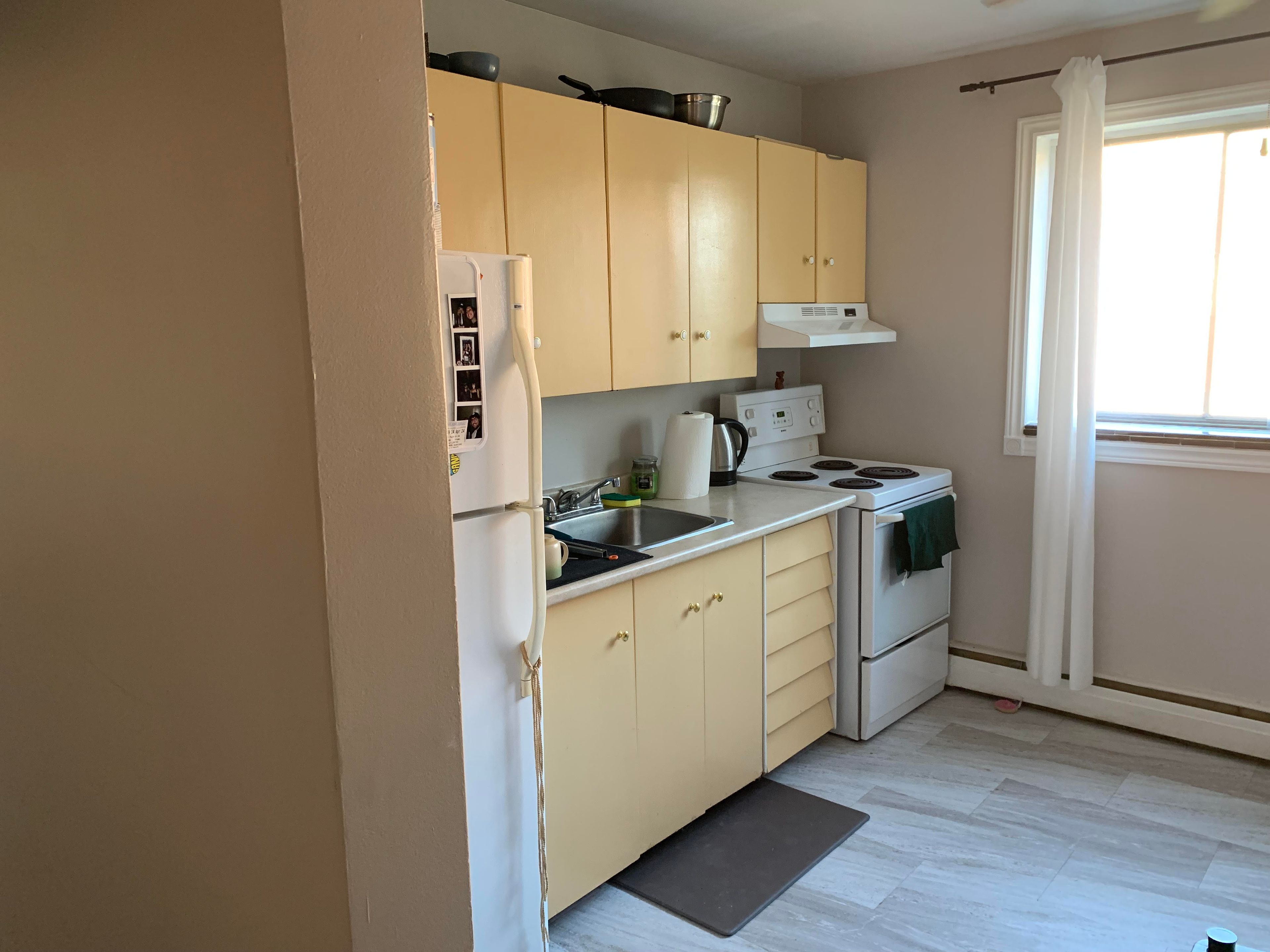 This bright, renovated 2-bedroom sits on the second floor of a quiet, well-kept nine-plex and is filled with natural light from large windows. Refinished hardwoods anchor a generous living/dining area, while the eat-in kitchen offers plenty of cabinet and prep space - fridge and stove included. The building features secure entry with intercom and camera coverage, on-site laundry, and one included parking space. Heat and water are covered. Transit is right outside, a mini-mart is a short walk away, and you're only minutes from downtown, groceries, parks, and conestoga college. Clean, comfortable, and move-in ready in a super-convenient location.
