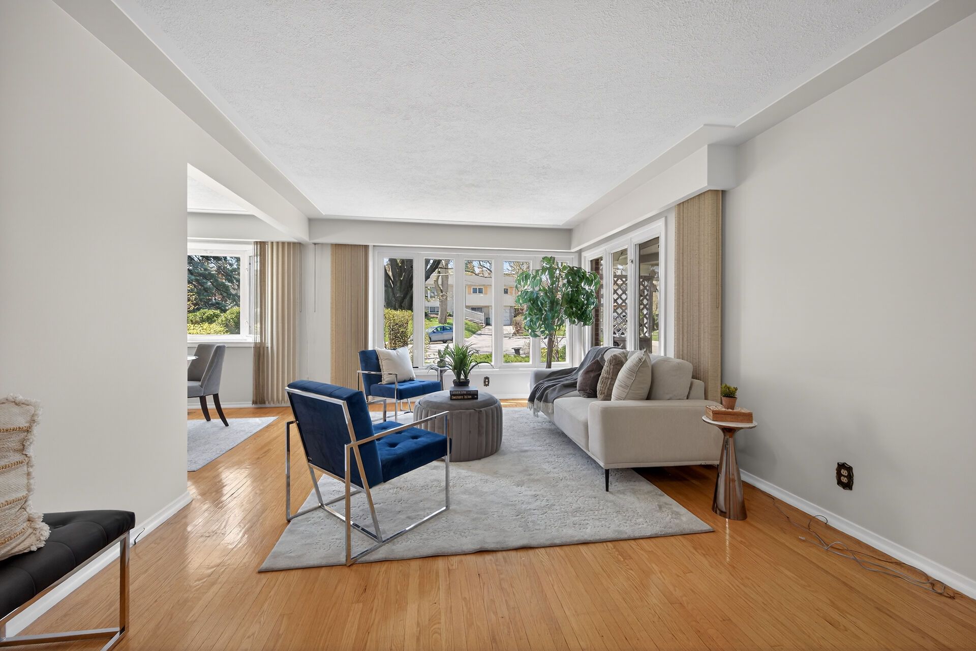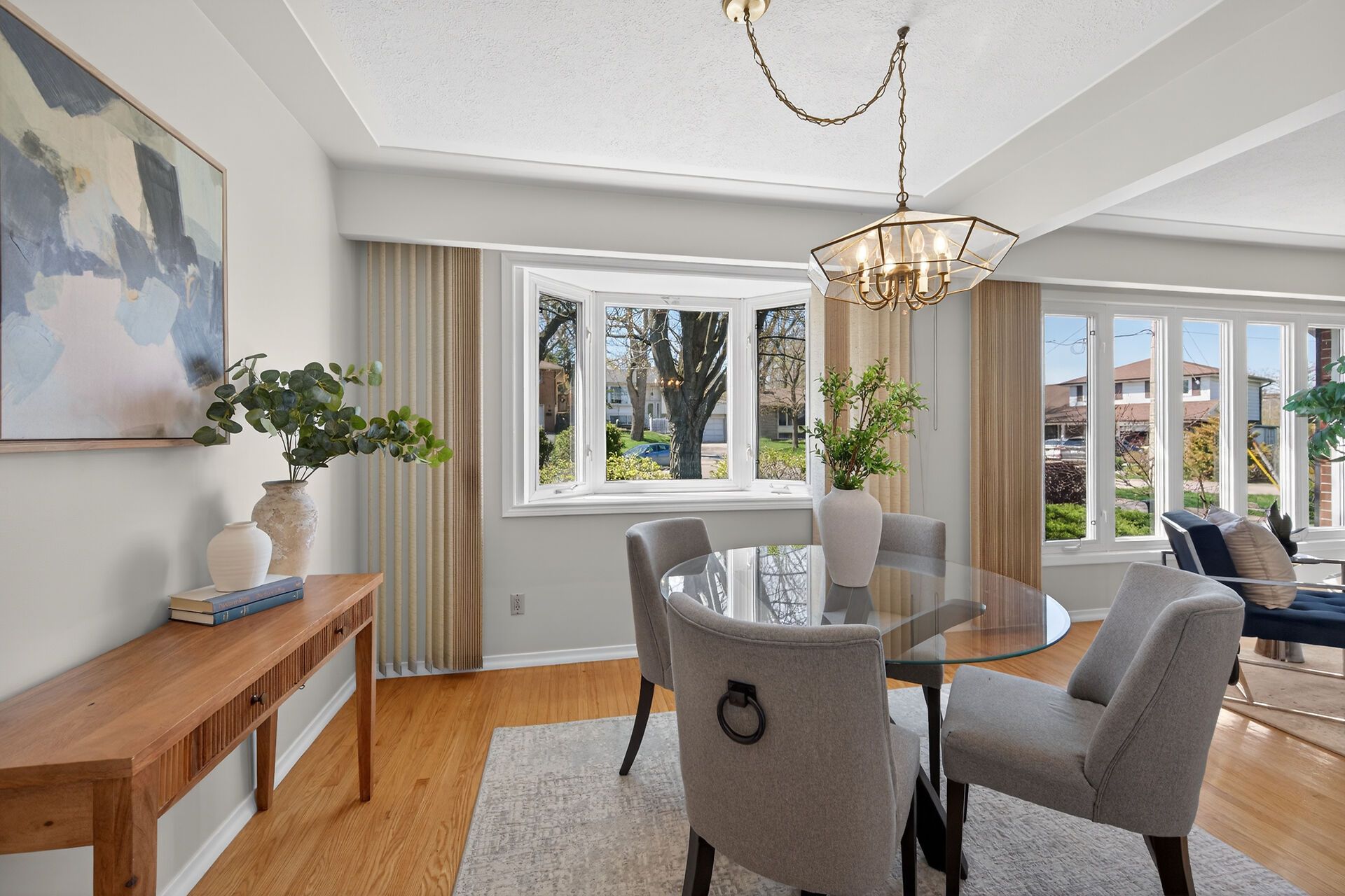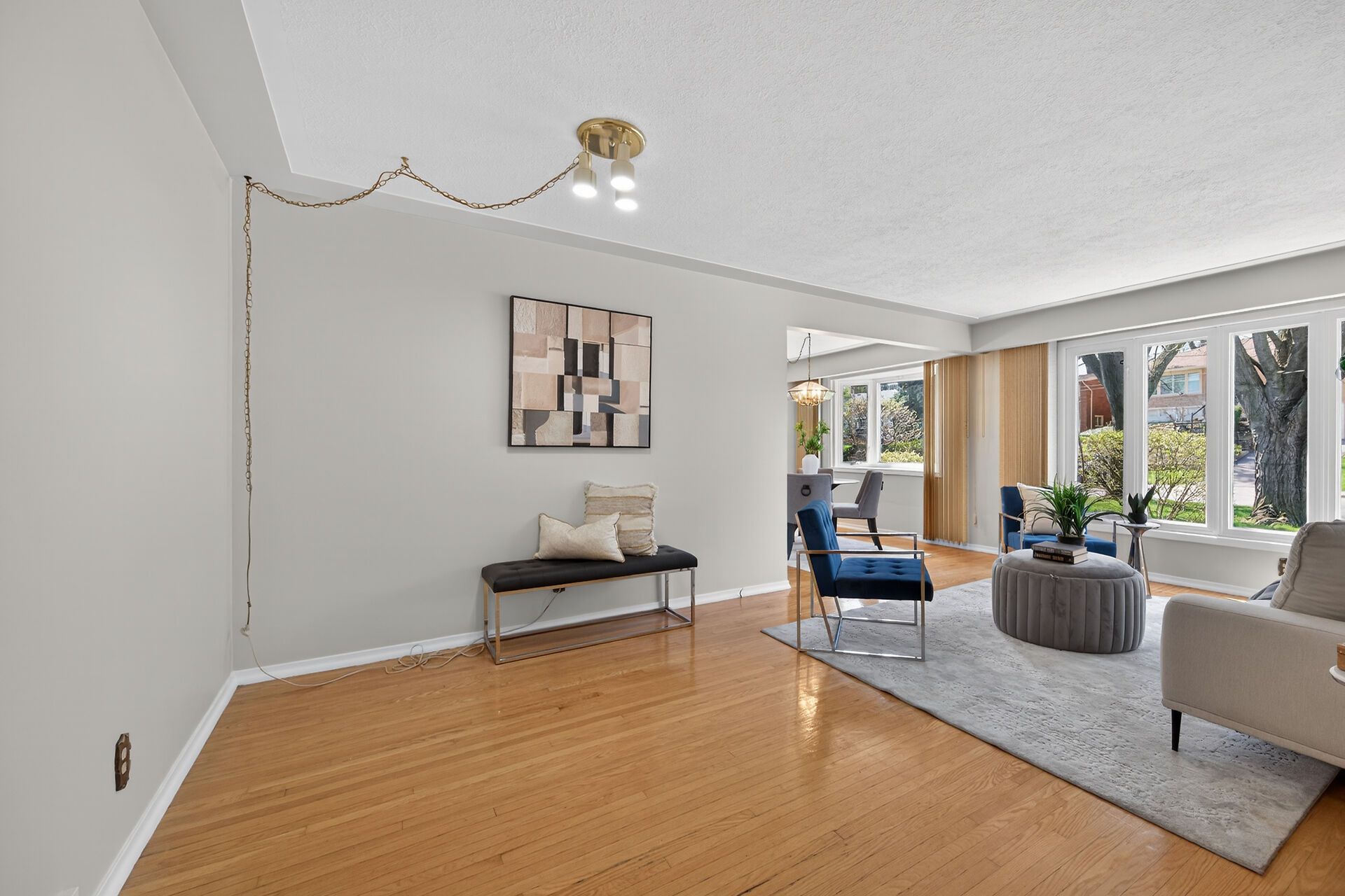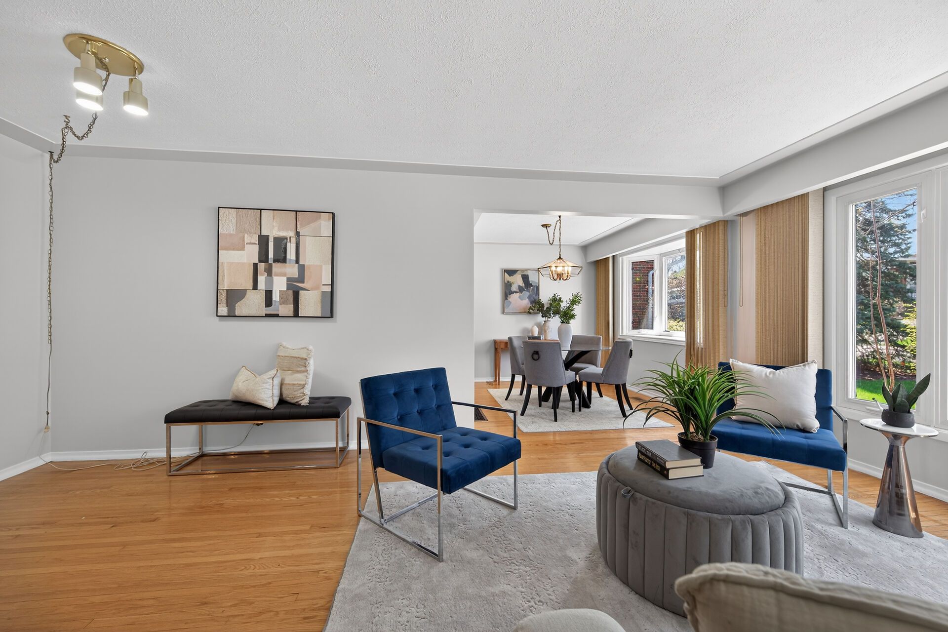 • Open concept living and dining area with hardwood flooring throughout.