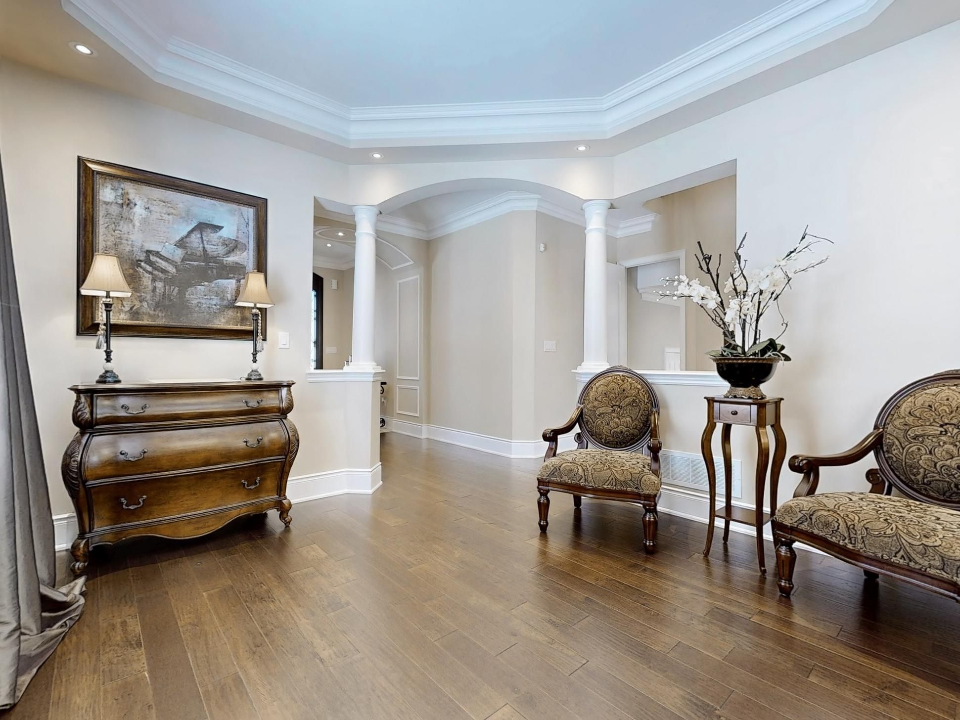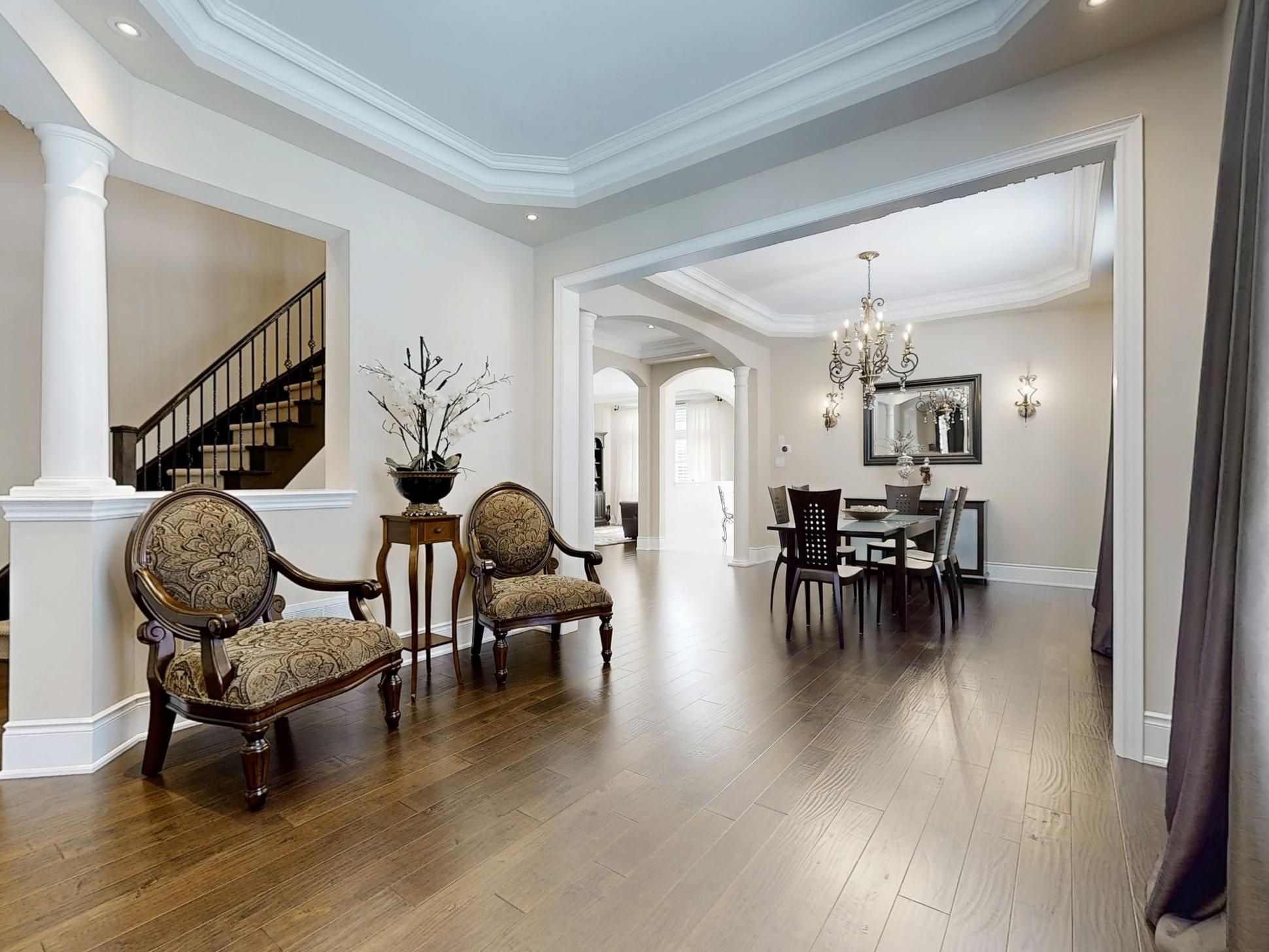 Welcome to this stunning luxury residence by fernbrook homes, beautifully nestled in the heart of the prestigious upper thornhill estate on a premium lot surrounded by scenic parks and nature trails. The west side of the home faces a tranquil park and ravine with no neighbouring properties, offering rare privacy and peaceful natural views. This magnificent 5-bedroom home offers an exceptional blend of elegance, comfort, and thoughtful design. From the moment you enter, the home impresses with its grand proportions and elevated finishes. Soaring ceiling heights enhance the sense of space throughout, with 10-foot ceilings on the main floor and 9-foot ceilings on both the second level and basement. Exquisitely upgraded, the home features a custom solid wood front door, elegant tile flooring, engineered hand-scraped hardwood floors, crown mouldings throughout, and extensive pot lighting that adds warmth and sophistication to every room. The gourmet custom kitchen is the heart of the home, showcasing granite countertops, a designer backsplash, a large centre island, and quality finishes ideal for both everyday living and entertaining. Overlooking the main living area, the space is anchored by a striking gas fireplace with an upgraded mantel, creating a welcoming and stylish focal point for gatherings. A private main floor office with classic french doors offers the perfect work-from-home setting, blending functionality with timeless design. Upstairs, the generously sized bedrooms provide comfort and privacy, while the luxurious bathrooms feature custom cabinetry with granite and quartz countertops, delivering a spa-inspired atmosphere. The lower level offers exceptional future potential with a separate entrance, ideal for extended family living or customization. Situated in a coveted estate community close to nature, parks, and everyday amenities, this remarkable home delivers sophistication, space, and versatility.