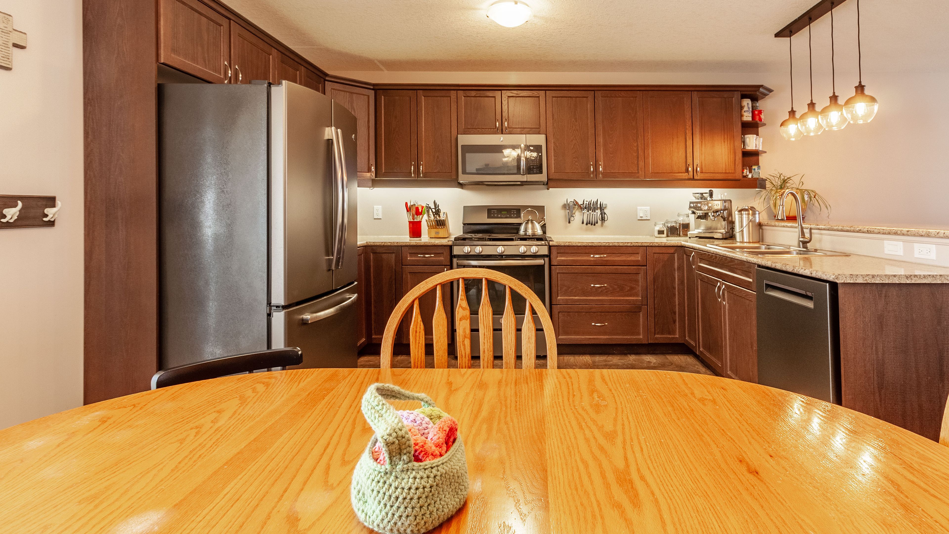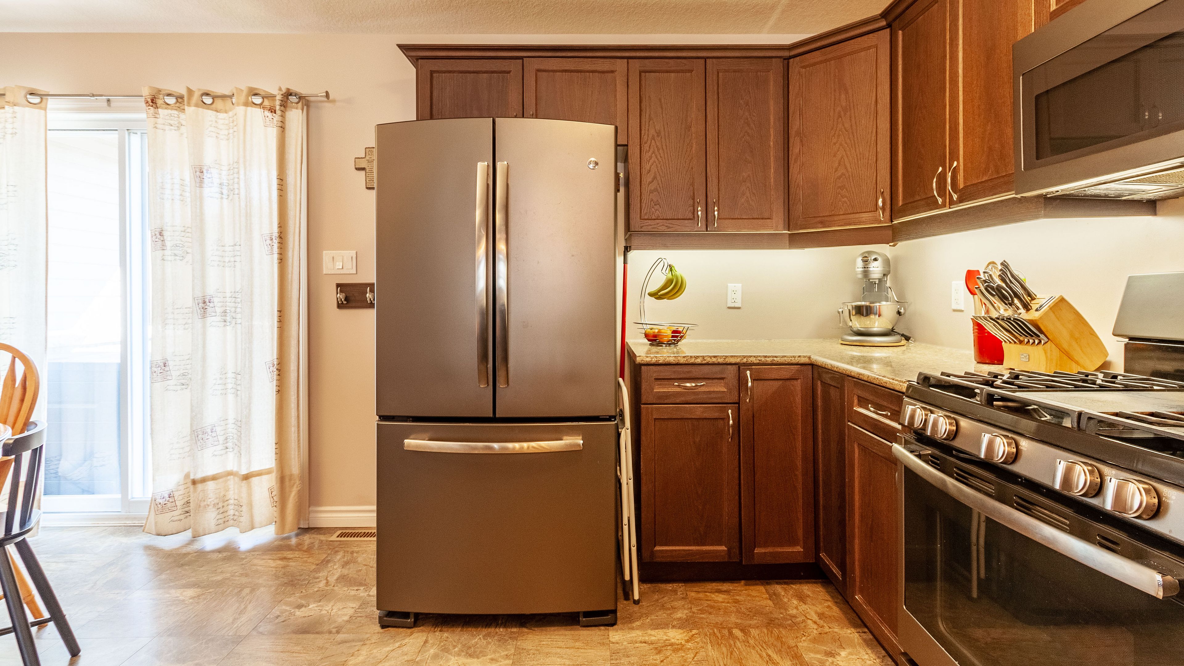 • Large eat-in kitchen with sliding door to a spacious fenced yard.