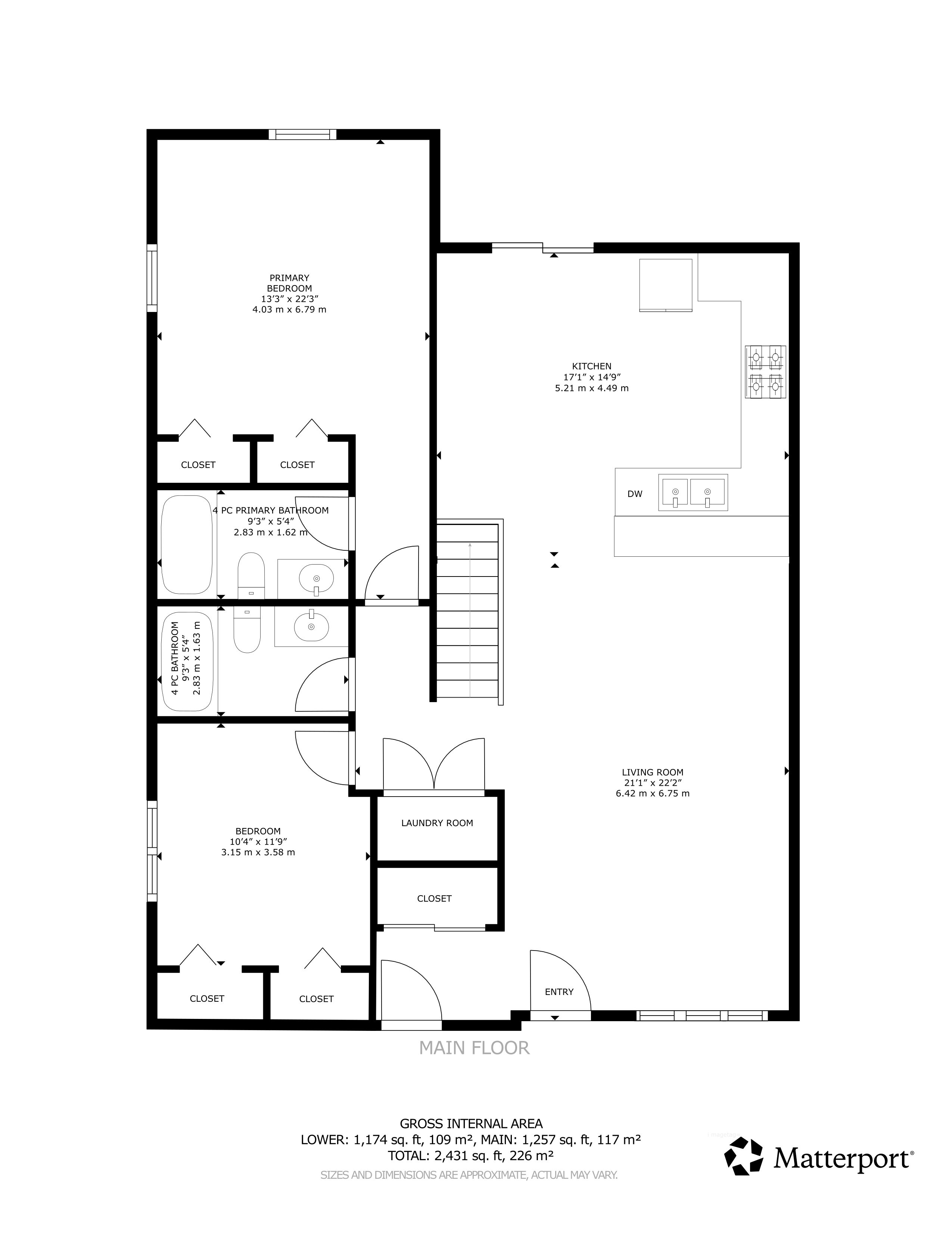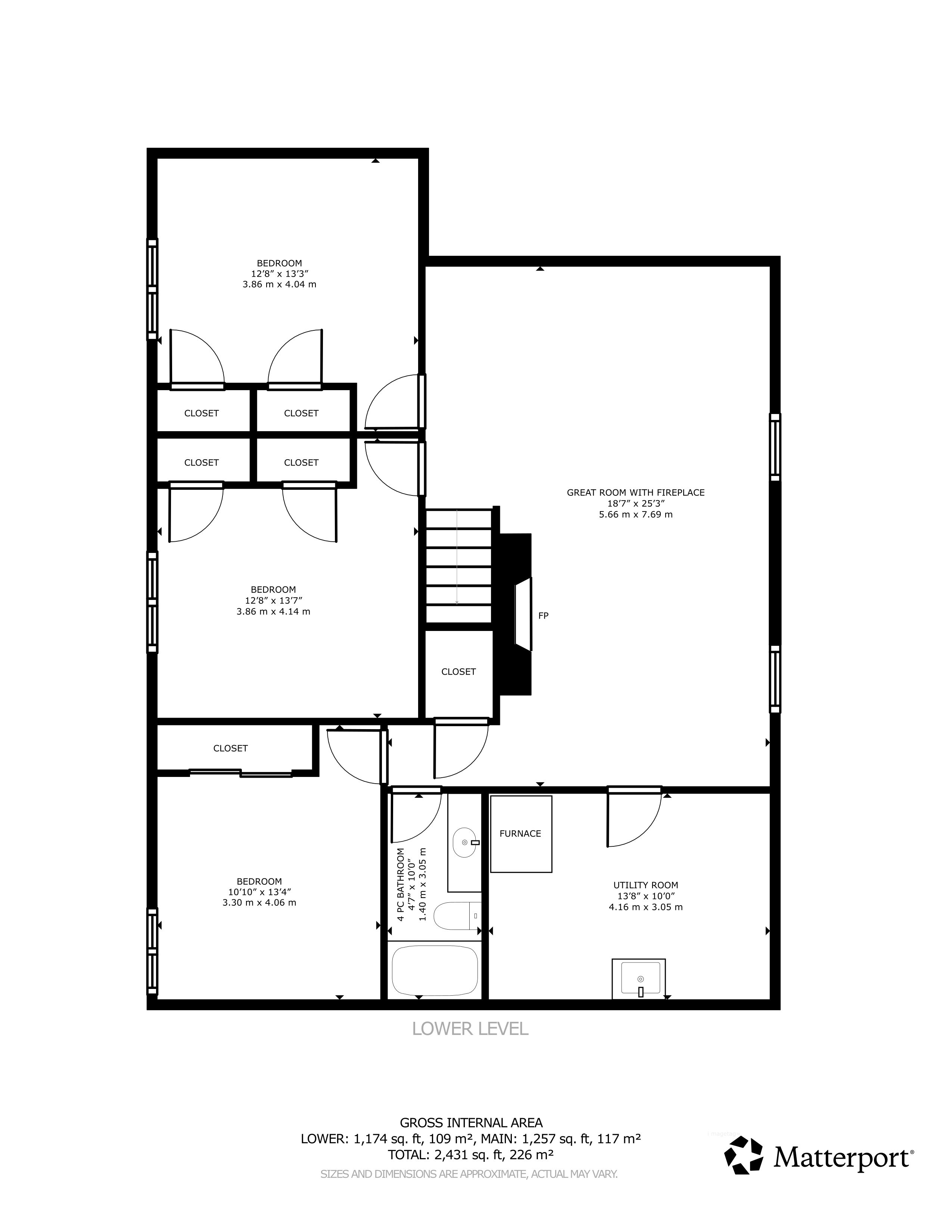 • Bright lower level with oversized windows and three large bedrooms.