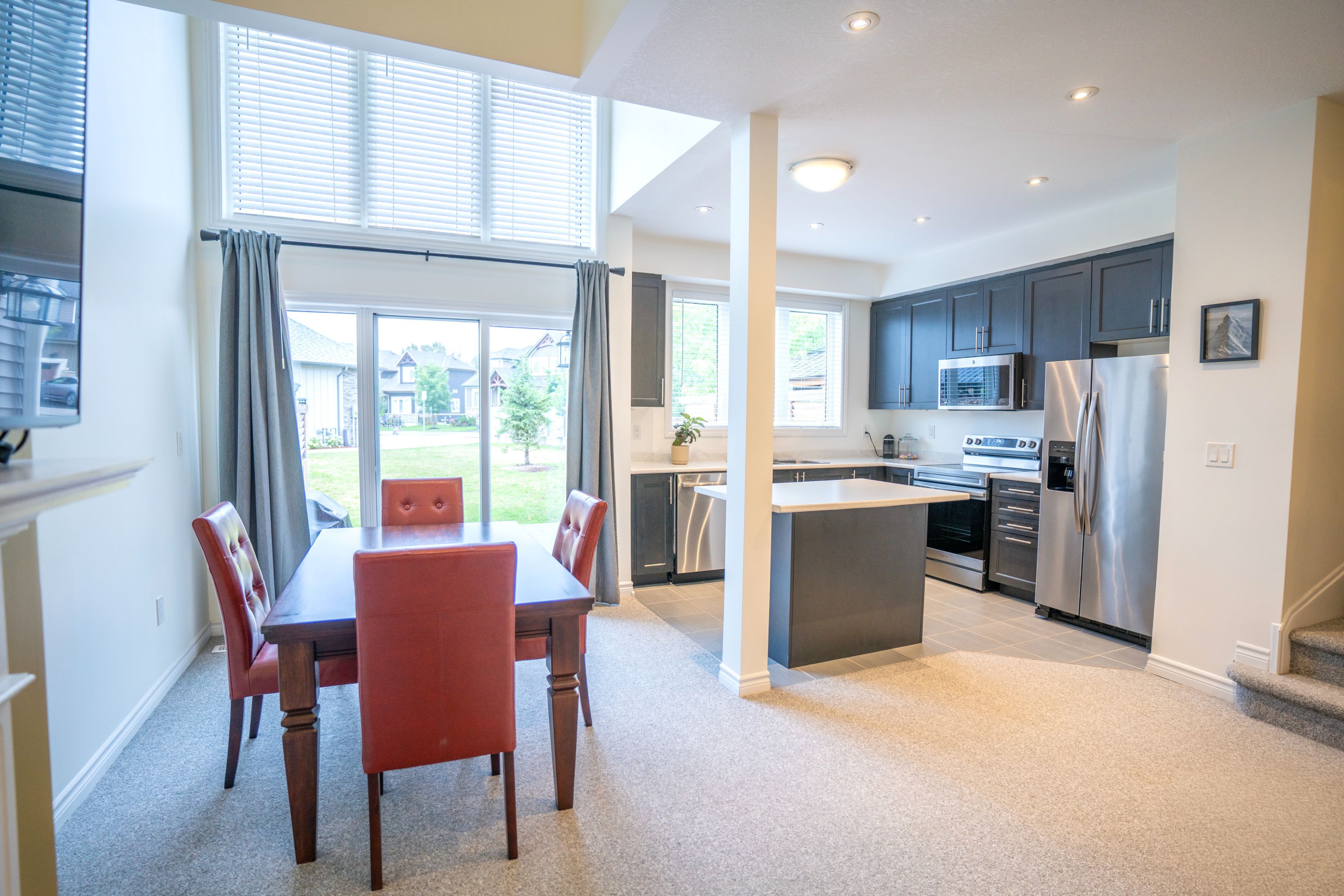 Price drop! A fantastic opportunity to own a freehold townhouse in the blue fairway community conveniently located minutes away from downtown collingwood and blue mountain. With 2 bedrooms and 2. 5 bathrooms, this modern two-storey townhouse is perfect for a weekend vacation property or an older couple looking for a quiet and safe neighbourhood. The main entrance welcomes you with a covered porch that leads into a spacious foyer with lots of closet space, access to the attached garage and a powder room. Continuing on is the open concept kitchen and bright living room with vaulted ceilings and sliding doors to the backyard space. On the second level you will find the sizeable primary bedroom with a walk-in closet and a 4-piece ensuite offering lots of natural light. The additional bedroom is great for guests or office space with the second 4-piece bathroom ideally located next to it. You will also find the stackable washer and dryer neatly tucked away in a closet on the landing. The full size, unfinished, new framed basement presents lots of opportunity for additional storage or future living space with roughed-in plumbing already in place. Enjoy worry-free living by reaping the benefits of a townhouse that is only 7 years old with high-efficiency natural gas forced air, central air and remaining transferable tarion warranty. This lot was originally sold as a premium lot due to its ideal location, situated just mere steps from the exclusive blue fairway gym, games room and the incredible heated outdoor pool. This prime location is also near the cranberry trail and boardwalk, cranberry golf course, white's bay and so much more. If you are looking to live in a community that offers a sense of peace and tranquility, then this is the home for you.