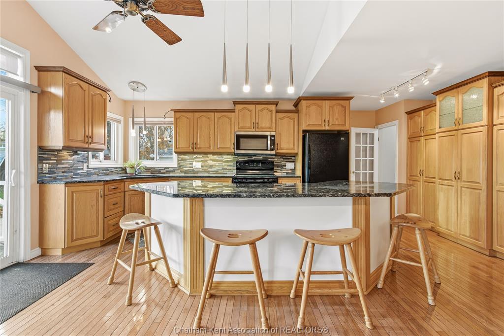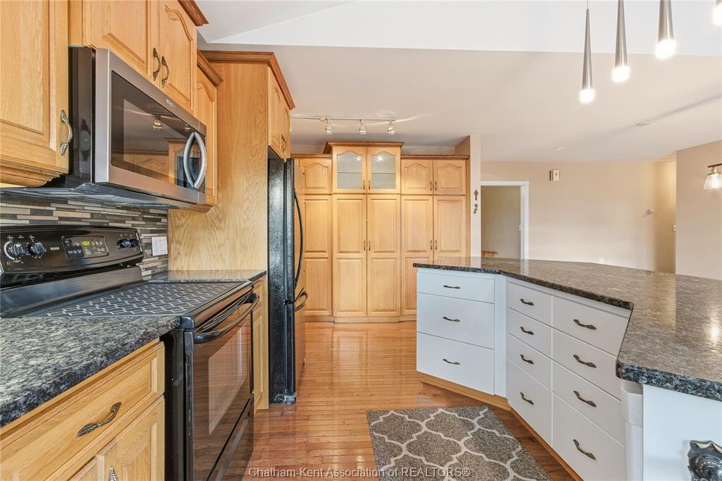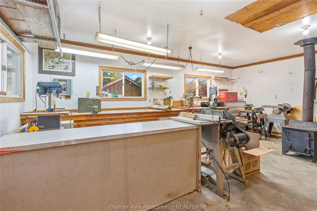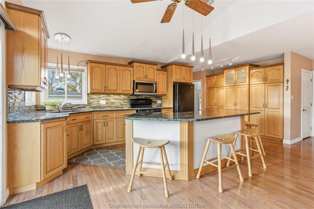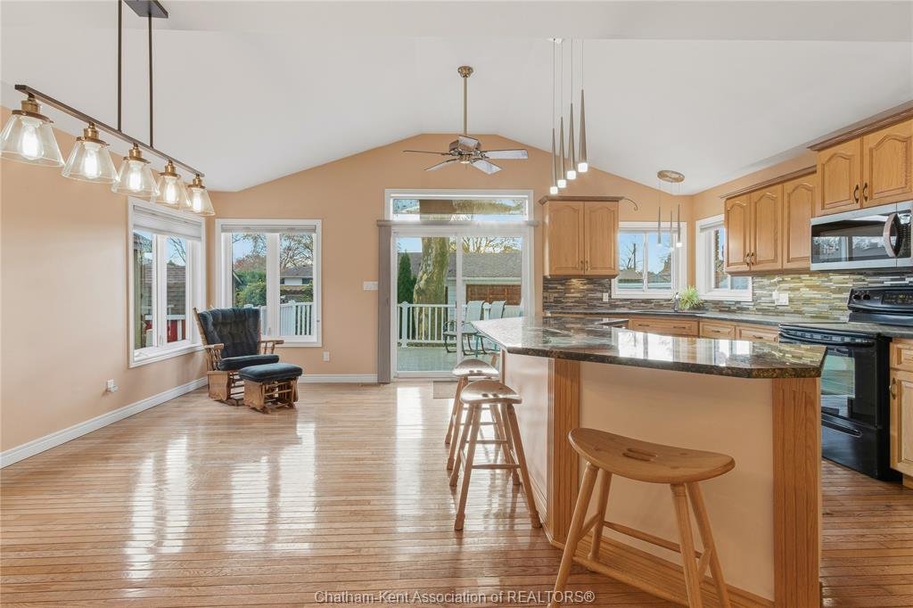 Welcome to this impressive and well maintained 3+1 bedroom, 2 full bath ranch-style home that is complete with a heated 32’ x 22’ shop located in a great neighbourhood on chatham ‘s south side. From the moment you arrive, the pride of ownership is undeniable. The beautiful curb appeal sets the tone, and as you step inside, you’re greeted by gleaming hardwood floors and warm, inviting spaces throughout. A substantial rear addition truly elevates this home, offering a spacious kitchen equipped with abundant cabinetry, a generous island, granite countertops, and a cathedral ceiling that adds both character and openness. Patio doors extend your entertaining space outdoors making it ideal for hosting family and friends on the large composite deck and backyard. The separate basement access is a fantastic bonus, leading you to a large rec room, 3pc bathroom, laundry room, bedroom and exceptional storage options. One of the main-floor bedrooms features another patio-door access to the private deck, the perfect spot to relax in the included hot tub. Step out into the private backyard retreat, where you’ll find a storage shed, impeccable landscaping, and the a rare heated 32’ x 22’ shop that is perfect for car enthusiasts, hobbyists, or anyone needing a versatile workspace. This property is truly one-of-a-kind, offering a rare combination of features, craftsmanship, and care that is hard to find. A tremendous opportunity for families, downsizers, or anyone seeking a move-in-ready home with extra perks. This property will be sold in as is condition as per request of the estate.